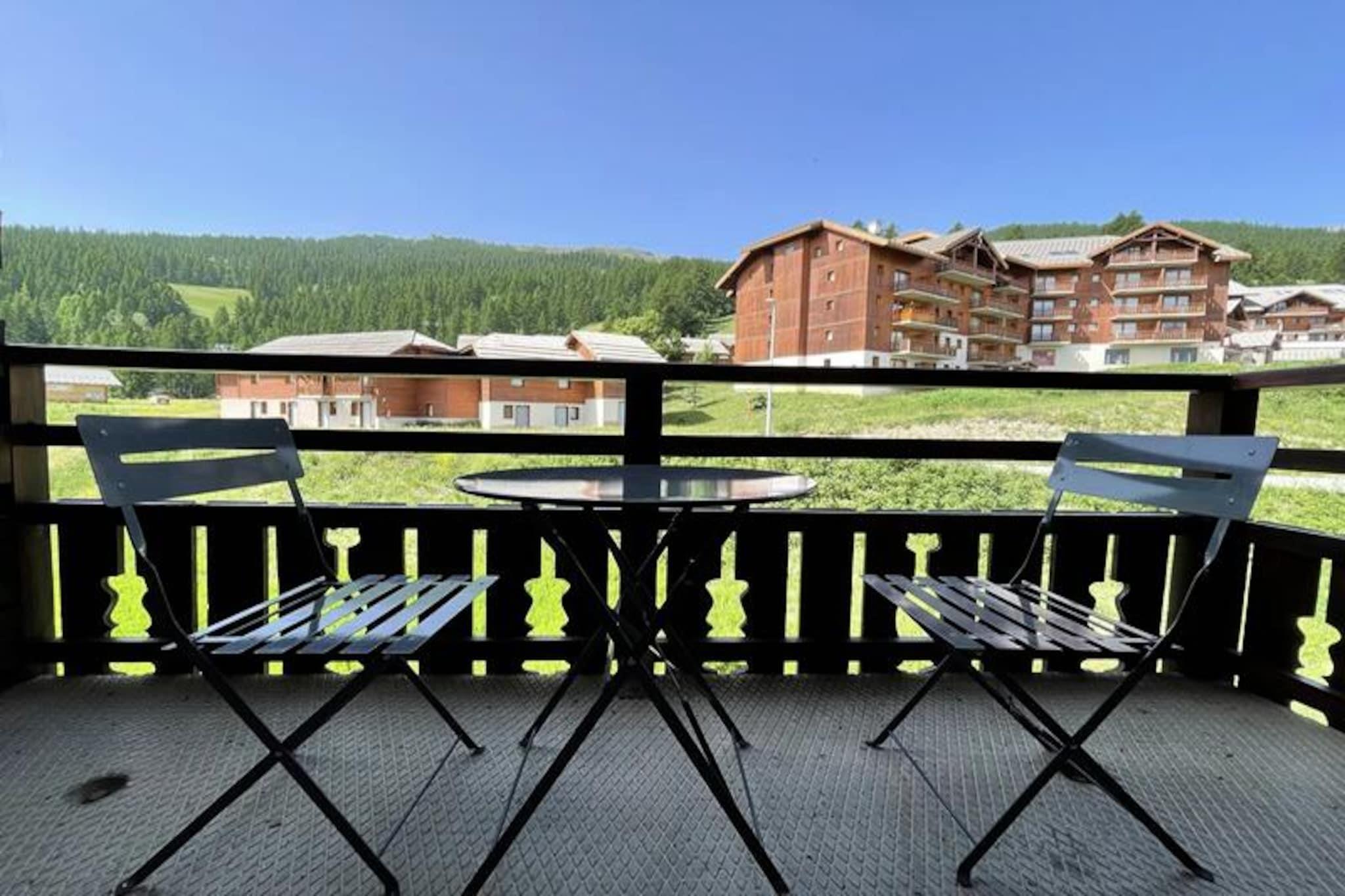 Højt over de fredfyldte skråninger i Puy Saint Vincent 1800 tilbyder denne charmerende lejlighed i La Dame Blanche-residensen en idyllisk alpin tilflugtssted for familier og grupper, der søger komfort og bekvemmelighed. Forestil dig at vågne op til den friske bjergluft og træde direkte ud på skiløjperne fra din dørtrin, med en betagende udsigt over de omkringliggende tinder, der sætter tonen for din dag. Uanset om du er her for vintersport eller sommereventyr, er denne residens perfekt placeret til at fordybe dig i de franske alpers skønhed. \n\nIndvendigt er lejligheden omhyggeligt designet til at rumme op til seks gæster. Den hyggelige stue har en udtrækssovesofa, fladskærms-tv og en balkon møbleret med bord og stole, perfekt til at nyde en morgenkaffe eller et aftenglas vin. Det veludstyrede køkken inkluderer moderne apparater såsom mikrobølgeovn, opvaskemaskine og keramisk kogeplade, hvilket sikrer, at du har alt, hvad du behøver for at tilberede lækre måltider. Sovepladserne inkluderer et soveværelse med dobbeltseng, et soveværelse med to enkeltsenge og ekstra sengetøj i opholdsstuen, alt sammen udstyret med friske dyner og puder for en god nats søvn. \n\nSelve residensen kan prale af fantastiske faciliteter, herunder en opvarmet udendørs pool, der er åben i sommermånederne, en sauna, der kan reserveres privat, og praktiske faciliteter på stedet såsom skiudlejning, bageri og snackbar. I nærheden finder du dagligvarer og en restaurant, der kan tilfredsstille dine behov efter en dag med udforskning. For ekstra bekvemmelighed er der gratis WiFi, og der kan lejes overdækket parkering. \n\nUanset om du snor dig gennem uberørt sne om vinteren eller vandrer på frodige stier om sommeren, tilbyder denne ejendom en problemfri blanding af afslapning og eventyr. Med sin førsteklasses beliggenhed og gennemtænkte faciliteter inviterer La Dame Blanche dig til at skabe uforglemmelige minder i hjertet af Alperne.
