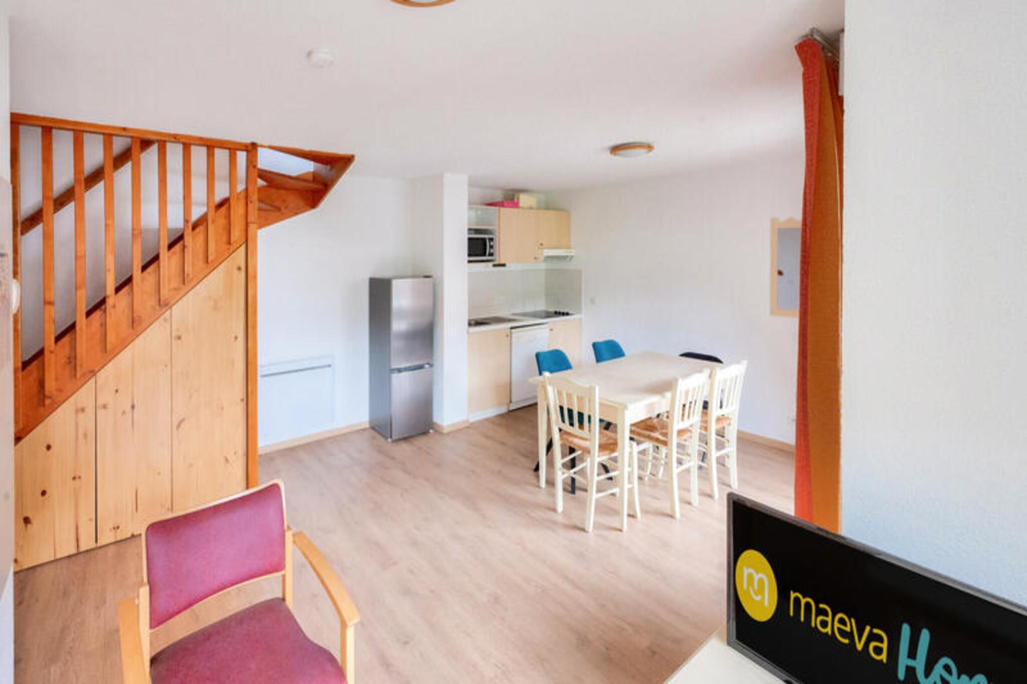 Denne ski-in/ski-out lejlighed tilbyder et behageligt ophold for op til seks gæster i hjertet af Puy Saint Vincent resort. Det livlige, familievenlige feriested kan prale af en fantastisk udsigt over bjergene og er en del af nationalparken Massif des Ecrins. Lejligheden er bekvemt placeret tæt på butikker og faciliteter, selvom butikkerne ligger 1 km op ad bakke fra boligen. Kæledyr er tilladt mod et ekstra gebyr. Mens specifikke detaljer om nærliggende cafeer, restauranter eller markeder ikke er angivet, antyder placeringen i resortet nem adgang til forskellige spise- og shoppingmuligheder. Denne 55 m² store to-etagers duplex-lejlighed har en stue med en sovesofa (sover to), et køkken åbent til stuen og en spiseplads med et bord til seks. Der er to soveværelser: et med dobbeltseng og et andet med to enkeltsenge. Badeværelset har badekar, og der er separat toilet. Sengelinned, håndklæder og slutrengøring er alle tilgængelige mod et ekstra gebyr. Daglig rengøring er også tilgængelig efter anmodning.