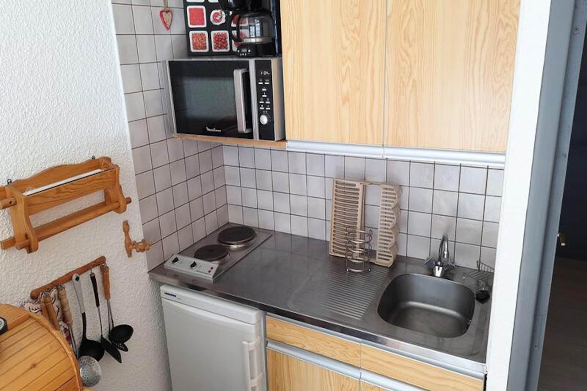 I hjertet af de franske alper, hvor uberørte skråninger møder charmerende alpelandsbyer, tilbyder denne hyggelige lejlighed i Pendine 1 Residence et dejligt tilflugtssted for op til fire gæster. Den er perfekt beliggende på tredje sal med elevatoradgang og tilbyder et varmt og indbydende sted at slappe af efter dage fyldt med eventyr. Uanset om du er her for at stå på ski, vandre eller blot nyde den betagende udsigt over bjergene, sikrer denne bolig komfort og bekvemmelighed under hele dit ophold.\n\nLejligheden har et gennemtænkt design med en alkoveindgang udstyret med køjesenge og et klædeskab, der fører ind i et hovedopholdsområde med sovesofa, fladskærms-tv og adgang til balkon. Tekøkkenet er fuldt udstyret med essentielle apparater, herunder en miniovn, elektrisk kogeplade, kaffemaskine og brødrister, hvilket gør det nemt at tilberede måltider og nyde dem i den hyggelige spiseplads. Badeværelset har badekar og toilet, mens rulleskodder giver privatliv og en fredelig atmosfære.\n\nBeliggende i en førsteklasses beliggenhed tilbyder boligen skibokse i stueetagen for nem adgang til pisterne. Der er betalt Wi-Fi til rådighed for dem, der har brug for at holde sig forbundet, og valgfrie tjenester såsom leje af sengetøj og håndklæder sikrer en problemfri oplevelse. I nærheden finder du skiskoler, udlejningsbutikker og afterski-steder, der bringer landsbyen til live. Om sommeren forvandles området til et paradis for vandrere og cyklister med stier, der snor sig gennem fantastiske landskaber og fører til panoramaudsigter.\n\nUanset om du søger spændende vintersport eller rolige sommerferier, er denne lejlighed din port til skønheden og eventyret i de franske alper. Med sin indbydende atmosfære og bekvemme faciliteter er det det perfekte valg til en mindeværdig alpeferie.