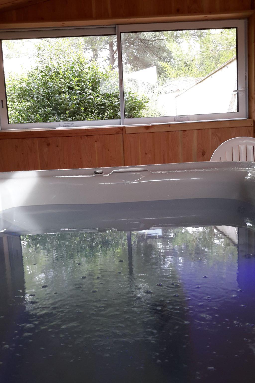 BUNGALOW house of 70m2 living space + room of 40m2 with private HEATED SWIMMING POOL of 5.95 X 3.5 m (depth 1.5m), (water at 29-30°C treated with active oxygen), OPEN from February to the end of November. Use of the pool is totally exclusive to this house. Access to the pool is via the living room or the terrace (enclosed by bay windows and roller shutters). The house comprises 2 bedrooms, a large living room with fully-equipped open-plan kitchen, 1 shower room with walk-in shower, separate wc.
