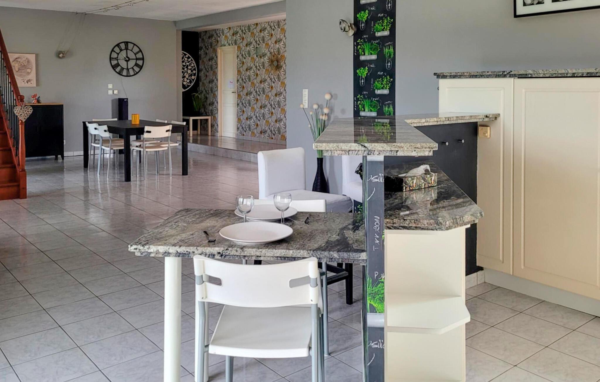 Villaen imponerer med rummelighed og meget plads. Den hyggelige stue med TV ligger i åben forbindelse med køkkenet der har en bar til en hurtig morgenmad og en god spiseplads. Dette opholdsrum er komfortabel indrettet og veludstyret og fører til den smukke og brede terrasse lavet af træ, som ligger lidt forhøjet og er delvist overdækket. Nyd den smukke udsigt på olivenlunden fra solsengen ved poolen. Børnene kan boltre sig i haven eller i vandet, mens de voksne slapper af. Eller udfordr hinanden med et parti bordfodbold og andre sjove spil for hele familien på mezzaninetagen. Bilen kan parkeres på ejendommen eller i den store garage, hvor der er plads til flere biler.