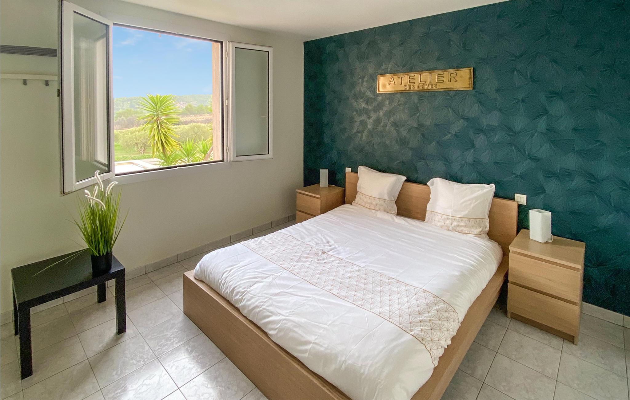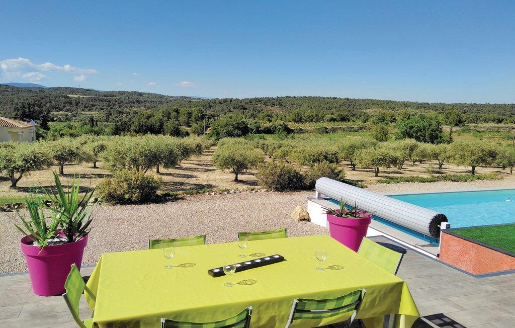 Rummeligt feriehus på en stor grund med pool og fantastisk udsigt! Denne ejendom ligger i landsbyen Quarante i Languedoc-Roussillon, midt i vinmarkerne og med udsigt over de fjerne bjerge.