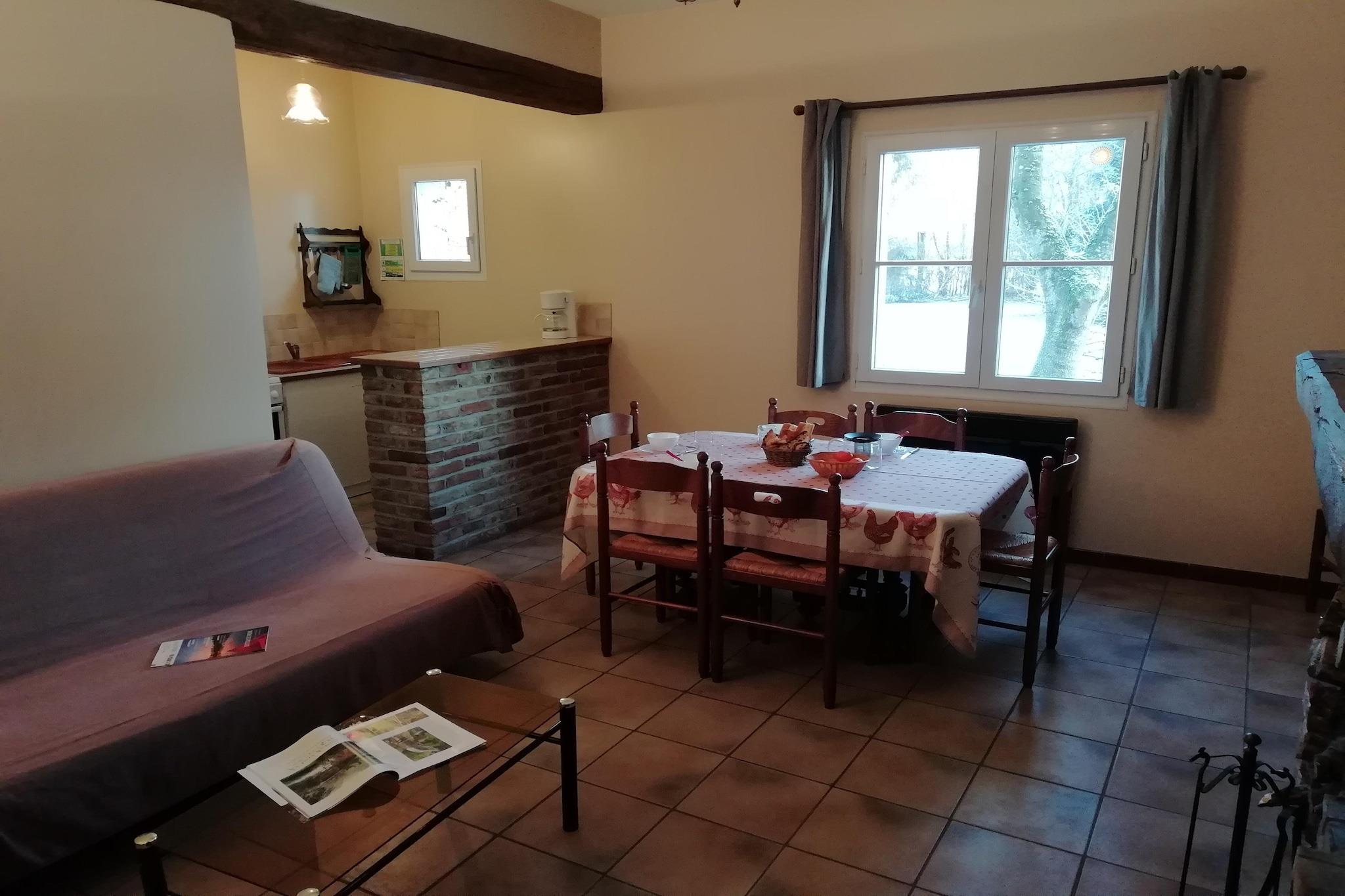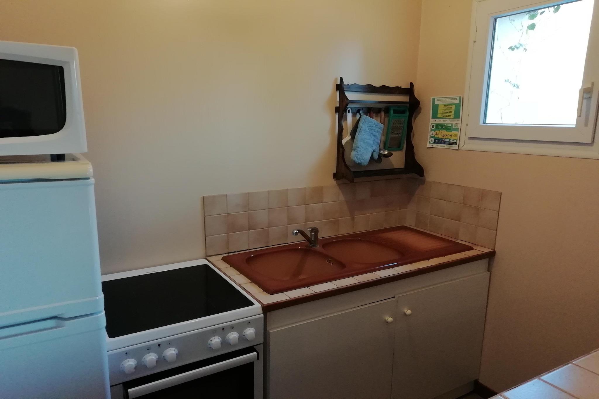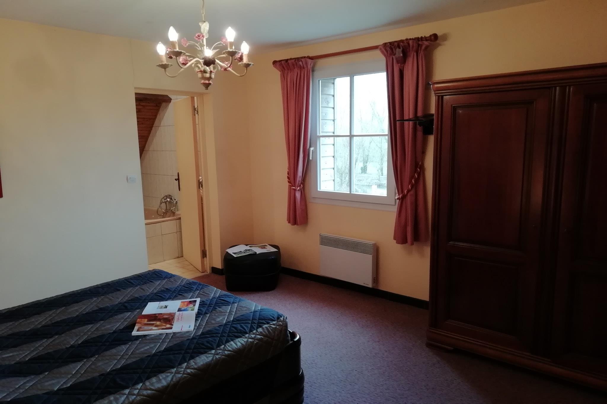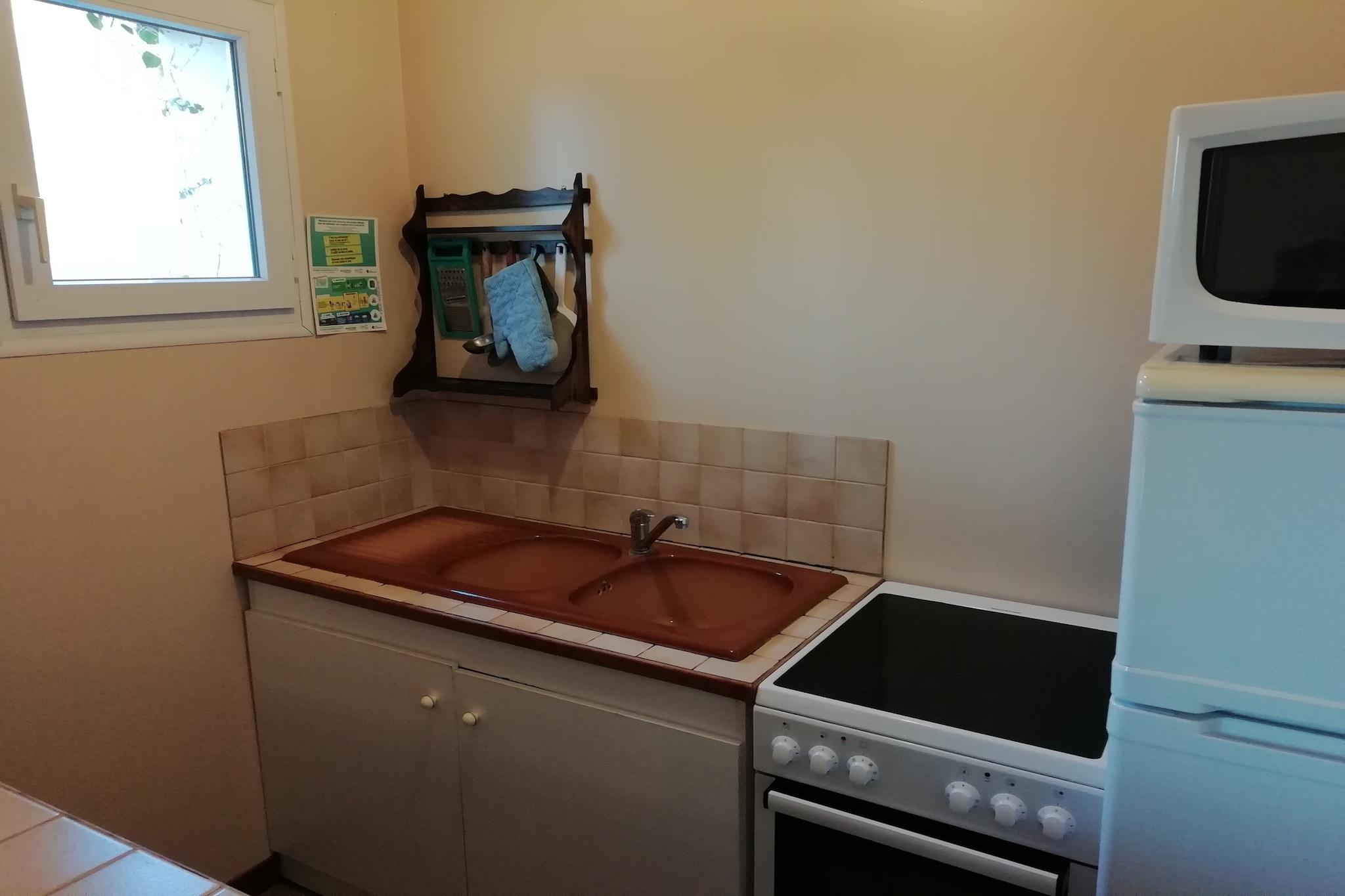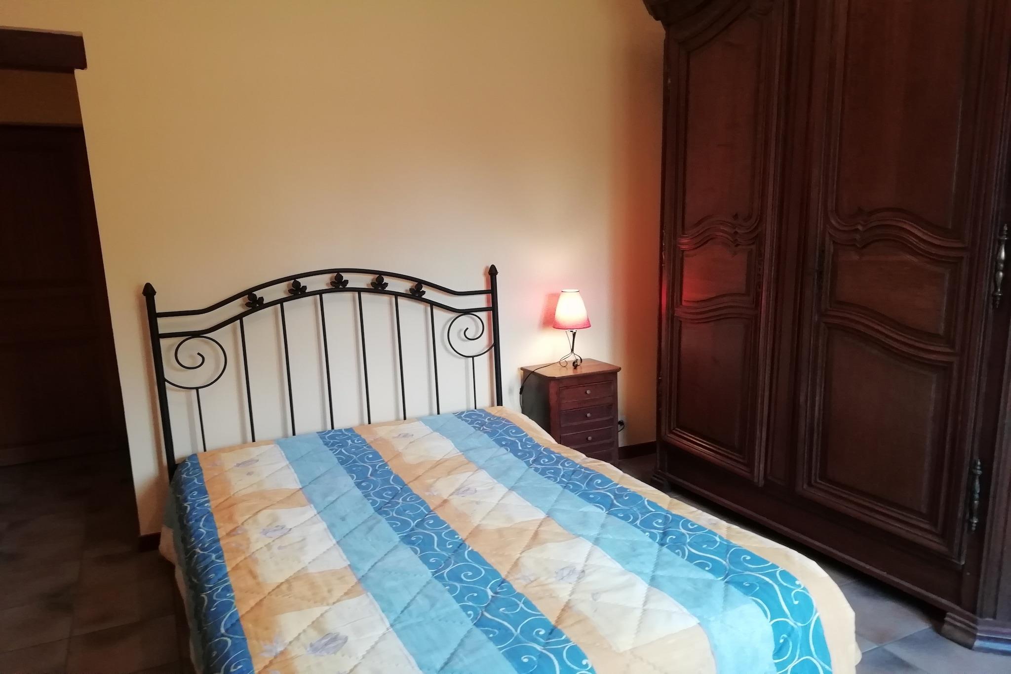 Stueetage: (Stue(dobbeltsovesofa, Fjernsyn, pejs), Køkken(mikrobølgeovn), soveværelse(dobbeltseng), badeværelse(badekar, håndvask, toilet)) På 1. etage: (soveværelse(2x dobbeltseng)) vaskemaskine, varme(elektrisk), terrasse(overdækket), havemøbler, swimmingpool(deles med andre gæster, 13 x 6 m., opened from Jun upto and including 1/2 Sep), tennisbane(deles med andre gæster, betalt), petanquebane, bordtennisbord