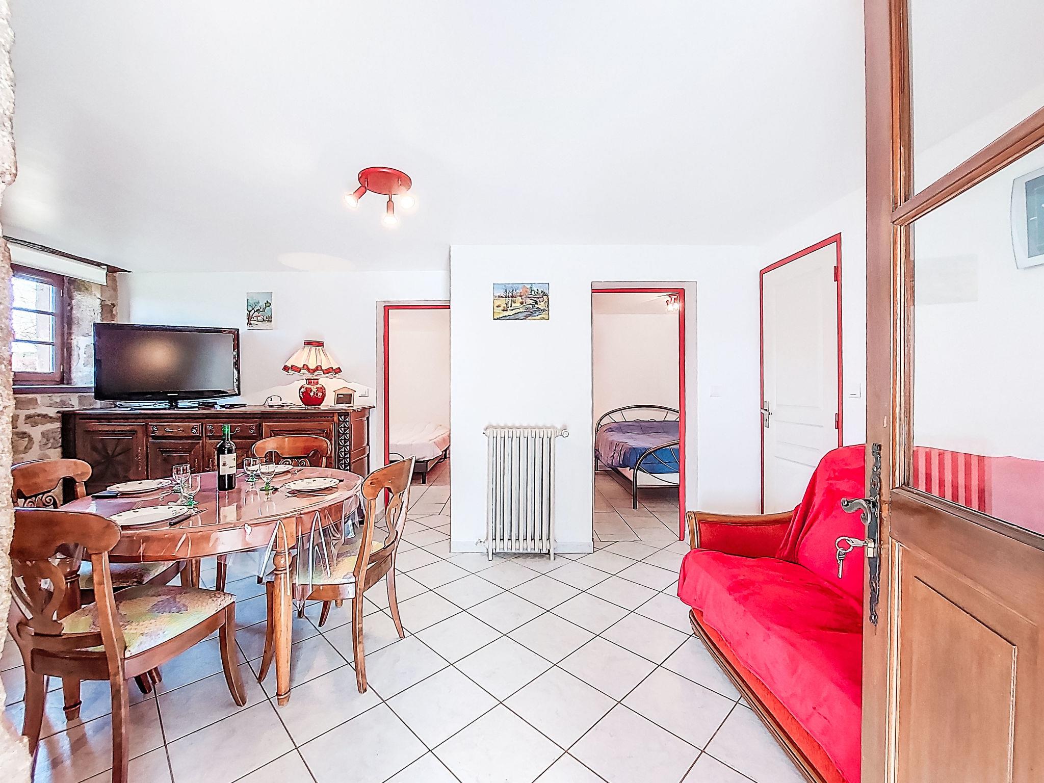 "Gite de la chapelle", 3-room semi-detached house 50 m2. Comfortable and rustic furnishings: living/dining room with dining table and TV (flat screen). Exit to the terrace. 2 rooms, each room with 1 french bed (140 cm, length 190 cm). Kitchenette (oven, dishwasher, 4 gas rings, toaster, kettle, microwave, freezer, electric coffee machine). Shower/WC. The living room is a farmhouse lounge. Terrace roofed, south facing position. Terrace furniture, barbecue. Facilities: Internet (WiFi, free). Please note: maximum 2 pets/ dogs allowed. Smoke alarm. Offer by a private individual according to Art. 155, IV of CGI.