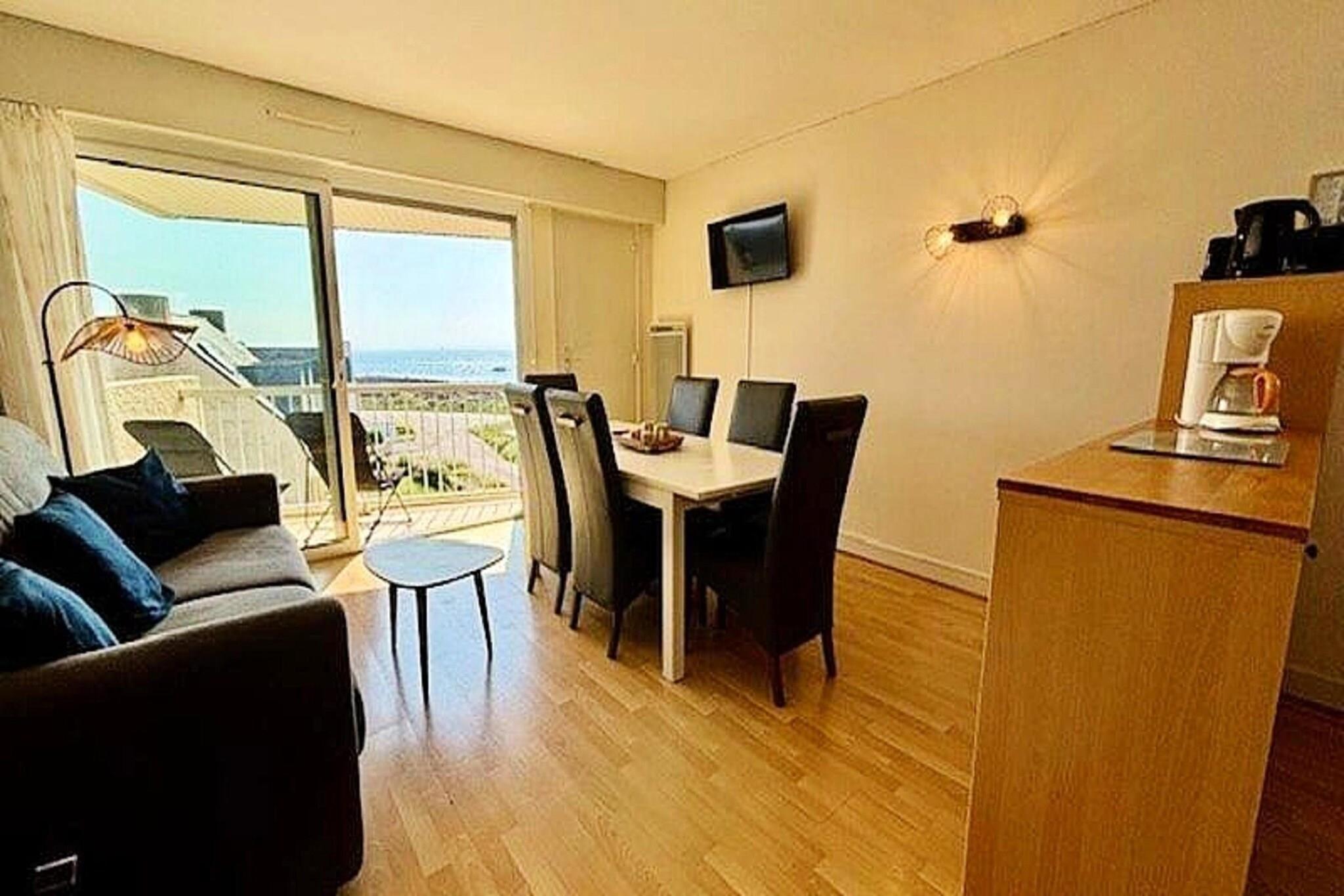 This charming 52m² apartment is ideal for up to 6 guests, offering two sea-facing bedrooms with a 160cm bed and two 90cm beds, along with a 140cm convertible sofa in the living room. The property is non-smoking and does not allow pets, ensuring a tranquil stay. A sea-facing balcony with garden furniture allows you to take in the breathtaking views of the wild coast of Quiberon. For added convenience, an outdoor parking space (No. 9) and shared bicycle storage are provided. Located just steps away from the beach and within easy reach of local shops, cafes, and markets, this apartment is perfectly situated to explore the vibrant surroundings of Quiberon. Enjoy scenic beach walks, local dining options, and access to the area’s unique coastal beauty, all just a short distance from your doorstep. The apartment features an open-plan, fully equipped kitchen with a combined oven/microwave, dishwasher, 4-burner induction hob, coffee maker, kettle, and toaster. A spacious living room includes a TV and dining area for your comfort. The bathroom and separate WC offer additional convenience, making this apartment a perfect choice for a relaxing stay near the water. Optional services, including end-of-stay cleaning and linen rental, are available for added comfort.