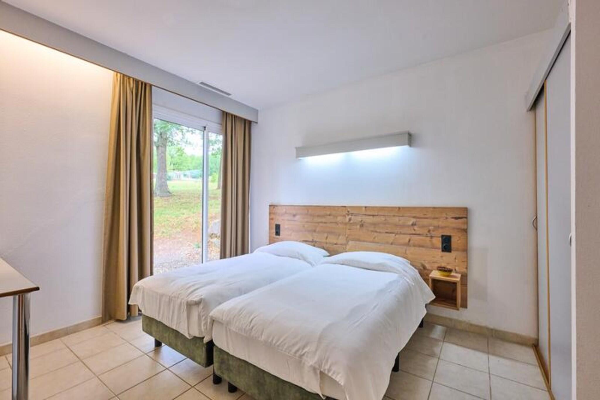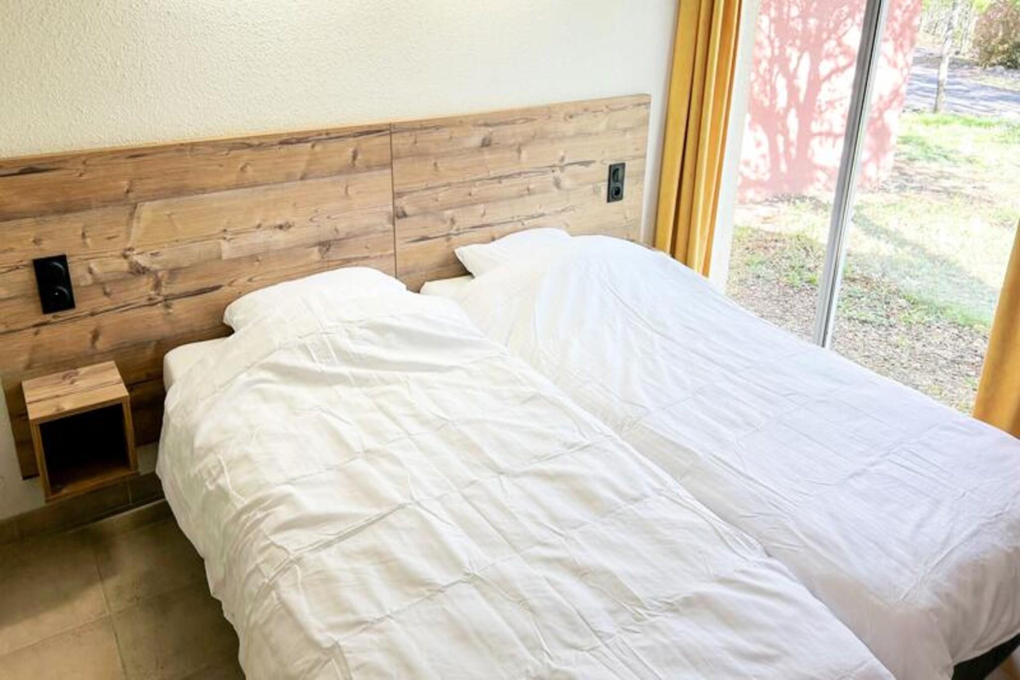 Midt i det fredfyldte landskab og ved en rolig søbred tilbyder dette luksuriøse feriehus et perfekt tilflugtssted med en betagende udsigt over Pyrenæerne. Forestil dig at vågne op til naturens blide lyd, træde ud på din private terrasse og nippe til kaffe, mens du beundrer det bølgende landskab. Disse fredelige omgivelser er ideelle for familier eller grupper, der søger afslapning og eventyr i lige mål. Selve ferieparken er et fristed for fritid med swimmingpool, tennisbaner og cykeludlejning til at udforske den omkringliggende skønhed. Børnene vil nyde det udendørs legeområde, mens de voksne kan slappe af i baren eller restauranten på stedet. \n\nIndenfor er hjemmet smagfuldt indrettet med moderne bekvemmeligheder og en rummelig planløsning. Stuen har et hyggeligt siddeområde og et fladskærms-tv med internationale streamingkanaler, perfekt til afslapning efter en dag med udforskning. Det fuldt udstyrede køkken inviterer dig til at tilberede lækre måltider, komplet med induktionskogeplader, mikrobølgeovn og opvaskemaskine for nemheds skyld. Med tre soveværelser med komfortable enkeltsenge og to badeværelser - det ene med badekar og det andet med bruser - er hver eneste detalje designet til din komfort. Et separat toilet giver ekstra praktisk anvendelighed, mens aircondition sikrer et behageligt ophold selv i de varmere måneder. \n\nGå udenfor til din møblerede terrasse, delvist overdækket for skygge, hvor du kan nyde måltider under åben himmel eller blot slappe af med en bog. De store græsplæner omkring husene skaber et sikkert og legende miljø for børn, hvilket bidrager til den familievenlige charme. Parkering er tilgængelig, men gebyrer afspejler den ekstra luksus ved aircondition. \n\nUd over ejendommen inviterer regionen til udforskning med sine fantastiske landskaber, kulturskatte og udendørsaktiviteter. Uanset om du cykler ad naturskønne stier, spiller tennis eller opdager det lokale køkken, er dette feriehus porten til uforglemmelige minder i hjertet af Pyrenæerne.