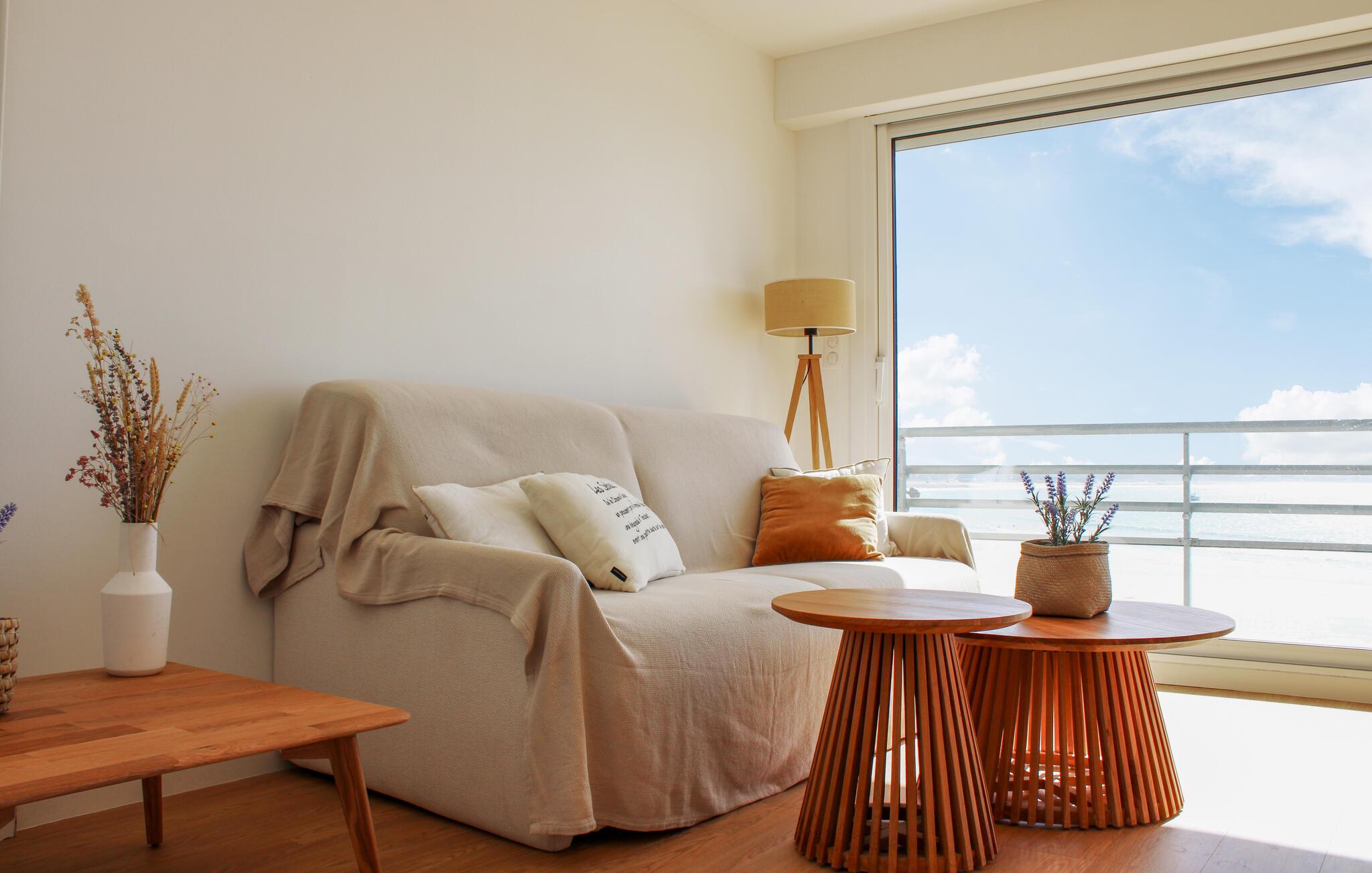 Åbn de store vinduer og gå ud på balkonen. Nyd den uhindrede udsigt over Atlanterhavet, nyd nærheden til stranden, og se aktiviteten på promenaden.