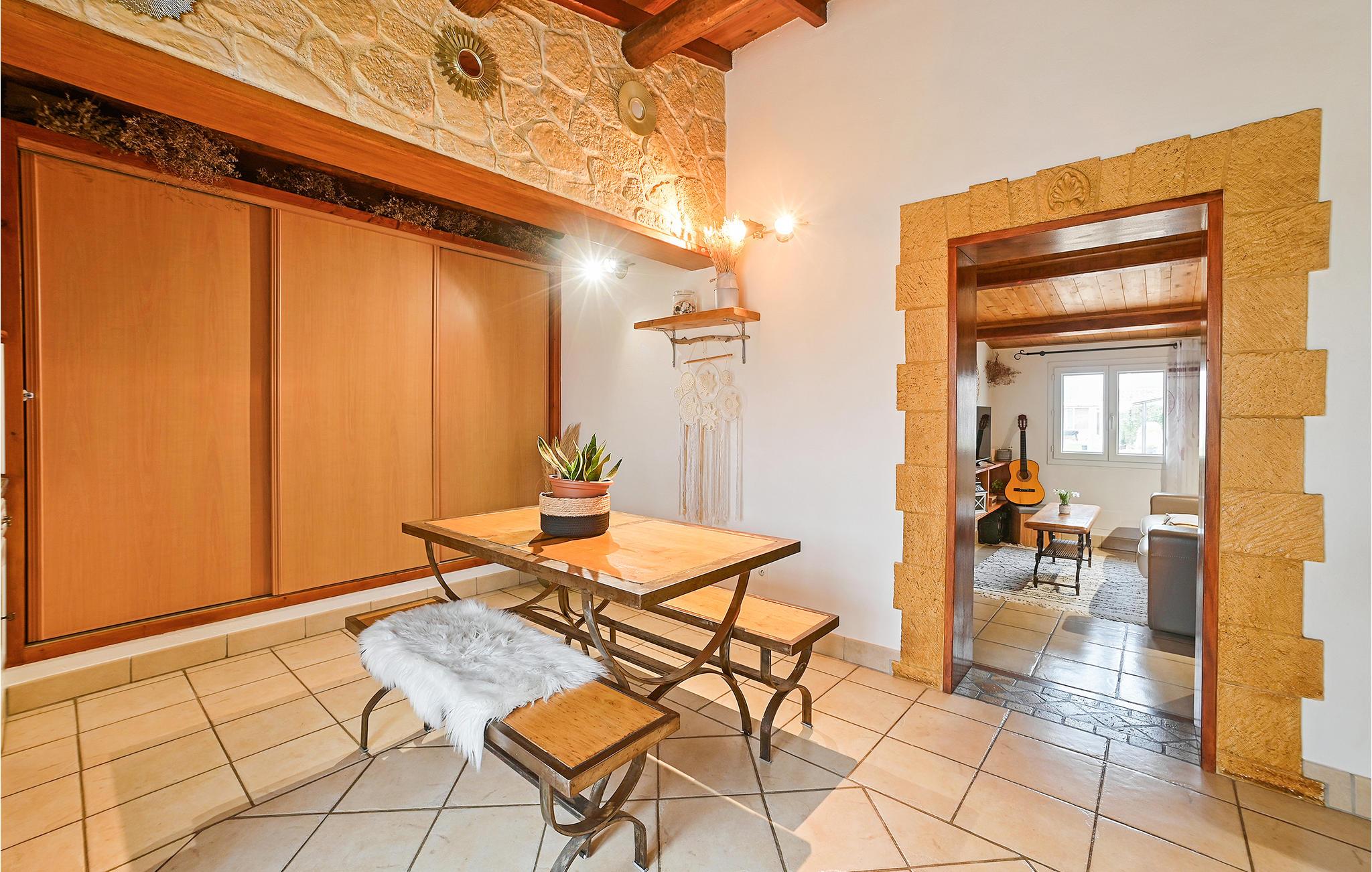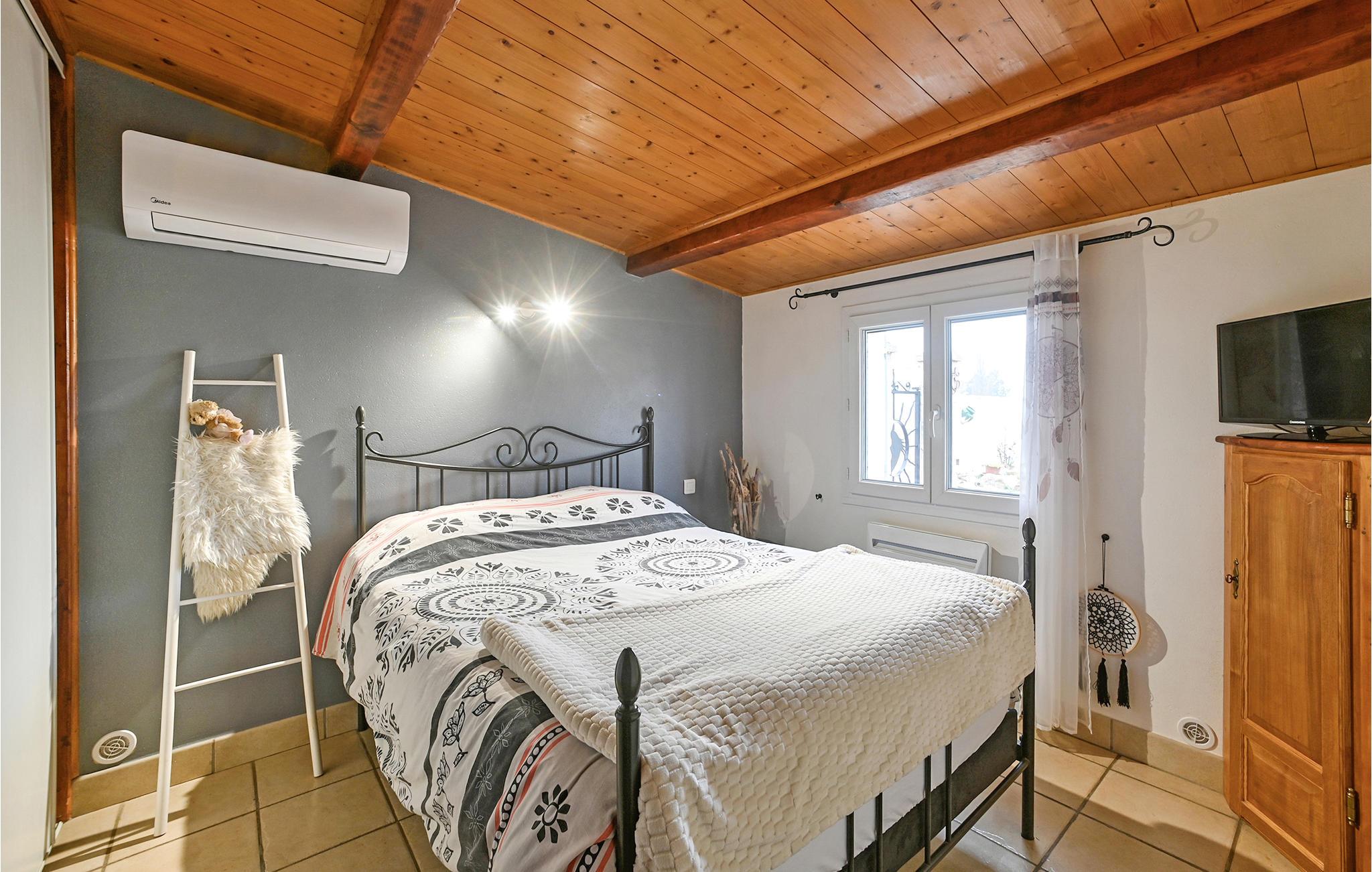 Der er lagt op til en ferie med fred og ro i dette indbydende og klimatiserede hus, hvis beliggenhed er helt ideel til en begivenhedsrig ferie. Her får I al den komfort, I behøver for et behageligt ophold helt uden bekymringer. Hele grunden byder på en landlig atmosfære, som I hurtigt vil føle jer hjemme i, og udendørsområdet byder på både pool og poolhus samt en gasgrill. I skal glæde jer til bare at slappe af ved poolen, og på terrassen har I det perfekte sted at nyde nogle dejlige familiemåltider. Der er også et fælles fitnessrum.