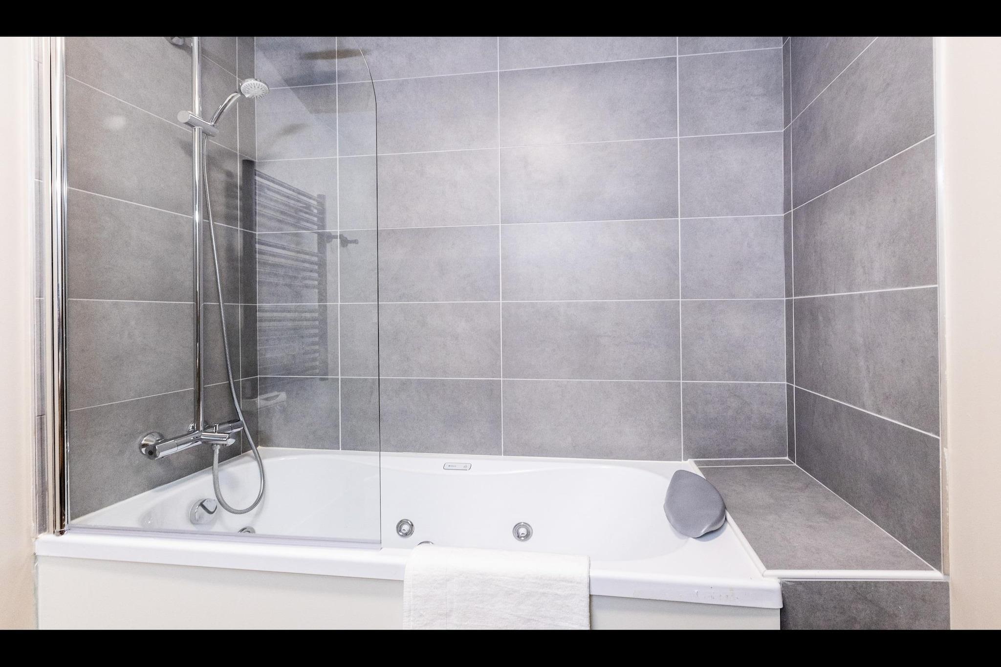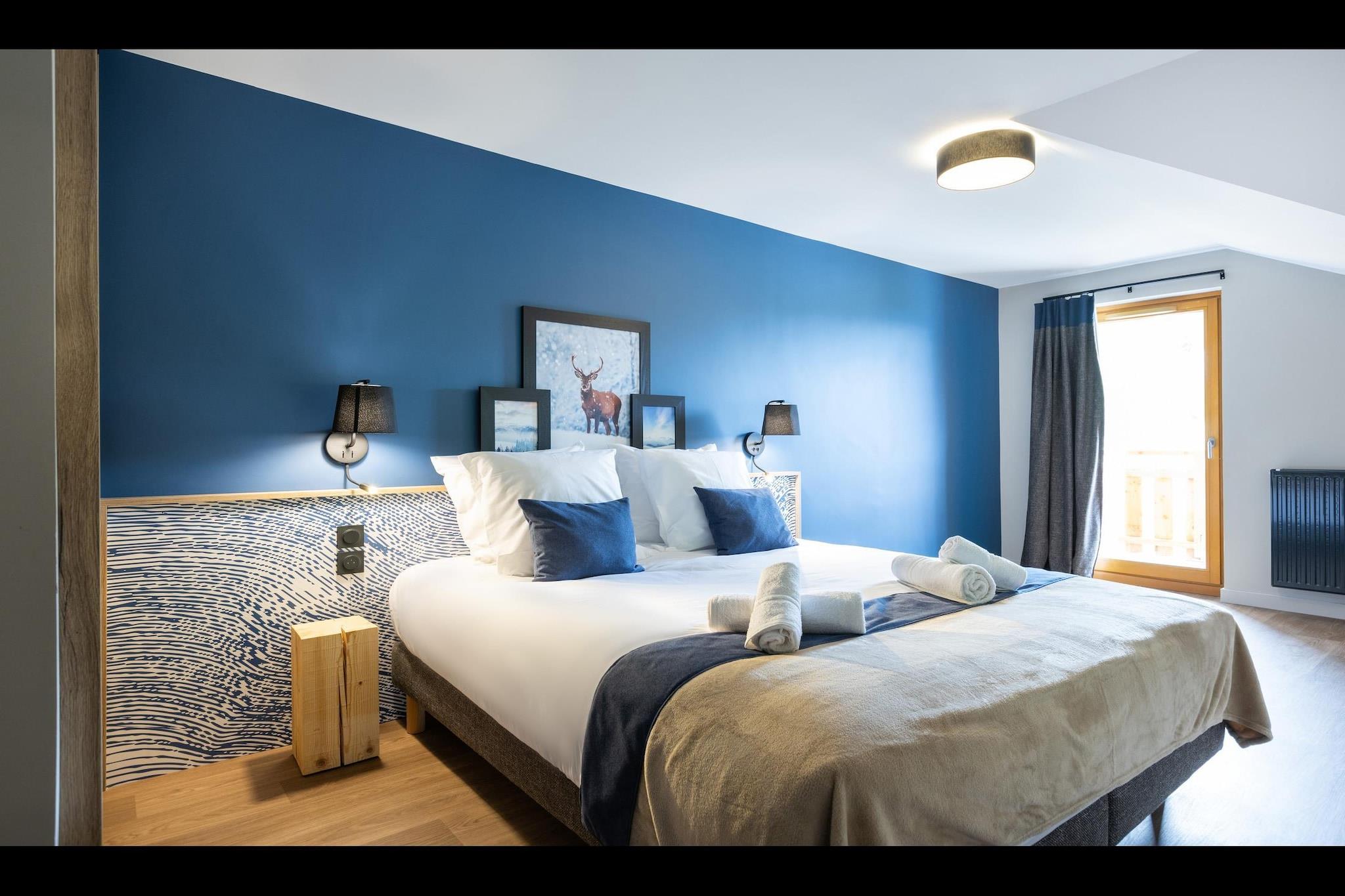Stue(dobbeltsovesofa, Fjernsyn, pejs, sofahjørne), åbent køkken(kogeplade(glaskeramisk), elkedel, kaffemaskine, ovn, mikrobølgeovn, opvaskemaskine , køleskab, ), soveværelse(dobbeltseng), soveværelse(køjeseng), badeværelse(badekar eller bruser), badeværelse(badekar eller bruser), toilet(toilet), toilet(toilet), skiopbevaring, sauna, swimmingpool(deles med andre gæster, indendørs), føntørrer