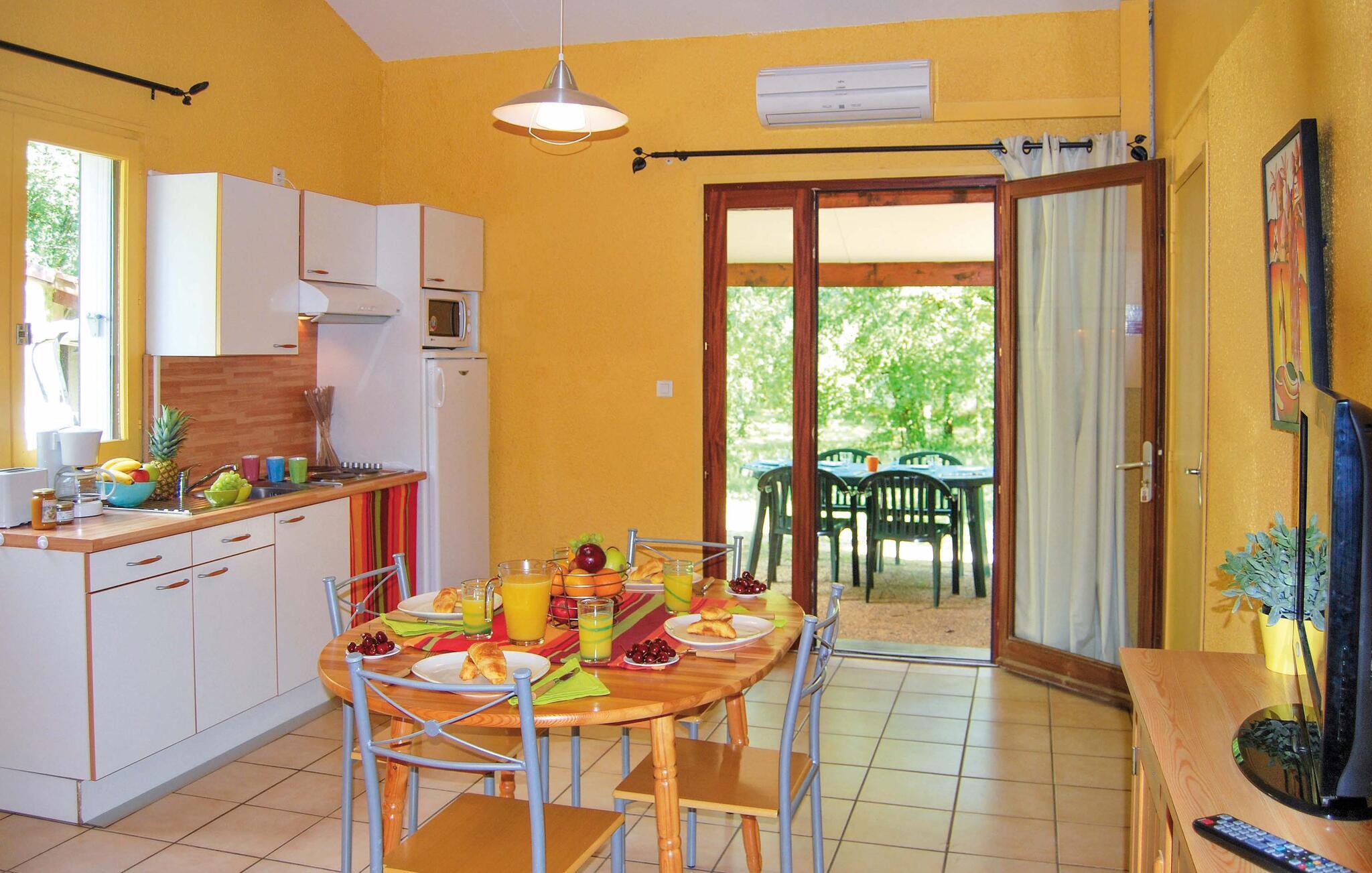 Udenfor finder I terrassen, hvor I kan nyde morgenkaffen og den smukke udsigt over de grønne omgivelser. I sommermånederne kan I tage nogle dyp i kompleksets pool, og her er der også et soppebassin til børnene. Både pool og bassin er åbne, når vejret tillader det.