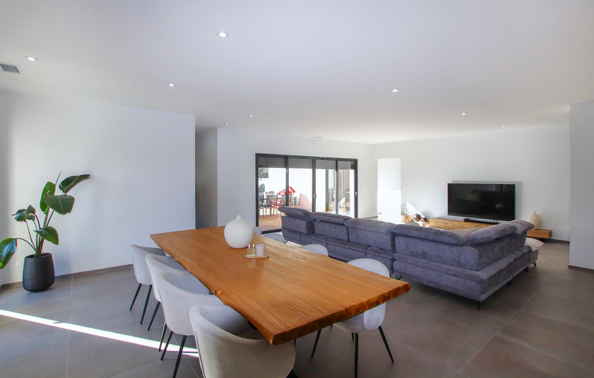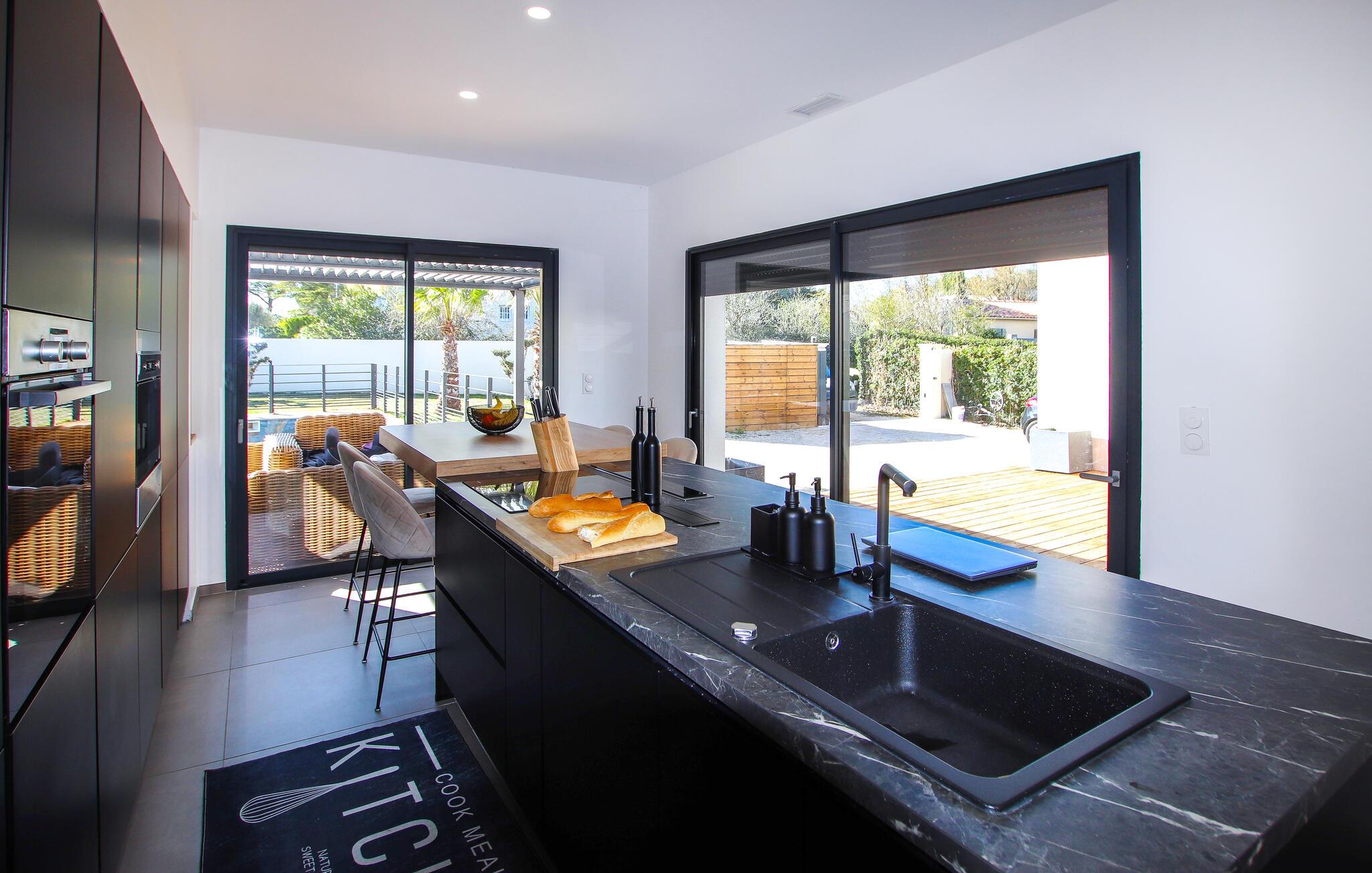 Et af husets højdepunkter er den private udendørs pool, hvor I kan bade i fred og ro og dase på den store, sydvendte træterrasse i indhegnede have med oliven- og palmetræer. I det amerikanske køkken finder I det bedste sted at nyde jeres udendørs måltider.