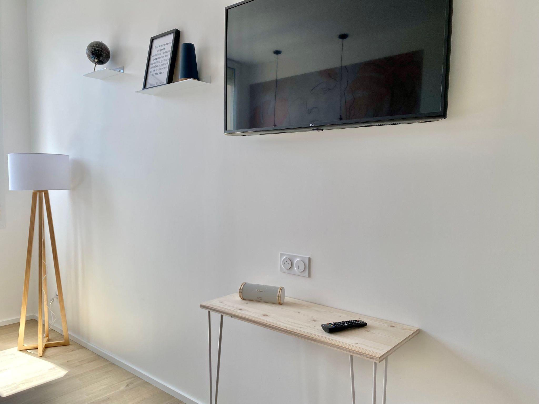 160 cm bed with high comfort mattress, Linen provided (sheets, towels and kitchen towels), Fully equipped kitchen to cook like at home (dishwasher, induction hob, microwave-grill, Nespresso, kettle...), Comfortable dining area, Free high-speed Wi-Fi, 104 cmTV with Netflix, Office area, Bathroom with large walk-in shower, Secure building with digicode, Independent entrance and exit (code lock)