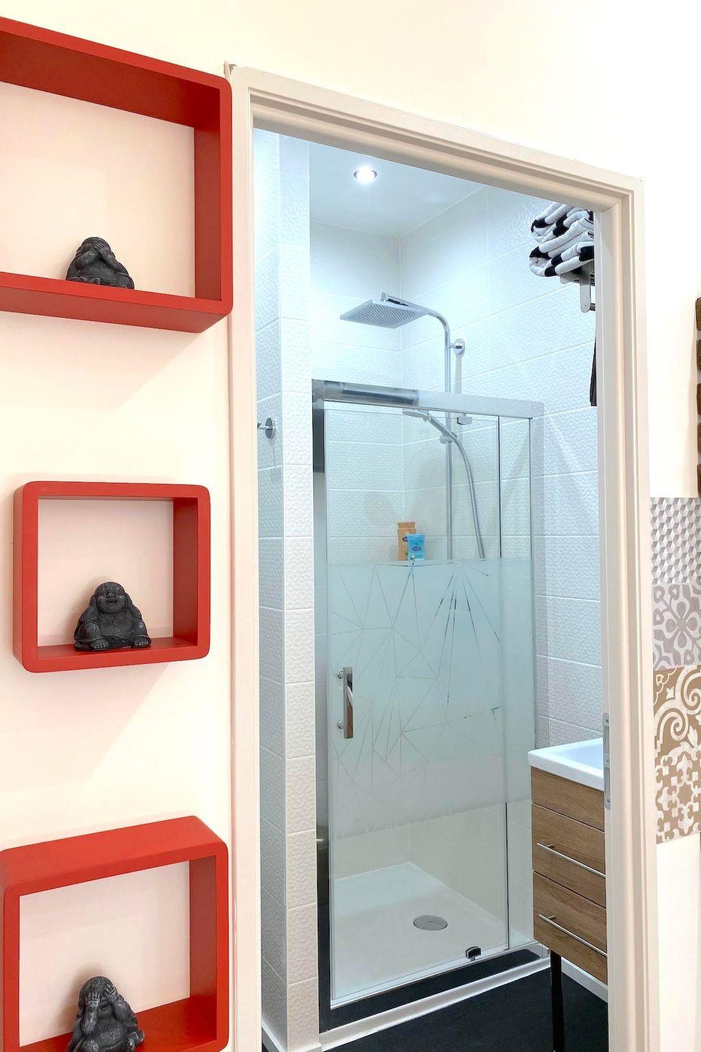 160 cm bed with high comfort mattress, Linen provided (sheets, towels and kitchen towels), Fully equipped kitchen to cook like at home (dishwasher, induction hob, microwave-grill, Nespresso, kettle...), Comfortable dining area, Free high-speed Wi-Fi, 104 cmTV with Netflix, Office area, Bathroom with large walk-in shower, Secure building with digicode, Independent entrance and exit (code lock)