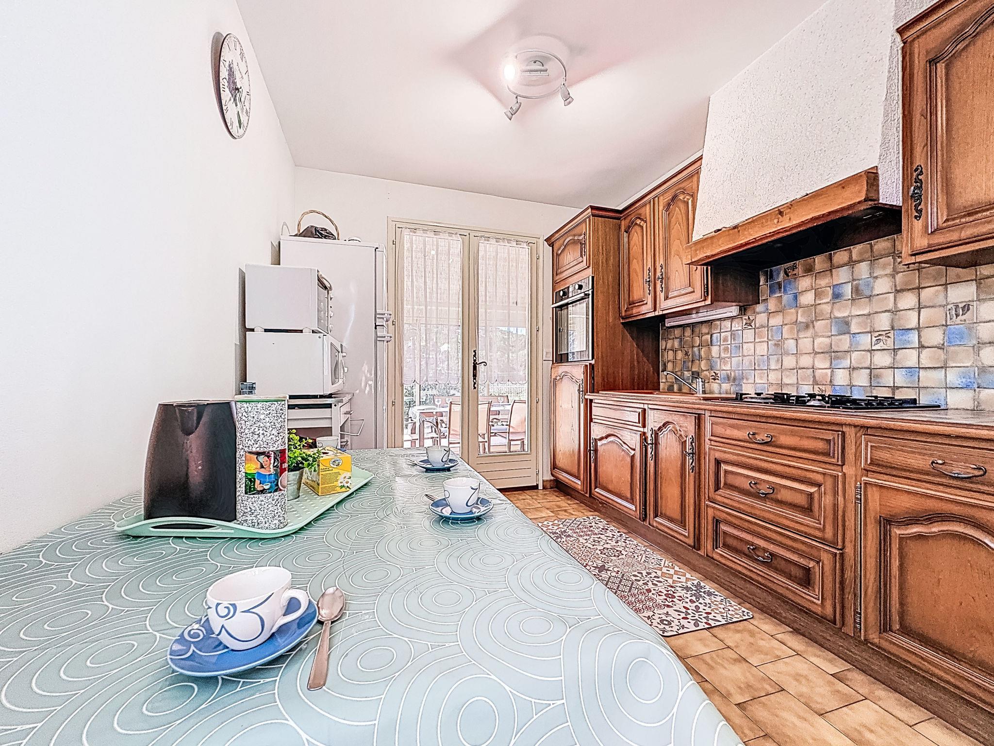 3-room house 87 m2. Comfortable furnishings: living/dining room with 1 double sofabed (1 x 140 cm, length 190 cm), TV (flat screen), air conditioning. Exit to the terrace. 1 room with 1 french bed (1 x 140 cm, length 190 cm), air conditioning. Dining room with veranda with dining table. Exit to the swimming pool. Large, open kitchen (oven, dishwasher, 4 gas rings, toaster, kettle, microwave, freezer, electric coffee machine). Exit to the veranda. Shower, sep. WC. Heating. Terrace. Terrace furniture, deck chairs (4). Facilities: washing machine, iron, baby cot for up to 2 year olds, hair dryer. Internet (WiFi, extra). Parking. Please note: maximum 1 pet/ dog allowed. TV only FR. Smoke alarm. Offer by a private individual according to Art. 155, IV of CGI. 831070026765S