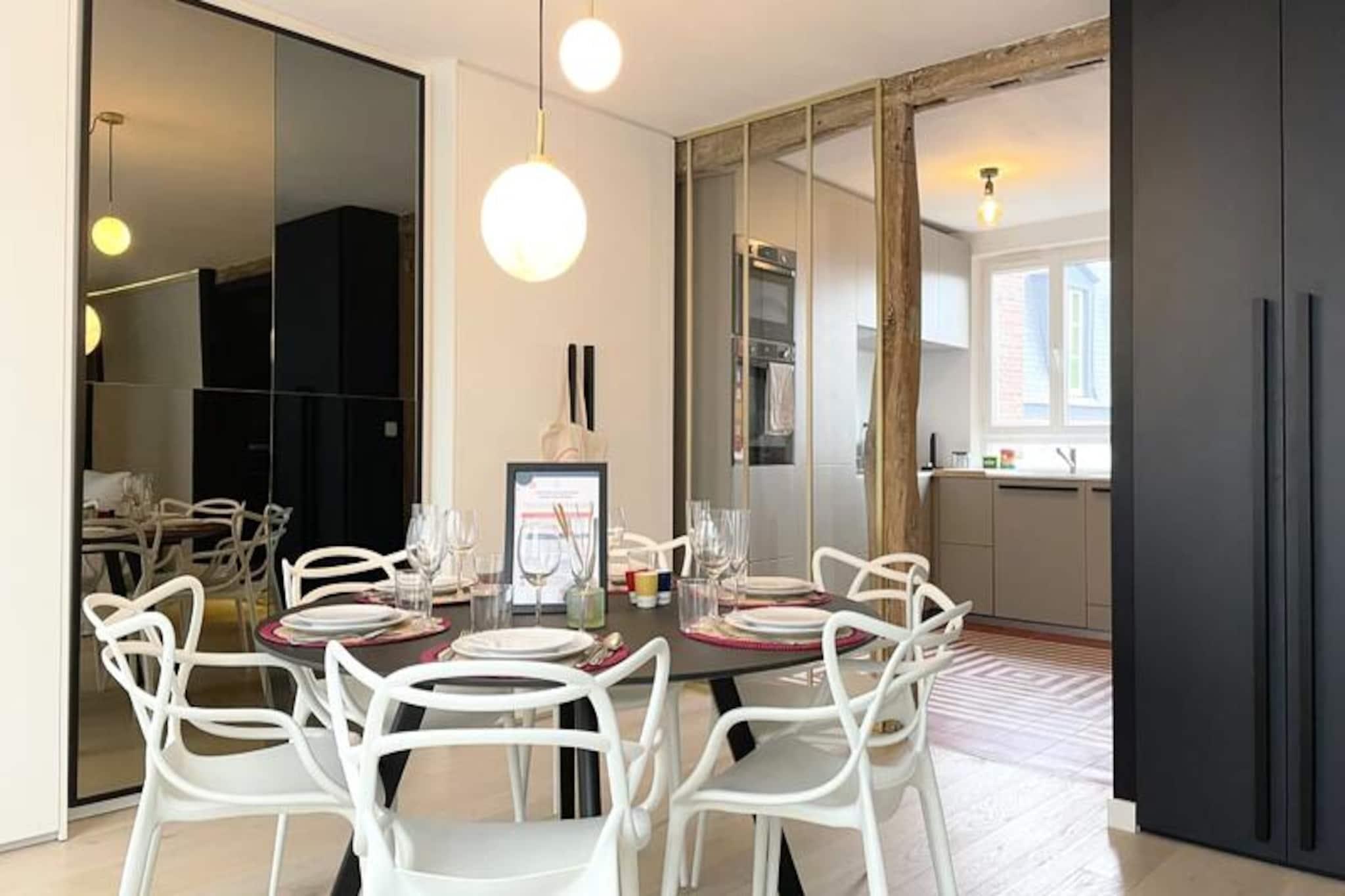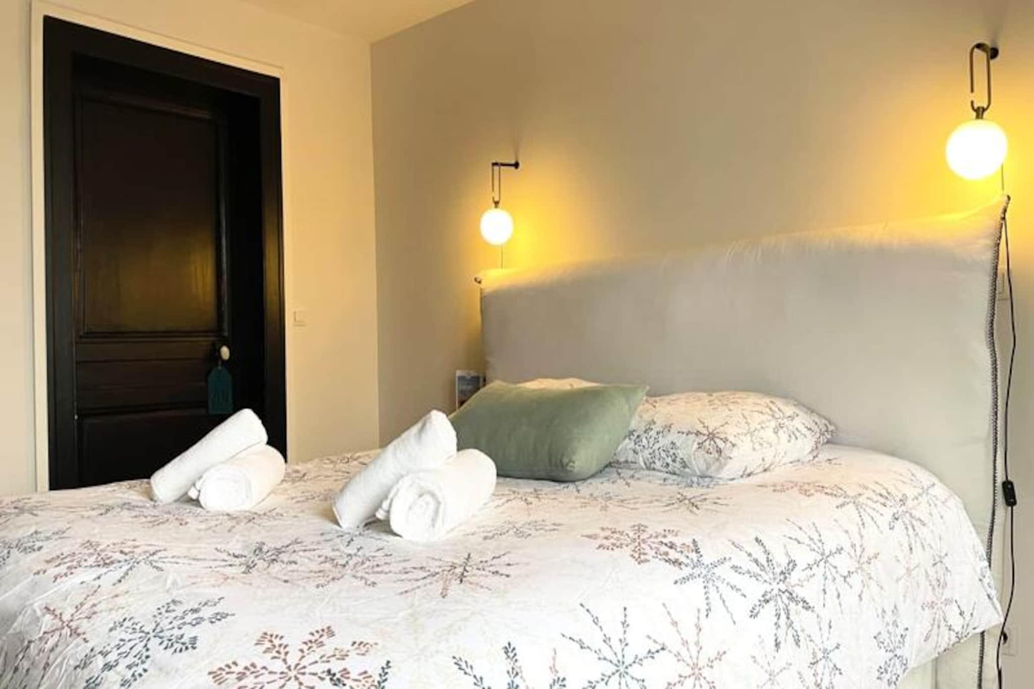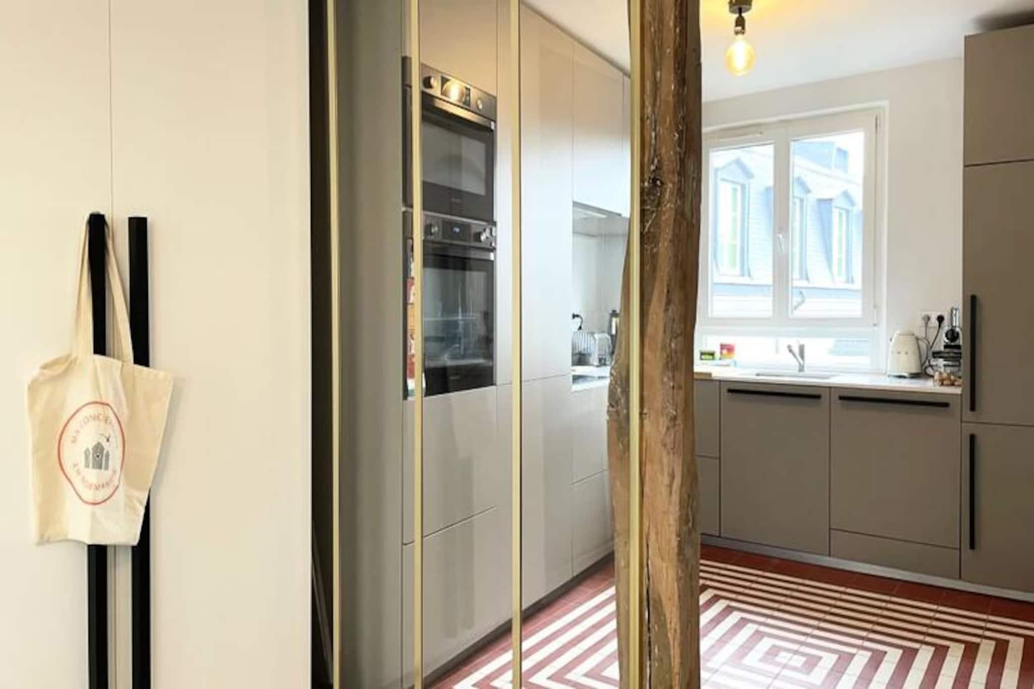 Denne moderne lejlighed kan komfortabelt rumme op til fire gæster. Det har en master suite med en queen-size seng og et andet soveværelse med to enkeltsenge (som kan kombineres til en dobbeltseng). Sengetøj og håndklæder er til rådighed for din bekvemmelighed. Lejlighedsbeskrivelsen nævner ikke, om kæledyr er tilladt, så det er bedst at forhøre sig direkte hos værten. Lejligheden ligger i hjertet af Rouen, kun en kort gåtur fra SNCF-togstationen og den berømte Place du Vieux Marché. Dens centrale beliggenhed giver nem adgang til adskillige butikker, restauranter og kulturelle attraktioner. Det ikoniske Gros Horloge (det store ur) ligger mindre end 5 minutters gang væk, hvilket gør det til en ideel base for at udforske byens historiske og kulturelle arv. Lejligheden byder på et fuldt udstyret køkken i amerikansk stil med moderne apparater, herunder køleskab, ovn, induktionskomfur, opvaskemaskine og Nespresso-maskine. En rummelig stue giver god plads til afslapning og spisning. Master-suiten har et stort påklædningsværelse og en bruser i italiensk stil. Der er også vaskemaskine og gratis WiFi. Bemærk venligst, at der ikke er parkering, men der er offentlig parkering i nærheden.