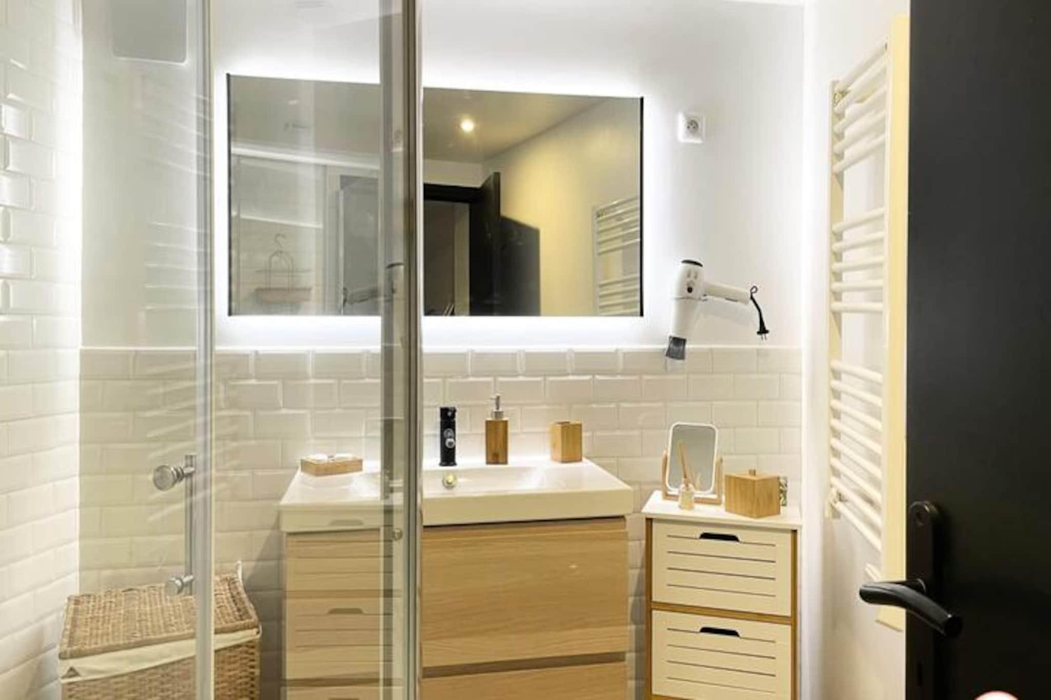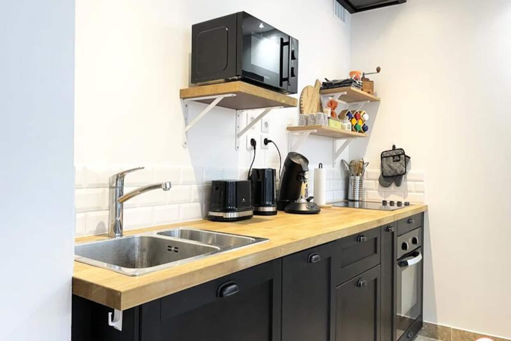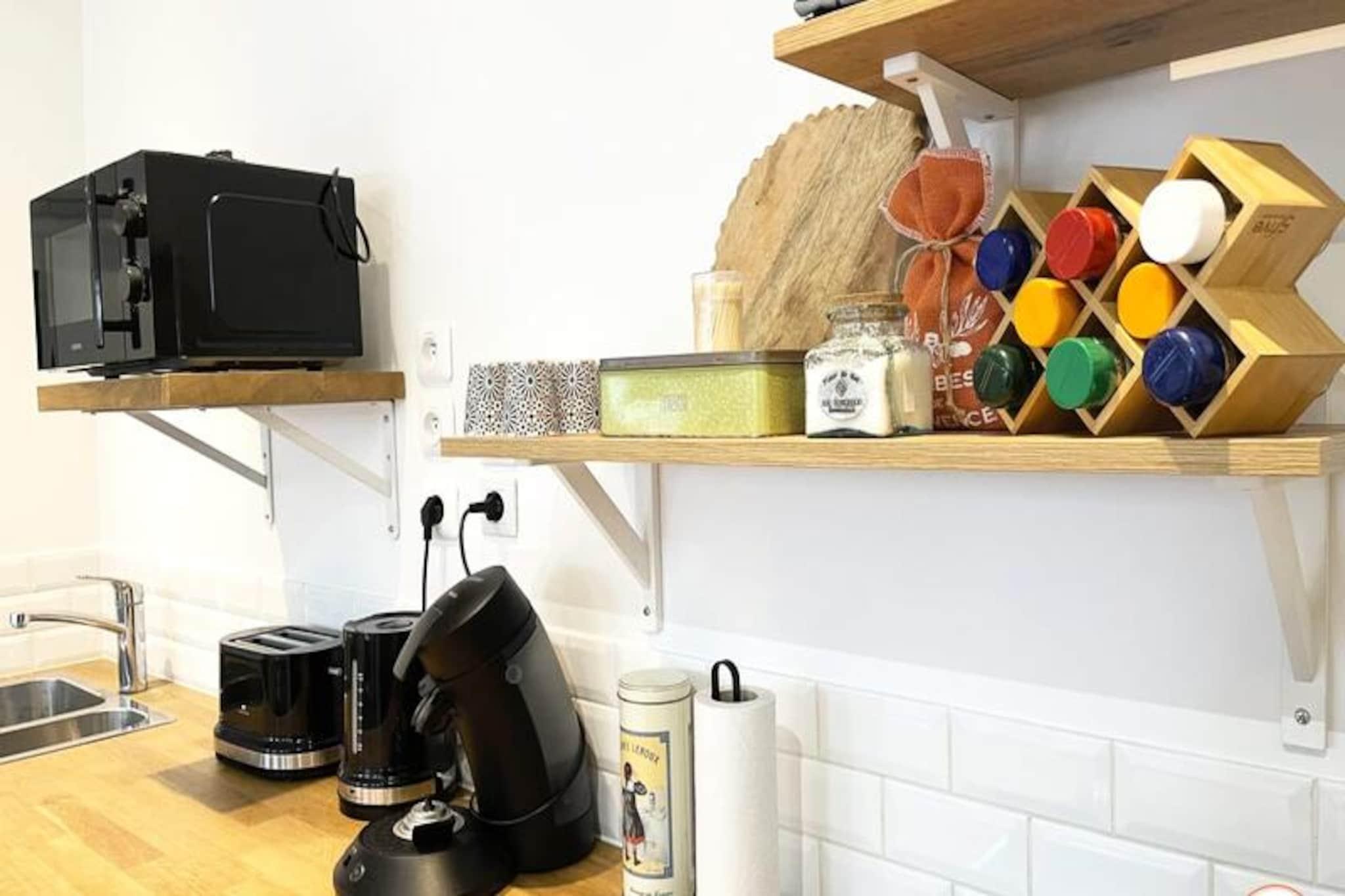 Denne smagfuldt renoverede lejlighed i stueetagen (der kræver et par trin ned) i det centrale Rouen tilbyder komfortabel indkvartering for op til to gæster. Lejligheden har et soveværelse med en queen-size seng (nyt i marts 2024) og en stue med en stue/spisestue. En lille udendørs engelsk gårdhave giver et behageligt sted at slappe af. Fælles udendørs parkering er tilgængelig efter anmodning (ikke tilgængelig mellem 9.-30. september 2024 på grund af byggeri), med gratis gadeparkering i nærheden. Beliggende i hjertet af Rouen, er lejligheden kun få skridt fra SNCF-togstationen og en kort gåtur fra den berømte gamle markedsplads (10 minutter) og byens bedste butikker og restauranter (5 minutter). Denne centrale beliggenhed giver nem adgang til alle Rouens største turistattraktioner. Lejligheden indeholder et fuldt udstyret køkken i amerikansk stil åbent til stuen (køleskab, ovn, induktionskomfur, opvaskemaskine, kaffemaskine), et badeværelse med bruser i italiensk stil og et separat toilet. Faciliteterne inkluderer et Smart TV (med Netflix og Canal+ adgang via personlige logins), gratis Wi-Fi, sengetøj og håndklæder, et strygejern og strygebræt samt en vaskemaskine. Morgenmad er ikke inkluderet. Indtjekning er mellem kl. 16.00 og 20.00 (gebyrer for sen ankomst), og udtjekning er mellem kl. 08.00 og 11.00. Der kræves et depositum. Støj skal begrænses mellem kl. 22.00 og kl. 07.00, og fester er ikke tilladt.