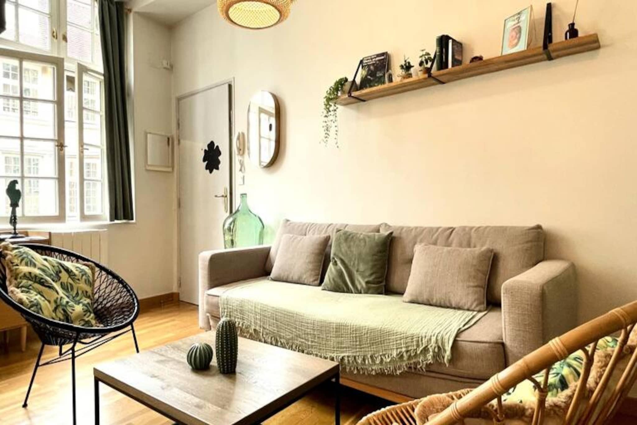 Denne charmerende lejlighed tilbyder et fredeligt tilflugtssted i hjertet af Rouens historiske centrum, ideel til to voksne. Det har en rummelig stue med sofa, et hyggeligt soveværelse med dobbeltseng (140x200 cm) og et stort indrettet påklædningsværelse. Lejligheden har også et brusebadeværelse med toilet, og det tilbyder væsentlige faciliteter såsom sengetøj og håndklæder, gratis Wi-Fi, et strygejern og strygebræt samt en vaskemaskine og tørremaskine. Bemærk venligst, at morgenmad ikke er inkluderet, og at ejendommen ikke er kæledyrsvenlig. Beliggende kun få skridt fra Place du Vieux Marché, tilbyder lejligheden en førsteklasses beliggenhed til at udforske Rouens historiske charme. Inden for gåafstand finder du ikoniske vartegn som Gros Horloge og Rouen-katedralen, begge kun 400 meter væk. Området er omgivet af travle gågader fyldt med fremragende restauranter, madbutikker og delikatesseforretninger, herunder et berømt bageri ved foden af ??lejligheden. Med nem adgang til offentlig transport og togstationen giver lejligheden bekvemmelighed for at udforske området. Lejligheden har et fuldt udstyret åbent køkken, så gæsterne kan tilberede deres egne måltider. Det moderne brusebadeværelse med toilet sikrer komfort under dit ophold. Derudover er lejligheden lys og rolig, ikke overset, hvilket gør den til det perfekte tilflugtssted efter en dag med sightseeing. For nemheds skyld er betalt underjordisk parkering tilgængelig på ejendommen, hvilket sikrer problemfri adgang til lejligheden.