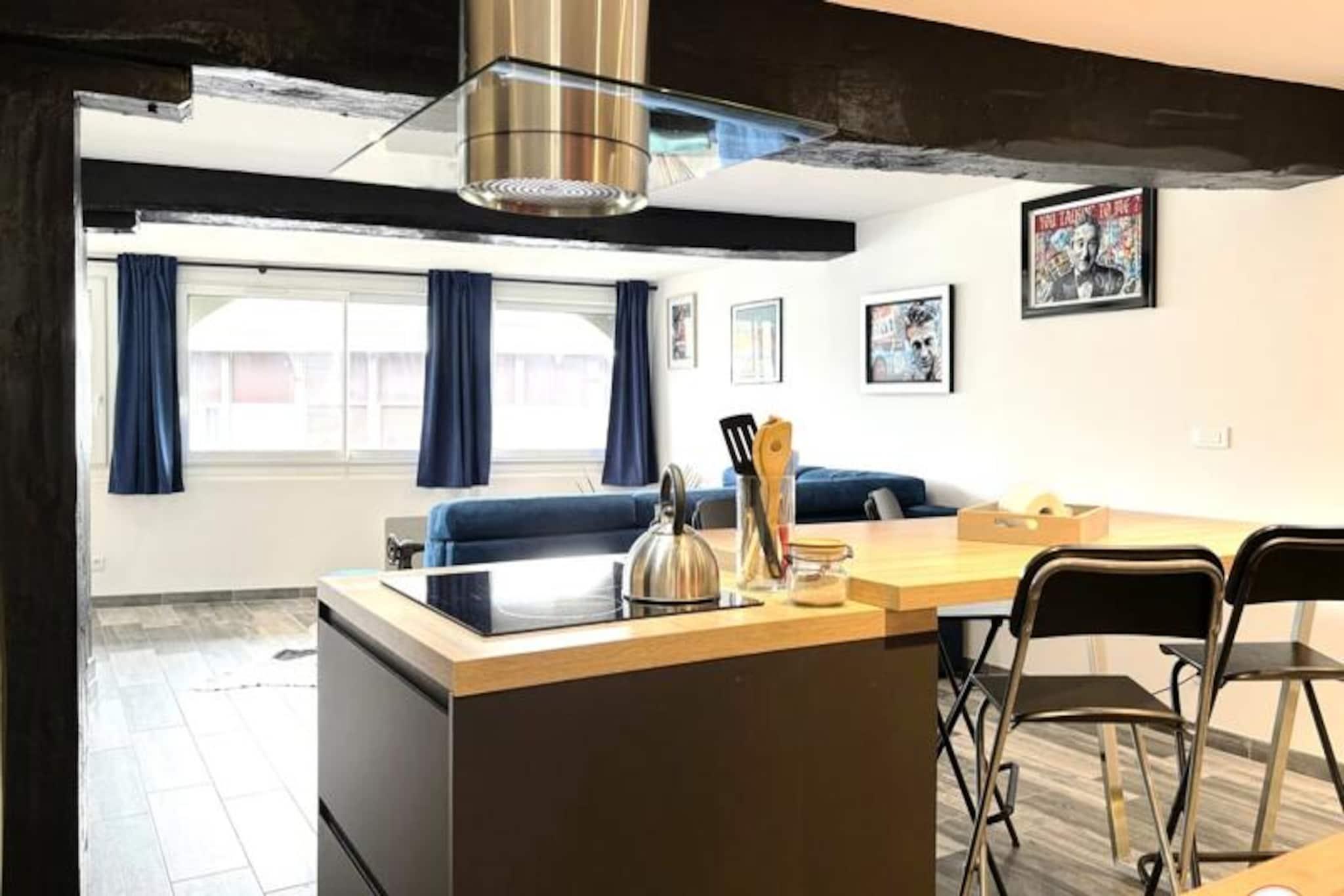 ¡Mi conserje en Normandía le presenta “Olympus”! Formación Está situado en pleno centro de Rouen y más precisamente en el corazón del barrio de antigüedades, cerca de la ciudad. A 10 minutos a pie de la estación SNCF, a 5 minutos de la famosa Place du Vieux Marché; y al pie de las mejores tiendas y restaurantes de Rouen. Completamente renovado y decorado. Decorado con buen gusto, este magnífico y luminoso apartamento contemporáneo le ofrecerá todo el confort que necesita para una estancia maravillosa en Normandía. ¡Todo fue hecho pensando para que te sientas como en casa! Para que su estadía tenga un buen comienzo, pueden reunirse alrededor de la isla para disfrutar de un momento amistoso y luego dirigirse a la sala de estar para jugar un salvaje juego de futbolín. Por último, los cinéfilos podrán disfrutar de un espacio de cine equipado con un proyector de vídeo que les permitirá ver y volver a ver sus películas favoritas. Ubicado en el 3er piso (sin ascensor), la capacidad máxima es de 4 personas. El apartamento se compone de la siguiente manera: - Una cocina americana amueblada y abierta al salón, totalmente equipada (nevera, horno, placa de inducción, lavavajillas, cafetera, encimera, mucho espacio de almacenamiento, utensilios de cocina, …); - Un gran salón con zona de estar equipada, un magnífico sofá que también sirve como cama (convertible en cama doble de 140x200 cm); - Una zona de juegos con, en particular, la actualización del juego. provisión de un futbolín real que le recordará su juventud; - Una sala de cine equipada con un proyector de vídeo; - Lado de noche una hermosa suite principal equipada con ropa de cama Queen size (160x200 cm), un televisor y un baño contiguo con ducha tipo "italiana"; La ubicación es idílica para aquellos que desean disfrutar del encanto y la vida de Rouen, sin dejar de ser tranquilos. Están actualizados a su disposición: ropa de cama y baño, WiFi gratuito, plancha y tabla de planchar. plancha, lavadora, lavavajillas, etc... Nota: El desayuno no está incluido en el alquiler. NB: El apartamento dispone de una plaza de aparcamiento subterráneo segura. SEAMOS RESPETUOSOS: Para respetar el barrio hay que limitar el ruido. entre las 10 p.m. y las 7 a. m. No se tolerarán eventos festivos. dentro del alojamiento. En caso de incumplimiento de la normativa interna, nos reservamos el derecho de cancelar el procedimiento. rescindir inmediatamente el contrato de arrendamiento y activar la garantía bancaria en caso de desbordamiento o daño. Le agradecemos su comprensión. Al venir a alojarte en nuestro apartamento, tendrás acceso a nuestros apartamentos. todas las diferentes partes del alojamiento. Estaremos encantados de acompañar a nuestros viajeros durante su estancia para que pasen un tiempo maravilloso en nuestra hermosa Normandía. El alojamiento está situado en el famoso barrio de antigüedades (Saint-Maclou), en el hipercentro de Rouen, a pocos pasos de los principales lugares turísticos de la ciudad (el gran reloj se encuentra a menos de 5 minutos a pie). . También estás cerca de todas las tiendas y centros culturales. Tu anfitrión estará a tu disposición. a su disposición durante su estancia para que pueda pasar un tiempo maravilloso en nuestra hermosa Normandía. Llegada: La recepción se realizará físicamente entre las 16:00 horas. y 8 p.m. No dude en comunicarnos su hora de llegada lo antes posible para poder organizar mejor la entrega de llaves. Salida: Entre las 8 y las 11 horas. Hacemos todo lo posible para brindarle una bienvenida de calidad. Le agradecemos que sea lo más preciso posible con sus horarios de llegada y que notifique a su anfitrión en caso de retraso. Cualquier llegada después de las 20:30 horas. Se cobrarán 20 euros, con coste adicional. Paga a través de la plataforma de alquiler, en efectivo a tu llegada, o debita el pago. de su depósito. En caso de llegada después de las 22:30 horas, ya no será posible alojarle, no se le reembolsará su noche en su caso. Tenga en cuenta que siempre haremos todo lo posible para encontrar una solución, háganoslo saber lo más rápido posible en caso de que surja algún imprevisto. Un documento de identidad vigente se le podrá solicitar al ingresar al local. Se realizará un inventario y fotoinventario de los equipos. antes de tu llegada. Si en el alojamiento se alojan viajeros adicionales a los indicados en su reserva, se cobrará un suplemento de 100EURO/persona por noche. en su depósito. ¡Le deseamos de antemano una maravillosa estancia con nosotros! 😊 Depósito (en euros) - 2500