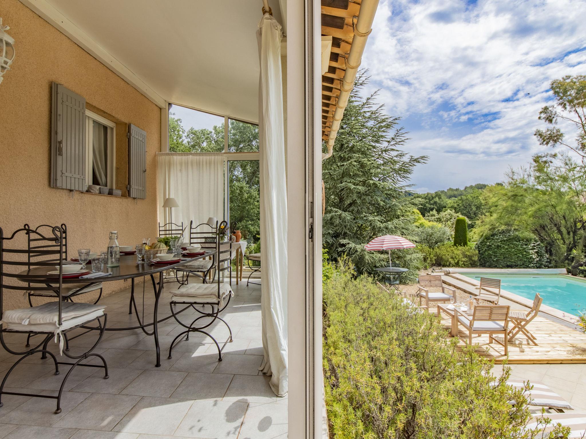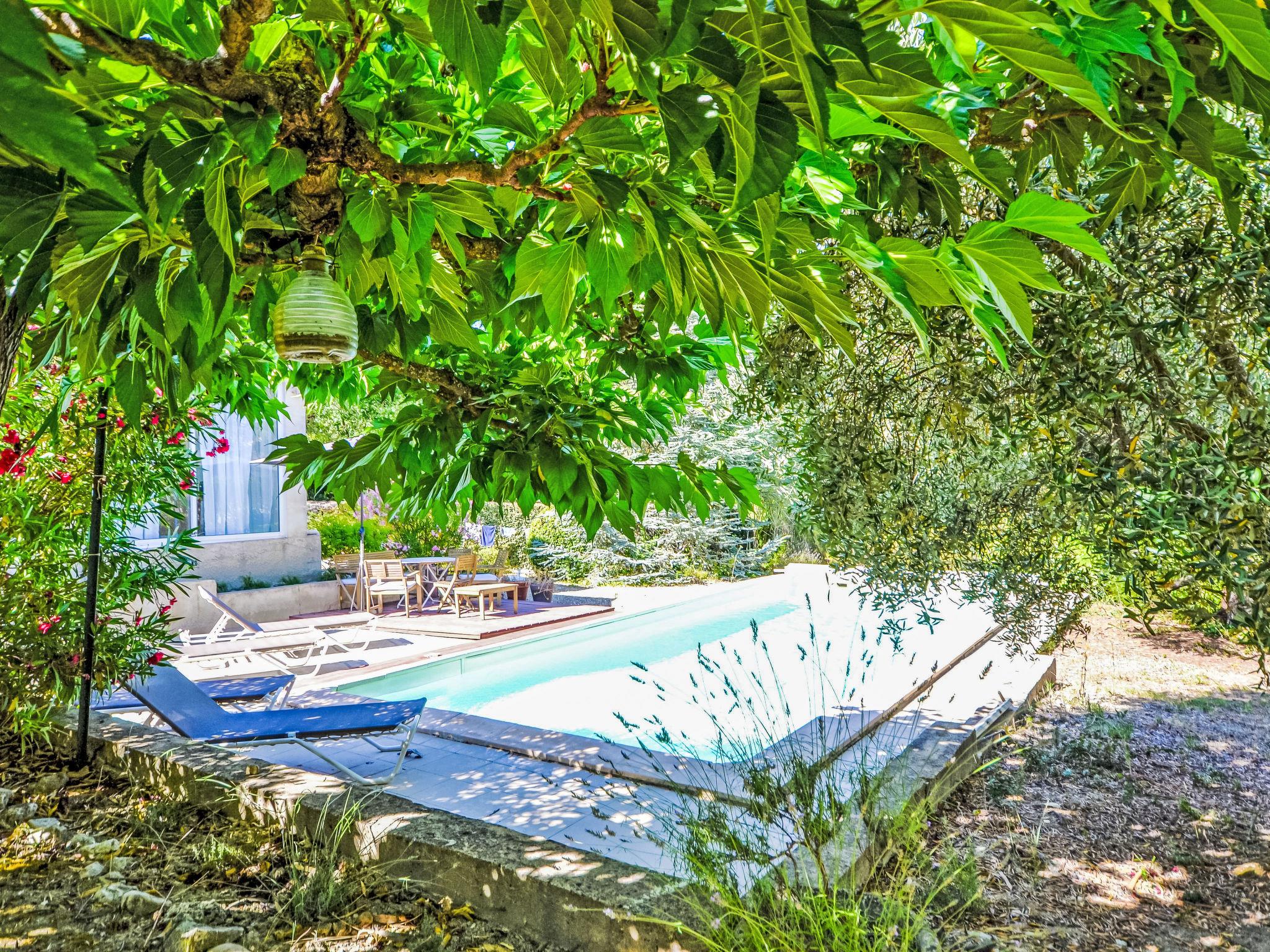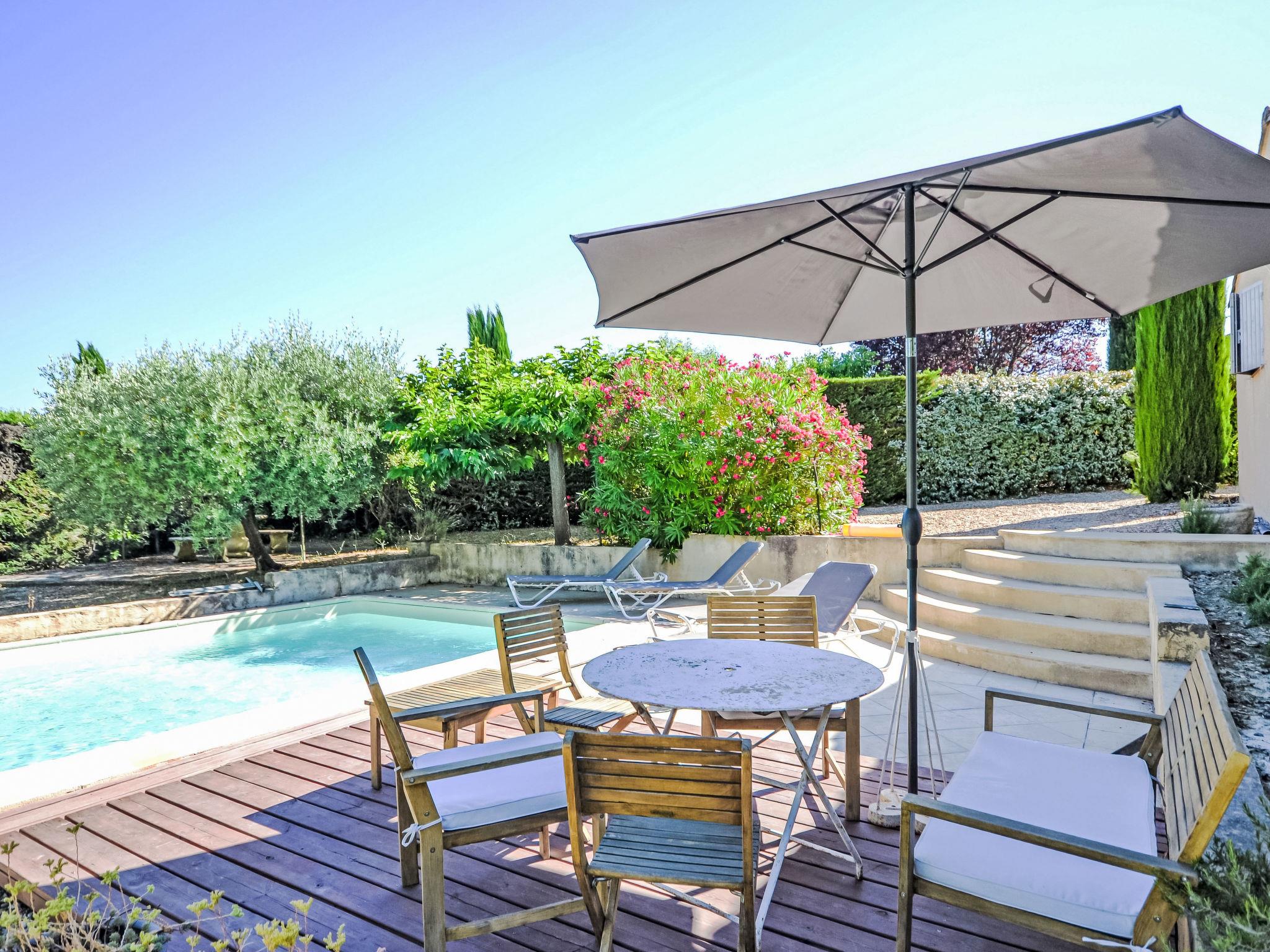 Gargas 4 km from Roussillon: Single-family house "Les Iris", built in 1989, renovated in 2014. Outside the resort. Private: property 1'300 m2 (fenced), swimming pool secured (10 x 4 m, depth 80 - 150 cm, seasonal availability: 01.May. - 30.Sep.) with internal staircase. Parking on the premises. Carport. Shop 2 km, grocery 2 km, restaurant 2 km, bus stop "Avenue de Lançon" 3 km. Please note: car recommended. Garage only only for bicycles and motorbikes.