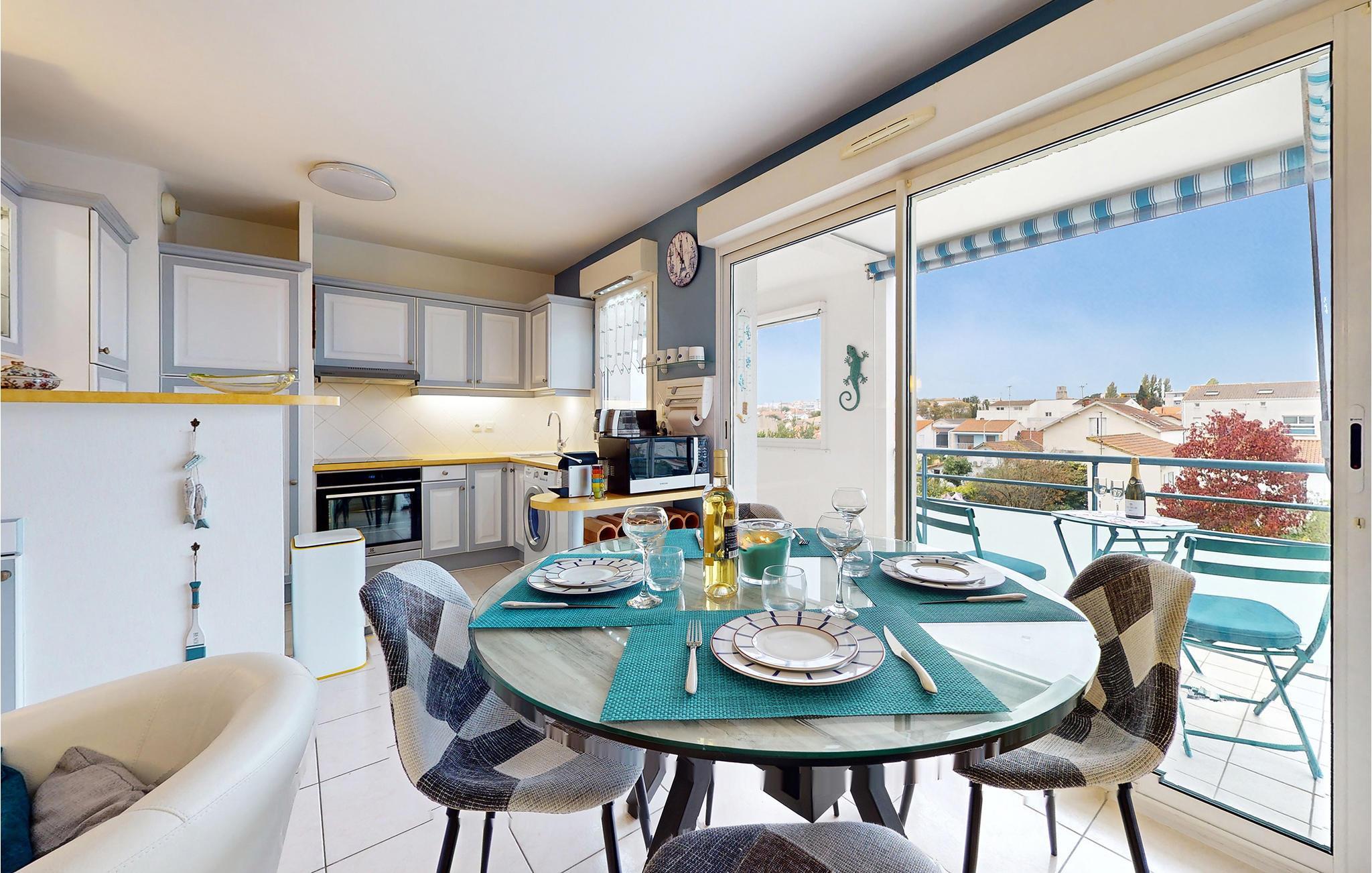 Her kommer I uden tvivl ned i gear, for lejligheden ligger tæt på den store Grande Conche-strand i Royan. Byen er livlig hele året rundt, og en gåtur gennem gaderne er selvskrevet. Besøg det nærliggende marked, den zoologiske park Planet Exotica Park eller den kendte Zoo de La Palmyre. Royan bugner af vandsport, smuk natur, kunst og historie samt lækre fisk og skaldyr. I kan derfor besøge østersfarme og smage på de berømte Marennes-Oléron-østers. Vi anbefaler desuden udflugtsmål som Fort Boyard, Ile d'Oléron, Ile d'Aix og den regionale naturpark Médoc, som I kommer til med færge direkte fra havnen i Royan. Sidst, men ikke mindst venter Cozes, en autentisk og venlig landsby, der ligger mellem solsikkemarker og skove. Takket være sin fredede natur i hjertet af Saintonge-regionen kan landsbyen kalde sig en "Grøn Station".