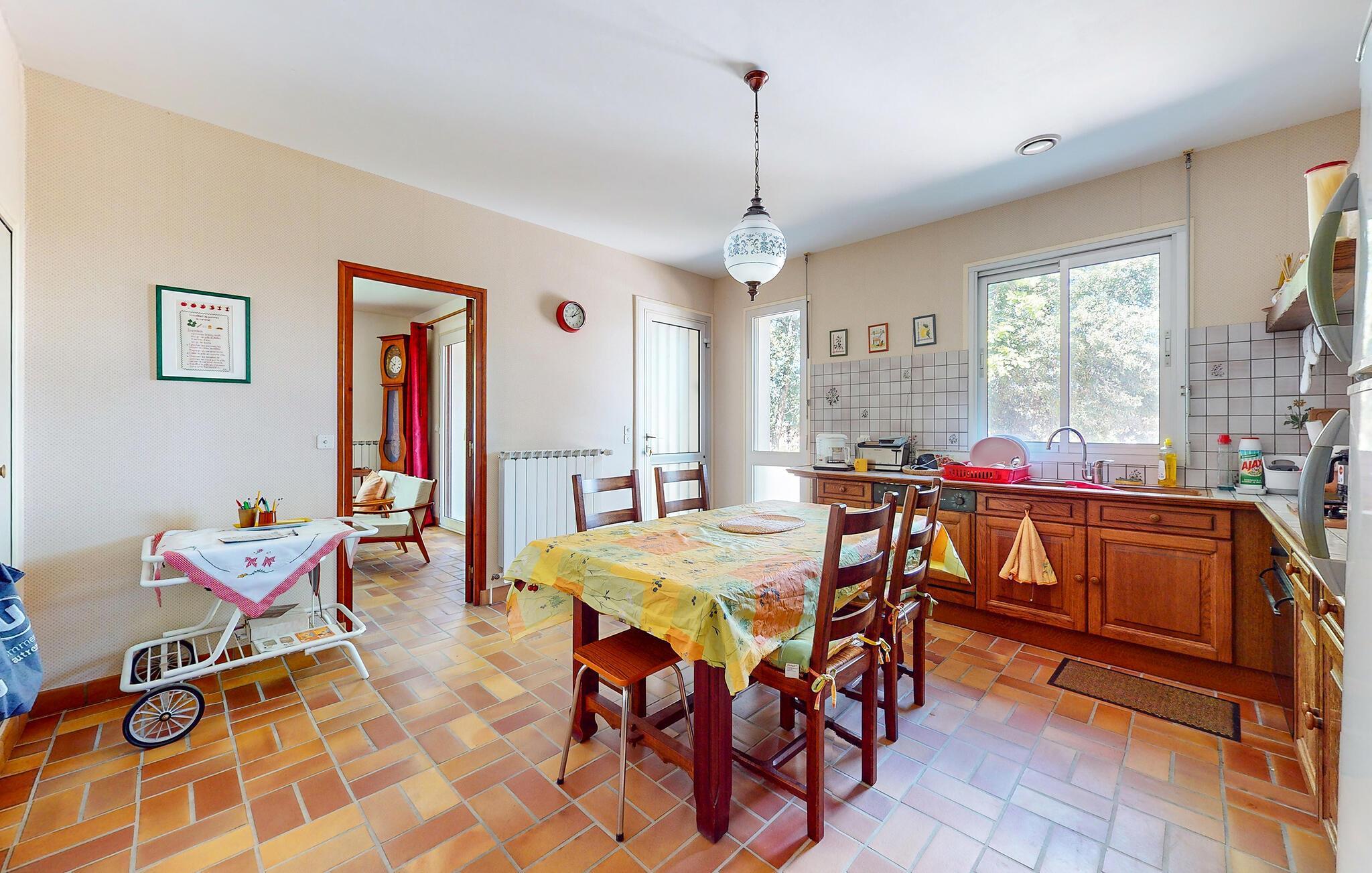 Tag familien under armen og rejs til Royan, hvor der er lagt op til en skøn og unik boligoplevelse i dette fine hus. Huset byder på god plads og en indretning, der har et klart autentisk strejf over sig med antikke træmøbler, pejs og festlige tapeter og gardiner. Lad amatørkokkene trylle i køkkenet og nyd måltiderne i udestuen, mens I lægger planer for de kommende dage.
