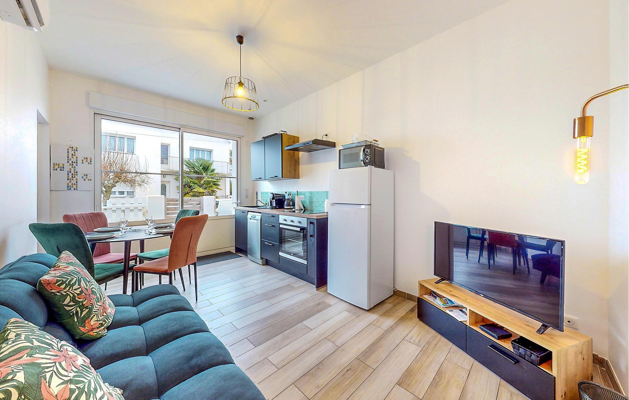 Kun få minutter fra den lange sandstrand i Royan og tæt på gode indkøbsmuligheder venter dette hyggeligt indrettede feriehus på jer. Tilbered regionale specialiteter i det veludstyrede køkken, og saml familien ved det hyggelige spisebord. Her kan I planlægge jeres næste udflugter, arrangere sjove spilleaftener eller slappe af med en god bog på den komfortable sofa.