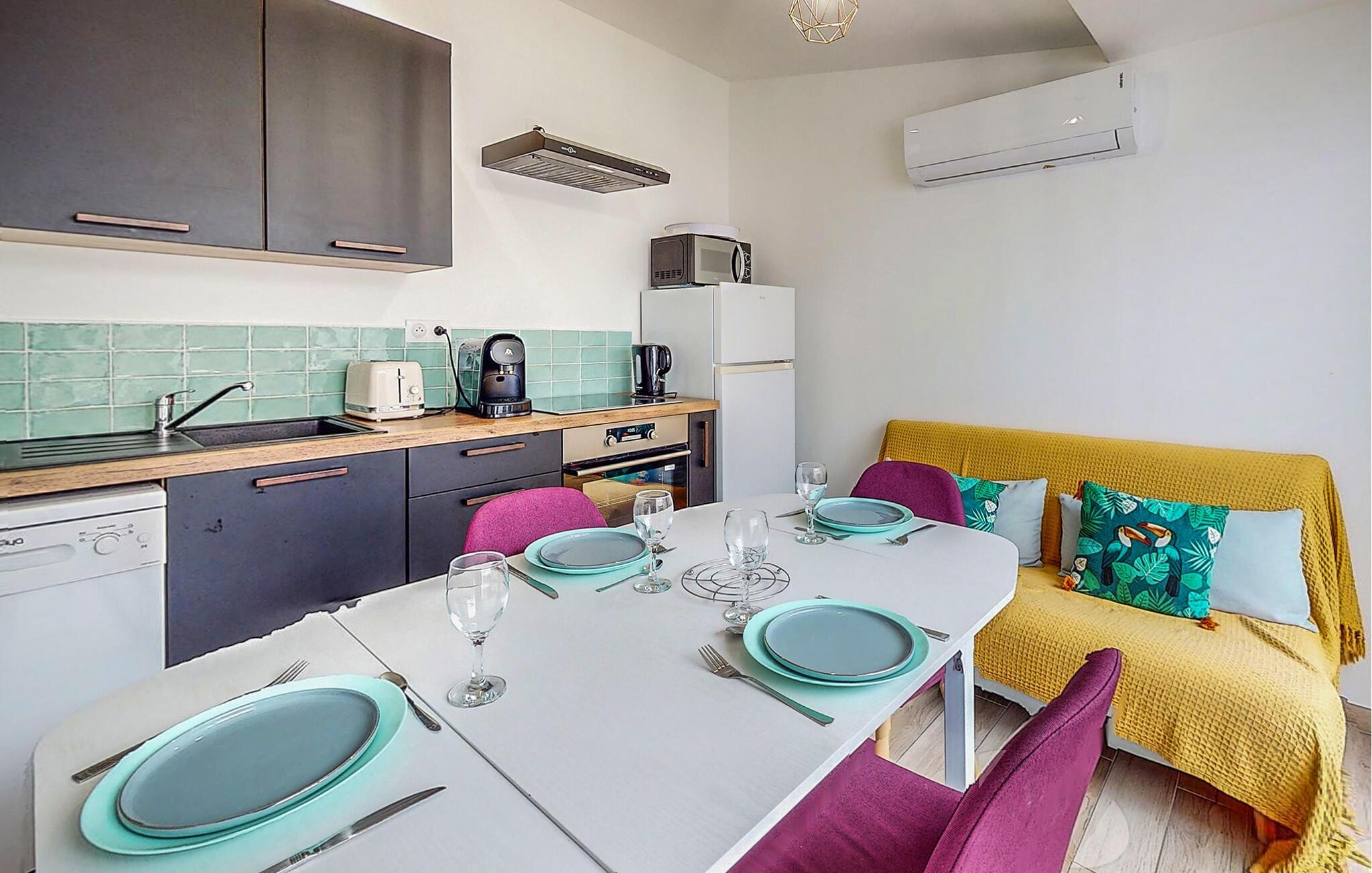 Kun få minutter fra den lange sandstrand i Royan og tæt på gode indkøbsmuligheder venter dette lyse og moderne feriehus på jer. Tilbered jeres yndlingsretter i det åbne køkken, og planlæg jeres næste udflugter ved det indbydende spisebord. Arranger sjove spilleaftener, eller slap af med en god bog på den komfortable sofa.