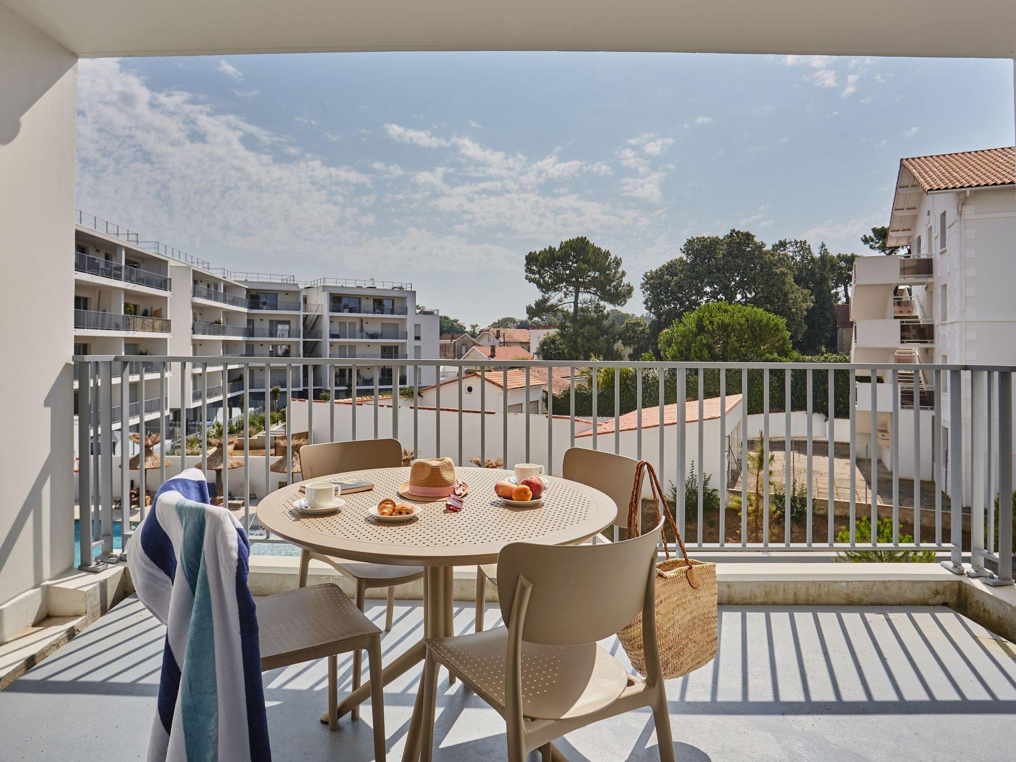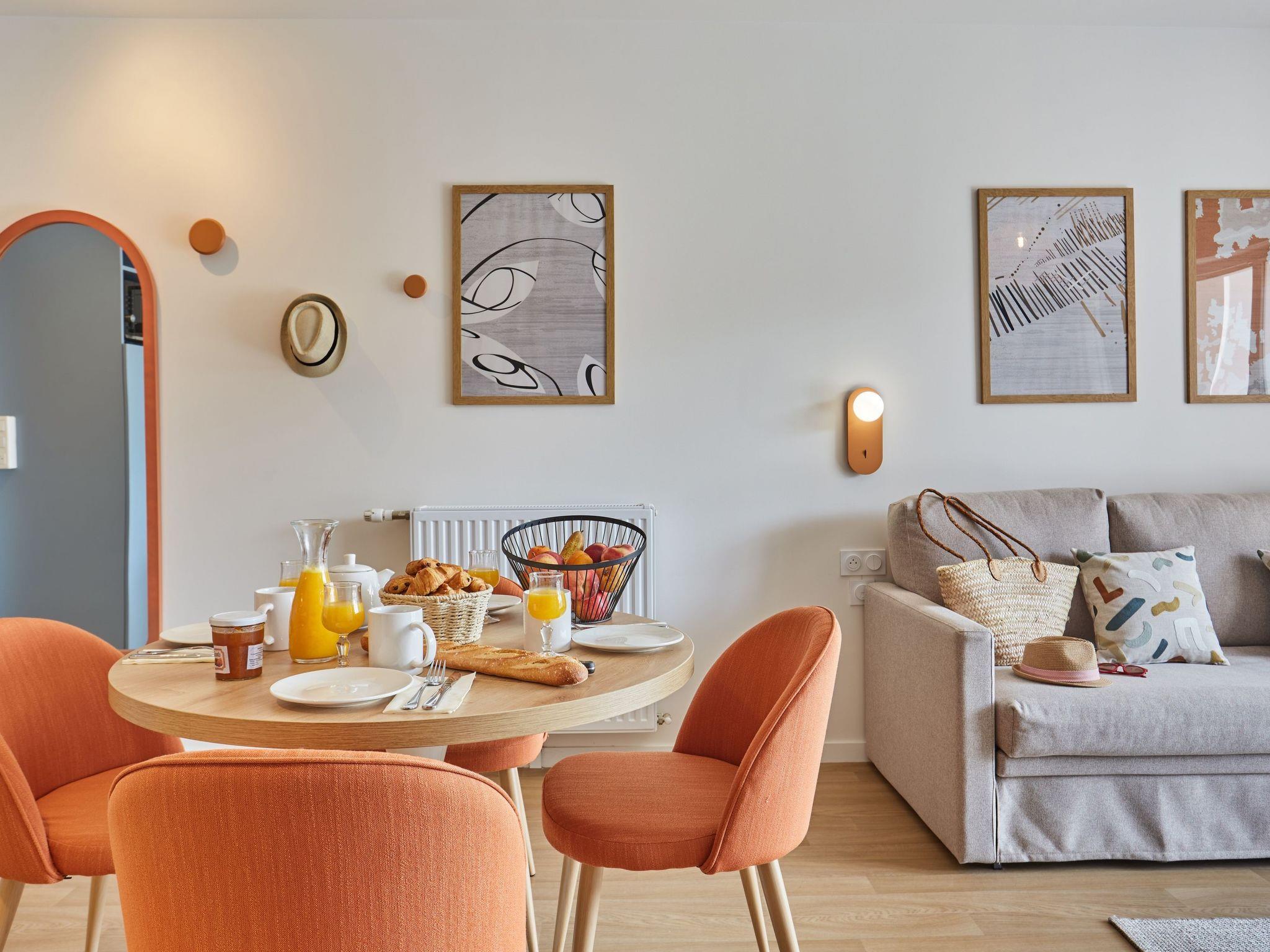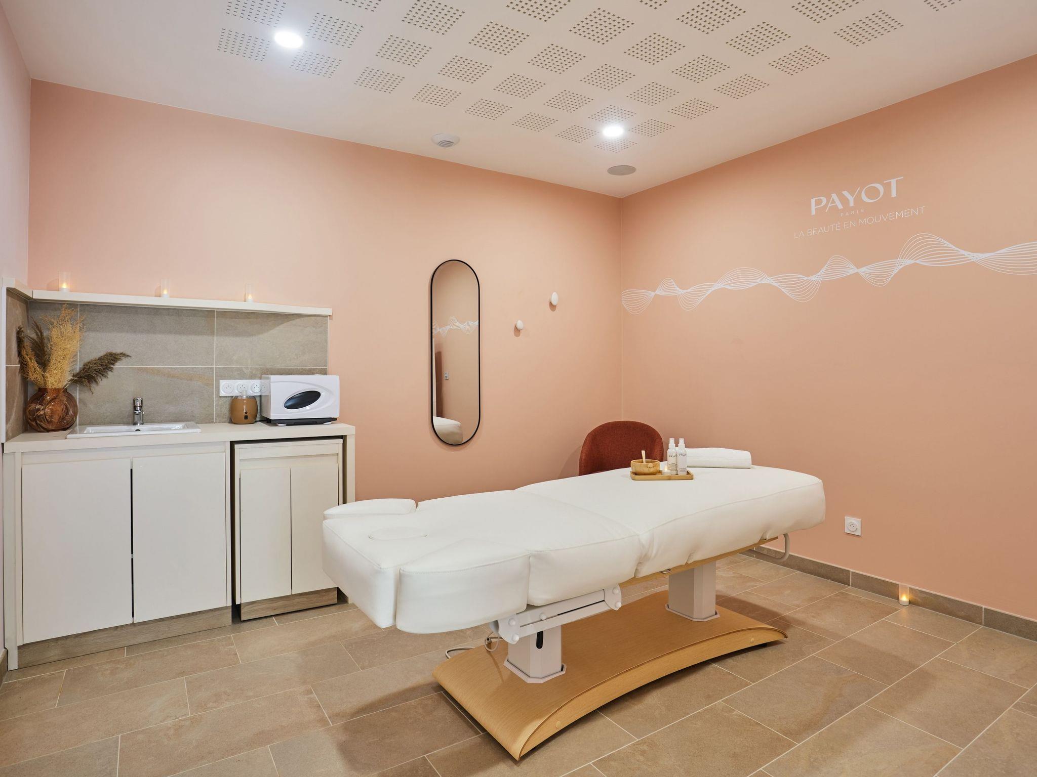 Resort " L'orée du Parc", built in 2024. In the resort 700 m from the centre of Royan, 150 m from the sea, 150 m from the beach. For shared use: swimming pool heated (10 x 7 m, seasonal availability: 01.May. - 30.Sep.). Children's pool. In the complex: reception, sauna, fitness room, steam room (extra). Washing machine, tumble dryer (for shared use, extra). Breakfast possible (extra). Shop 500 m, sandy beach 150 m. Nearby attractions: Le Phare de Cordouan, Les villages de La Palmyre, Saint Palais, Le Pôle-Nature de Vitrezayet, Saintes, La Rochelle Rochefort, Les îles de Ré, d’Oléron, d’Aixet Madame, Fort Boyard et Fort Lupin. Please note: the photograph shows a typical example. The holiday properties may differ in living space, floorplan, equipment and furnishing.