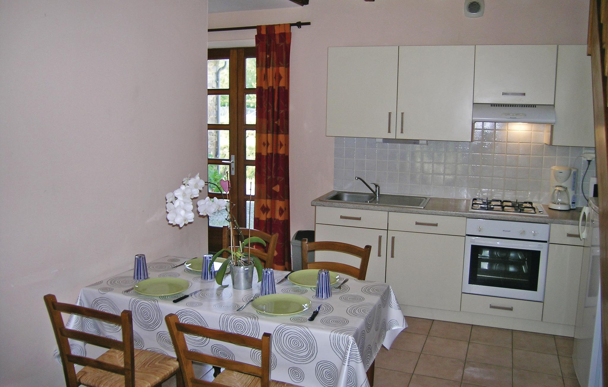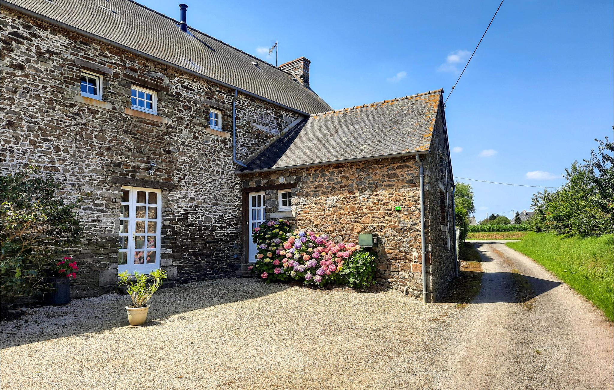 Denne ferielejlighed fordeler sig på to etager og ligger i et dejligt hus af sten, som I deler med ejer. Det er godt møbleret, komfortabelt og ligger i rolige omgivelser ude på landet. På den 2.500m² store og velplejede grund, der deles med ejer, er der en lille legeplads. I har egen privat indgang, parkeringsplads og adgang til jeres egen terrasse hvor der står havemøbler og grill. Spadser langs den gamle vandgrav i Dol-de-Bretagne, hvor I også kan nyde synet af Saint-Samon katedralen, en perle fra den gotiske periode, gamle bindingsværkshuse og gamle bymure. Fra det nærliggende Mont-Dol er der en uforglemmelig udsigt over hele Mont-Saint-Michel bugten. 26 km væk ligger Saint-Malo, hvor de vilde kosarer tidligere huserede, med herlige strande og et fæstningsanlæg. Kun en time væk i bil, kan I se et usædvanligt og betagende syn: Mont-Saint-Michel.