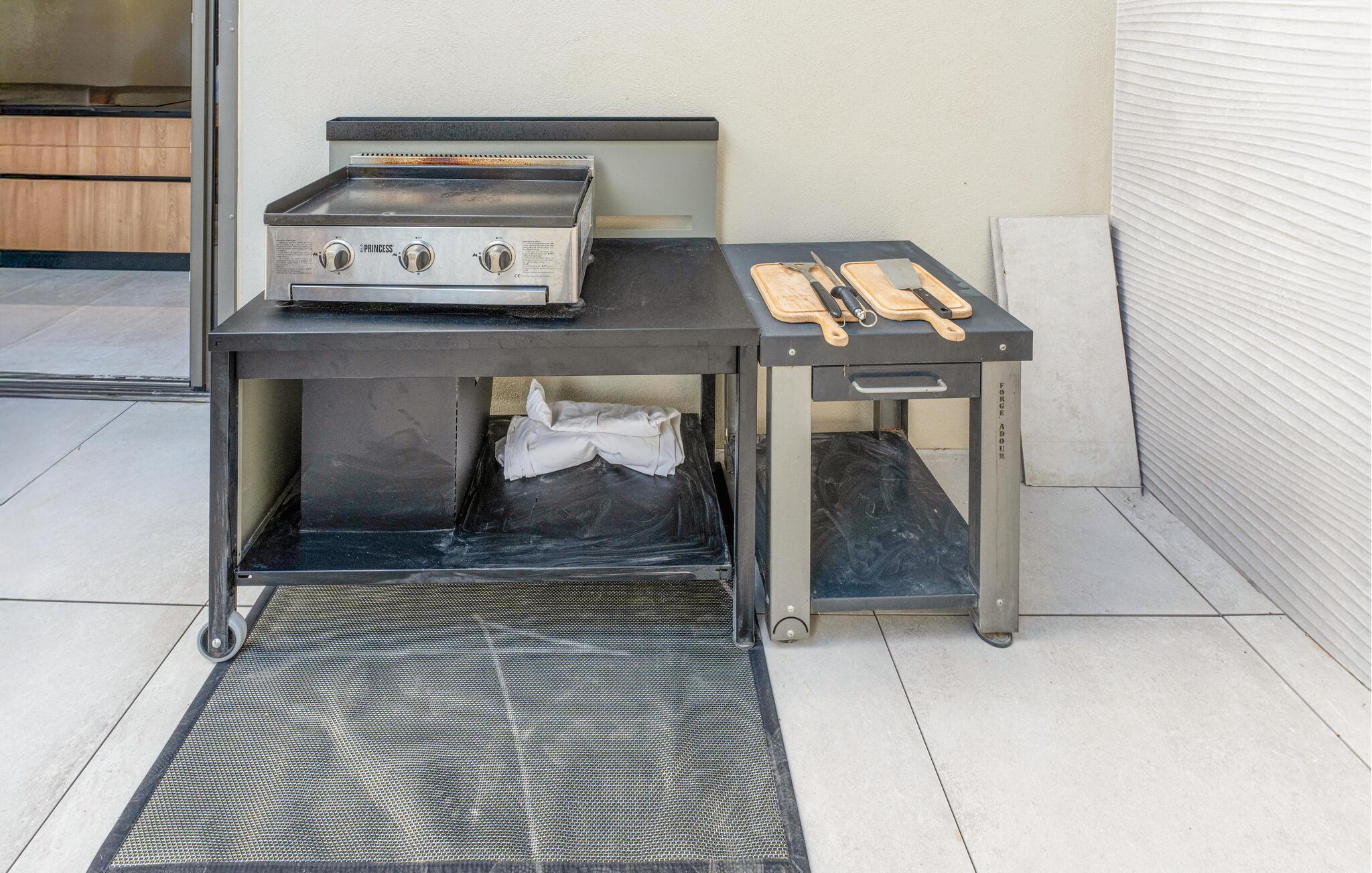 Brug den rummelige terrasse med lille udendørs pool til afslappende stunder. Nyd jeres morgenmad med udsigt over havet eller slap af på liggestolene under middelhavssolen. Det overdækkede loungehjørne byder på et dejligt sted at nyde de varme sommeraftener med et glas vin. Et moderne udekøkken med grillplads er tilgængelig for kulinariske højdepunkter.