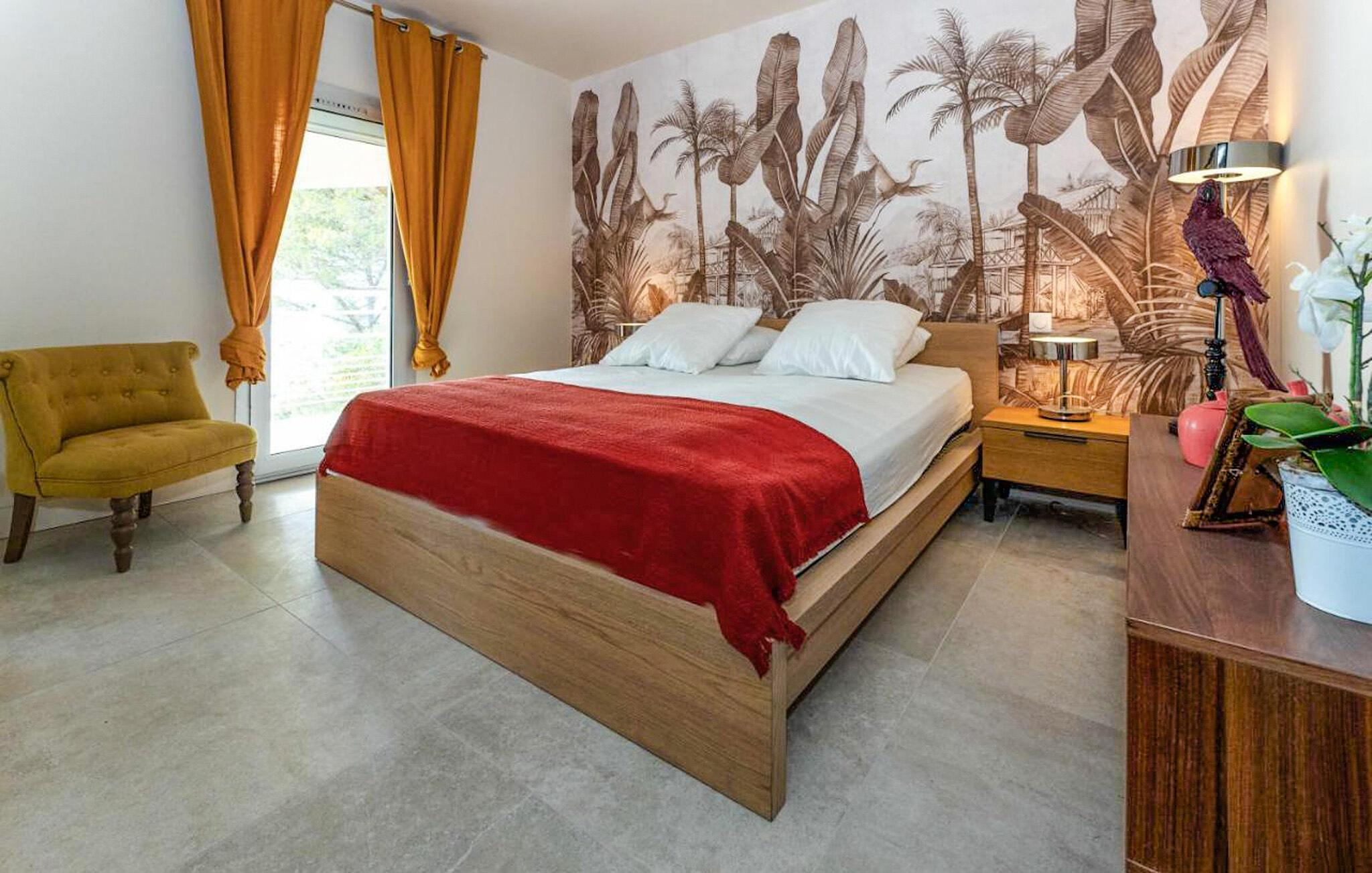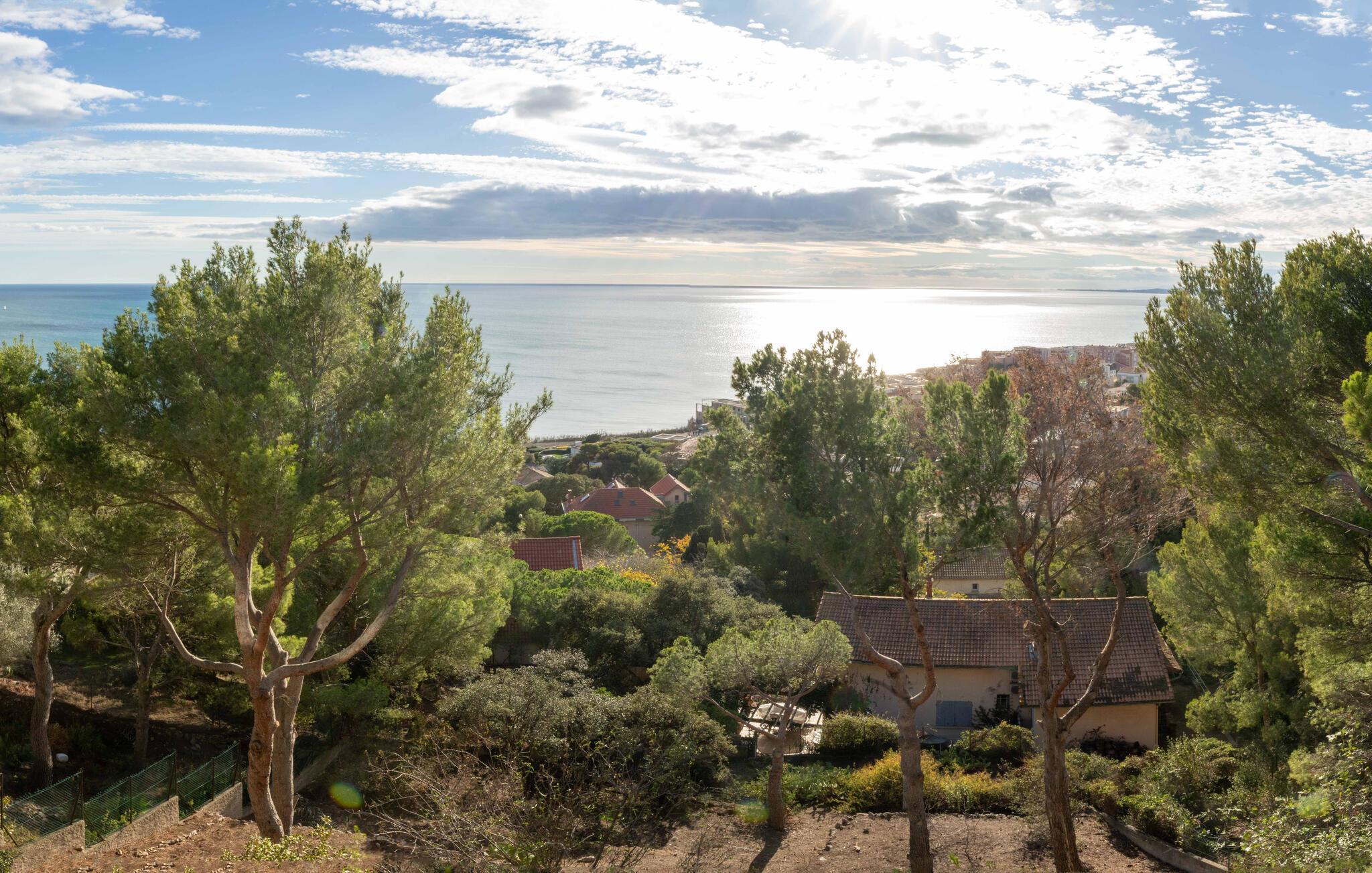 Oplev en uforglemmelig ferie i denne eksklusive designvilla i Sète, som er noget særligt med moderne stil, komfort og en spektakulær udsigt over Middelhavet. Den lyse opholdsstue er noget særligt med sit stilfulde interiør. Den smagfulde indretning i stærke farver, kombineret med exceptionelle designermøbler, skaber en indbydende atmosfære. Lad jeres blik vandre over havet gennem de store panoramavinduer eller find jer godt til rette i sofaerne. Det åbne, stilfulde køkken lægger op til sammen at fremtrylle kulinariske lækre retter, mens den tilstødende spiseplads byder på elegante rammer om selskabelige aftener.