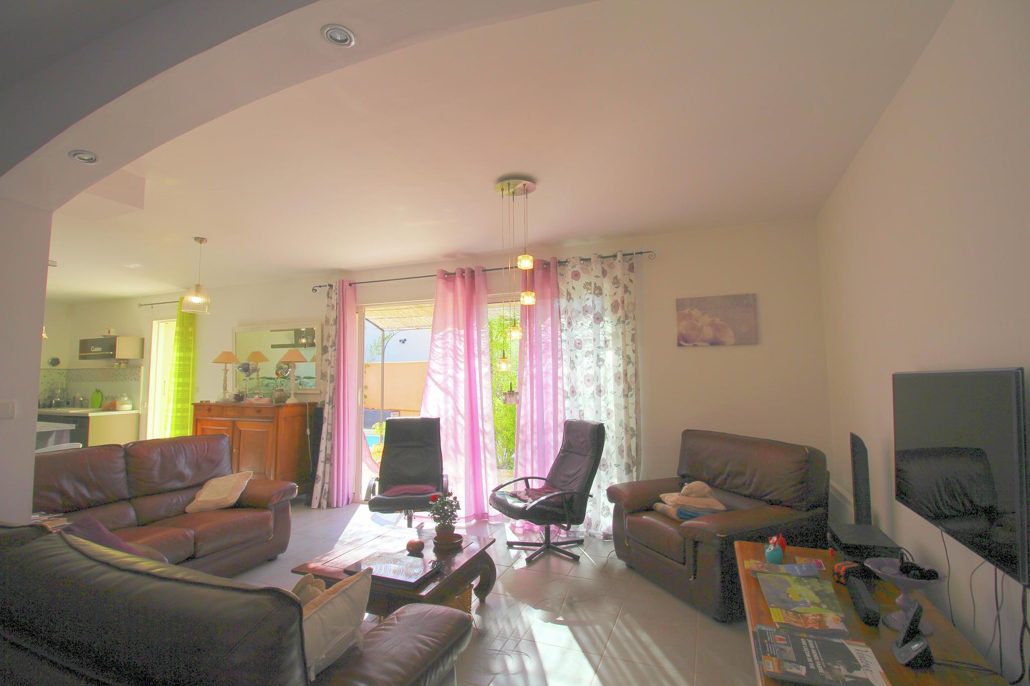 Stueetage: (entre(toilet), åbent køkken(bar, brødrister, komfur(Komfur med fire kogeplader, gas, induktion), kaffemaskine(kaffepude), ovn, mikrobølgeovn, opvaskemaskine ), stue / spisestue(Fjernsyn(fladskærm, parabol), spisebord, sofahjørne, DVD-afspiller, CD-afspiller, stereoanlæg, klimaanlæg), pulterkammer(køle-fryseskab, tørretumbler, vaskemaskine)) På 1. etage: (soveværelse(dobbeltseng(160 x 200 cm), Fjernsyn(fladskærm, parabol), klimaanlæg), soveværelse(dobbeltseng(140 x 200 cm)), soveværelse(dobbeltseng(160 x 200 cm)), badeværelse(badekar, bruser, 2x håndvask), toilet) klimaanlæg, terrasse(privat, overdækket), terrasse(privat, overdækket), have(privat, indhegnet, anlagt have, oplyst, > 1000 m2), havemøbler, solstole, grill(gas), parkering, Parasol, swimmingpool(privat, indhegnet, 8 x 3 m.)