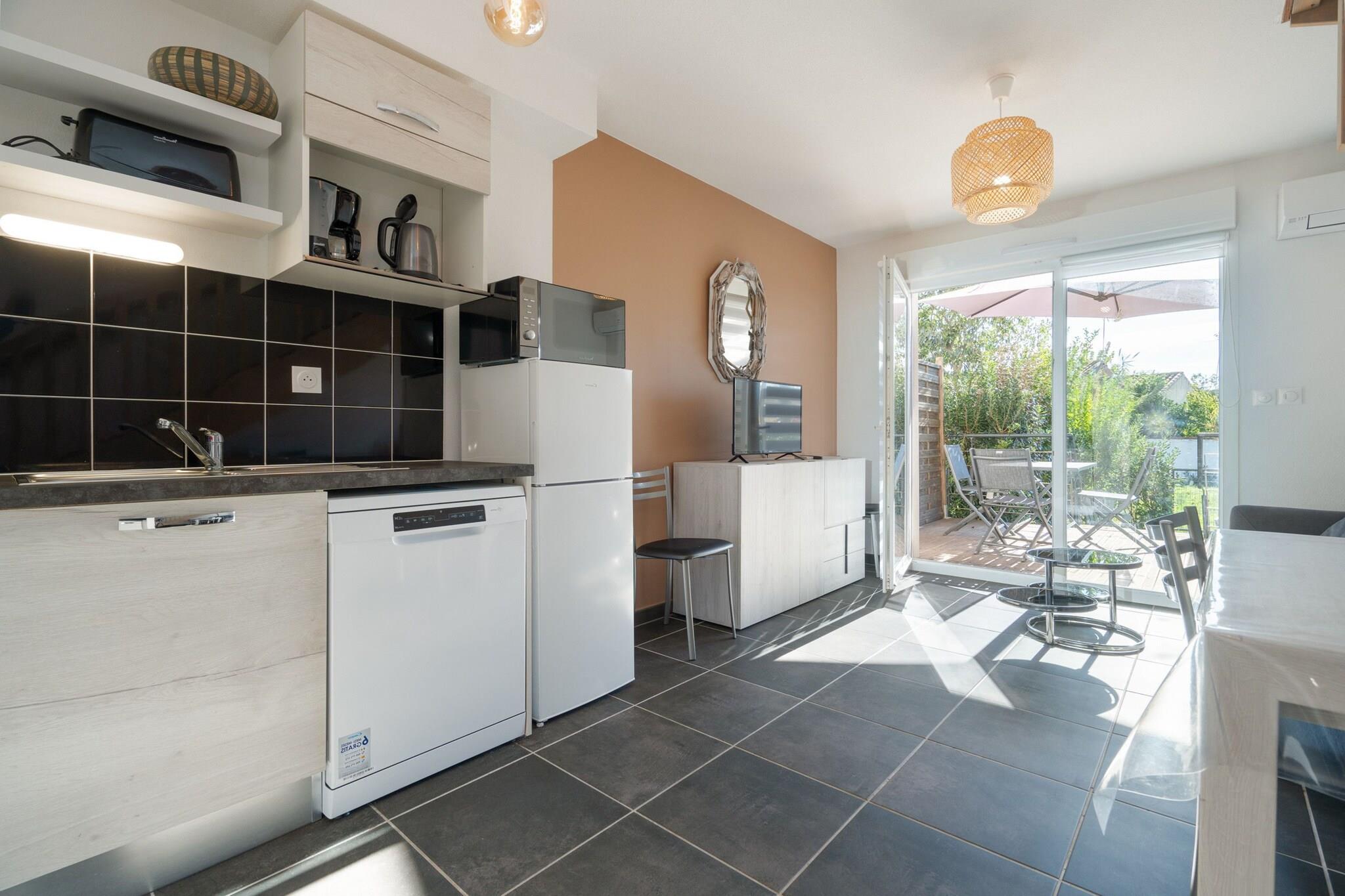 Denne hyggelige og lyse villa på 55 m² i Sérignan tilbyder en afslappende ferie ved havet for op til 6 gæster. Med 2 soveværelser og en indbydende indretning er den ideel til familier eller små grupper. Beliggende kun 450 meter fra sandstranden, 1 km fra en restaurant og 2 km fra et supermarked, kombinerer det bekvemmelighed med kystcharme i en fredelig, familievenlig zone. Villaen har en privat indhegnet have med udendørsmøbler og en grill, perfekt til udendørs spisning og afslapning. Gæsterne nyder moderne bekvemmeligheder som aircondition, elvarme, tv og adgang til en fælles opvarmet swimmingpool. Friluftsparkering i bygningen gør dit ophold lettere. Indvendigt er det elektriske køkken i åbent plan fuldt udstyret med køleskab, mikroovn, opvaskemaskine, kaffemaskine, brødrister, kedel og alle nødvendige tallerkener og redskaber. Uanset om du forbereder en strandpicnic eller en afslappet middag, tilbyder denne villa alt det nødvendige for en behagelig og behagelig ferie.