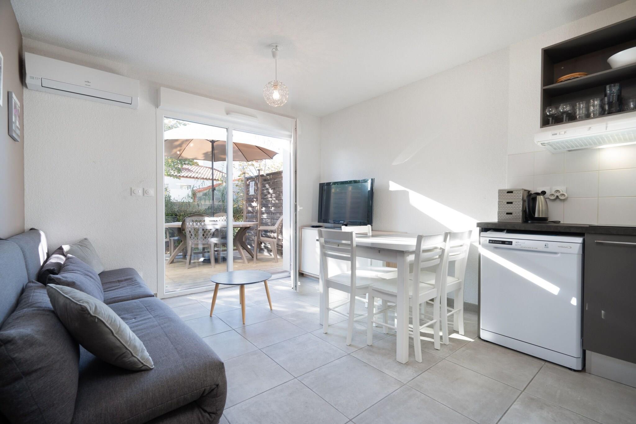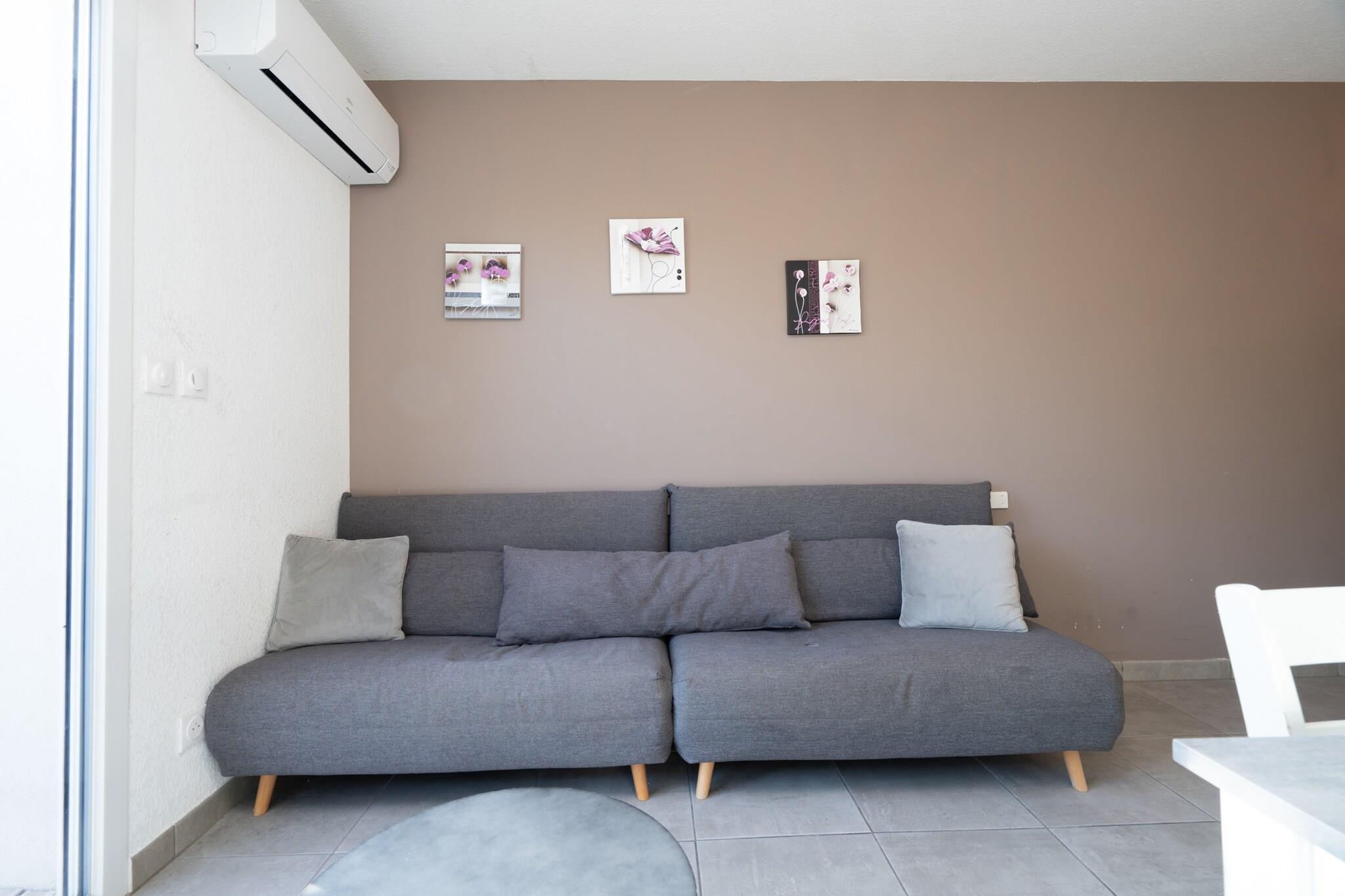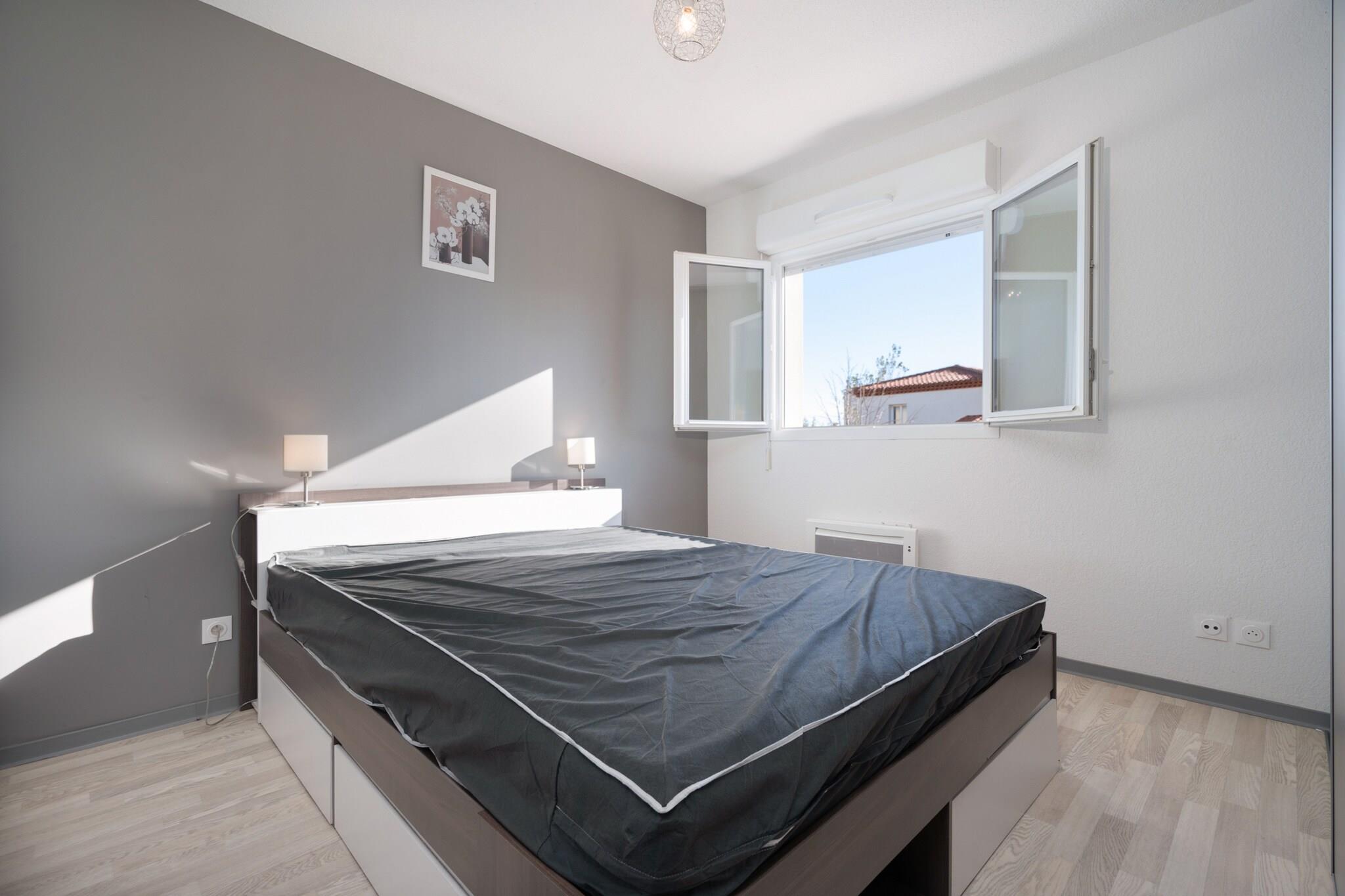 Denne hyggelige og lyse villa på 45 m² i Sérignan tilbyder et fredeligt tilflugtssted kun 450 meter fra sandstranden. Med 1 soveværelse og plads til op til 4 gæster, er det perfekt til par eller små familier, der søger et afslappende ophold nær havet. Beliggende i et roligt, familievenligt område, er det også tæt på restauranter og supermarkeder for ekstra bekvemmelighed. Villaen har en privat have, terrasse og udendørsmøbler - ideel til at nyde solrige eftermiddage eller aftenmåltider. Gæsterne drager fordel af elvarme, aircondition og ventilator samt adgang til en fælles opvarmet swimmingpool. Der tilbydes underholdning med tv, og der er udendørs parkering på stedet. Indvendigt er det elektriske køkken i åbent plan fuldt udstyret med køleskab, mikroovn, opvaskemaskine, kaffemaskine, brødrister, kedel og alle nødvendige redskaber. Uanset om du forbereder en strandpicnic eller en hyggelig middag, tilbyder denne villa alt det nødvendige for en behagelig og ubekymret ferie.