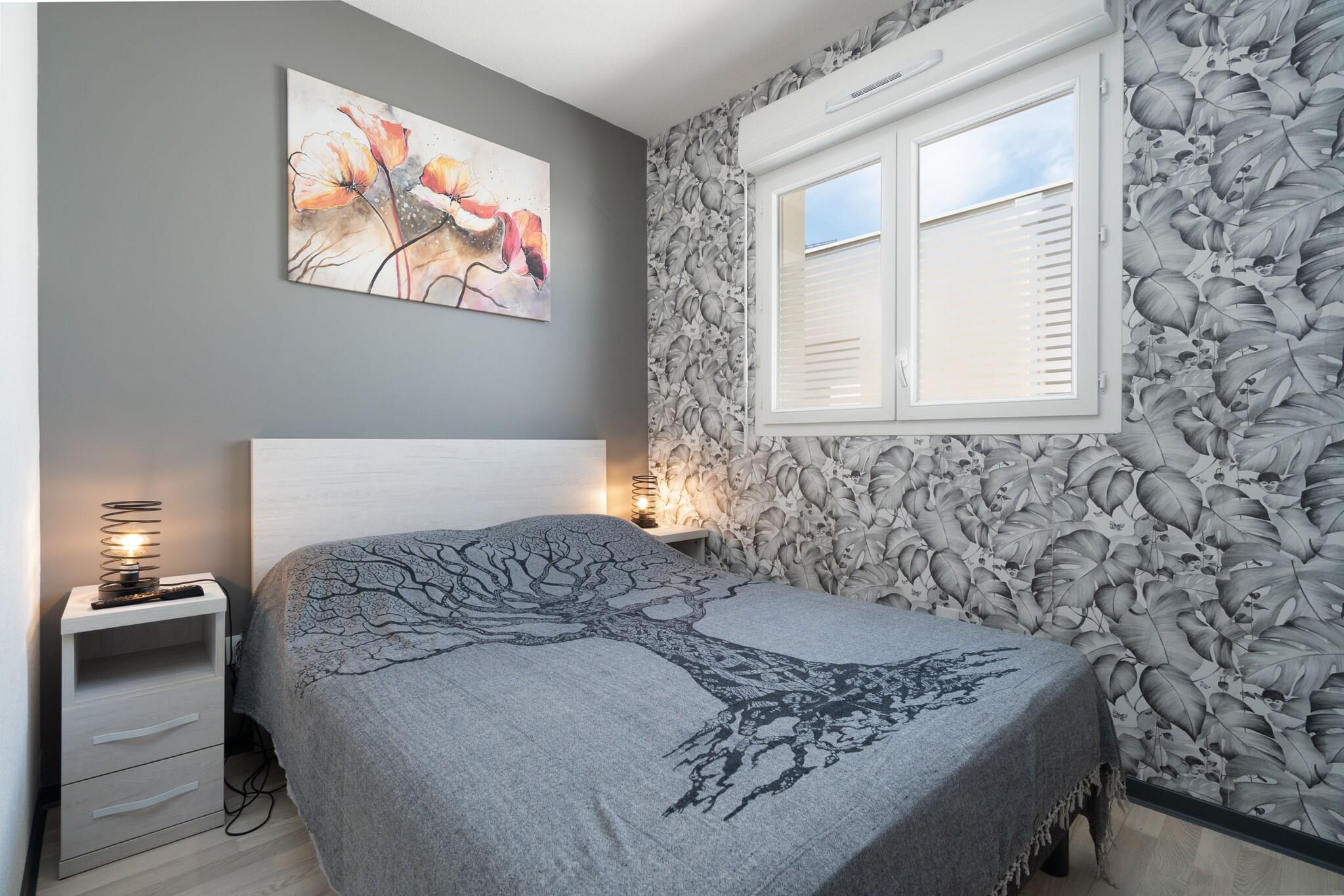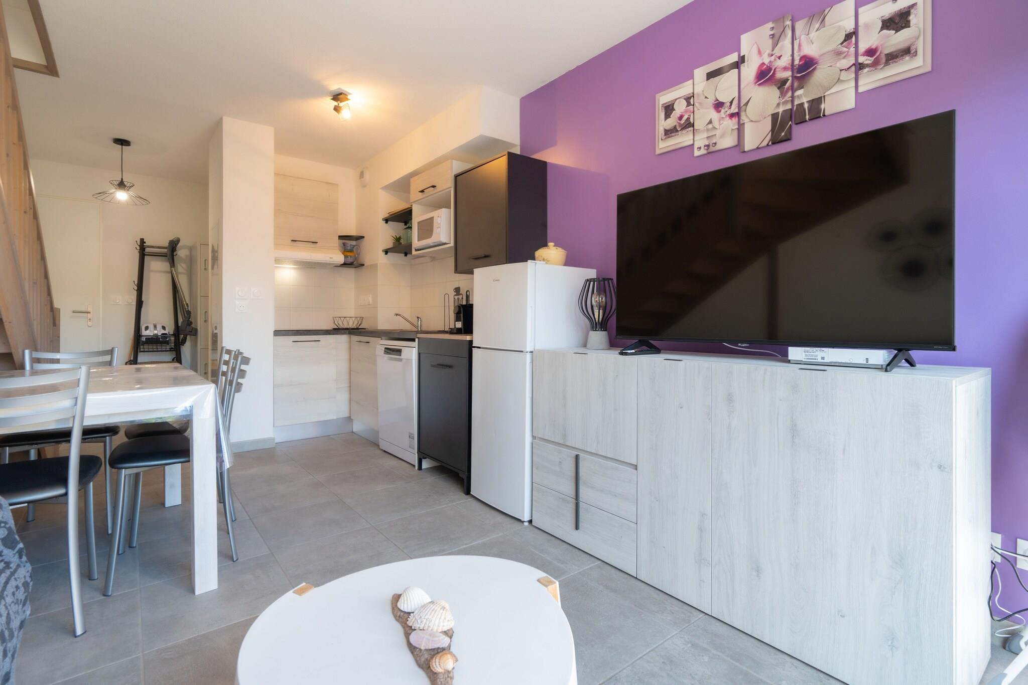 Denne lyse og indbydende villa på 55 m² i Sérignan tilbyder et afslappende tilflugtssted for op til 6 gæster, med 2 soveværelser og en indbydende atmosfære, der er ideel for familier. Kun 450 meter fra sandstranden og 1 km fra både et supermarked og en restaurant, kombinerer det charme ved havet med dagligdags bekvemmelighed. Villaen har en privat indhegnet have, en terrasse med havemøbler og en grill, perfekt til at nyde måltider udendørs eller slappe af i solen. Gæsterne drager fordel af aircondition, elvarme, Wi-Fi og adgang til en fælles opvarmet swimmingpool. Udendørs parkering og et tv tilføjer komforten. Indvendigt er det elektriske køkken i åbent plan fuldt udstyret med køleskab, mikroovn, opvaskemaskine, kaffemaskine, brødrister og alle nødvendige tallerkener og redskaber, hvilket sikrer et glat og behageligt ophold for hver gæst.