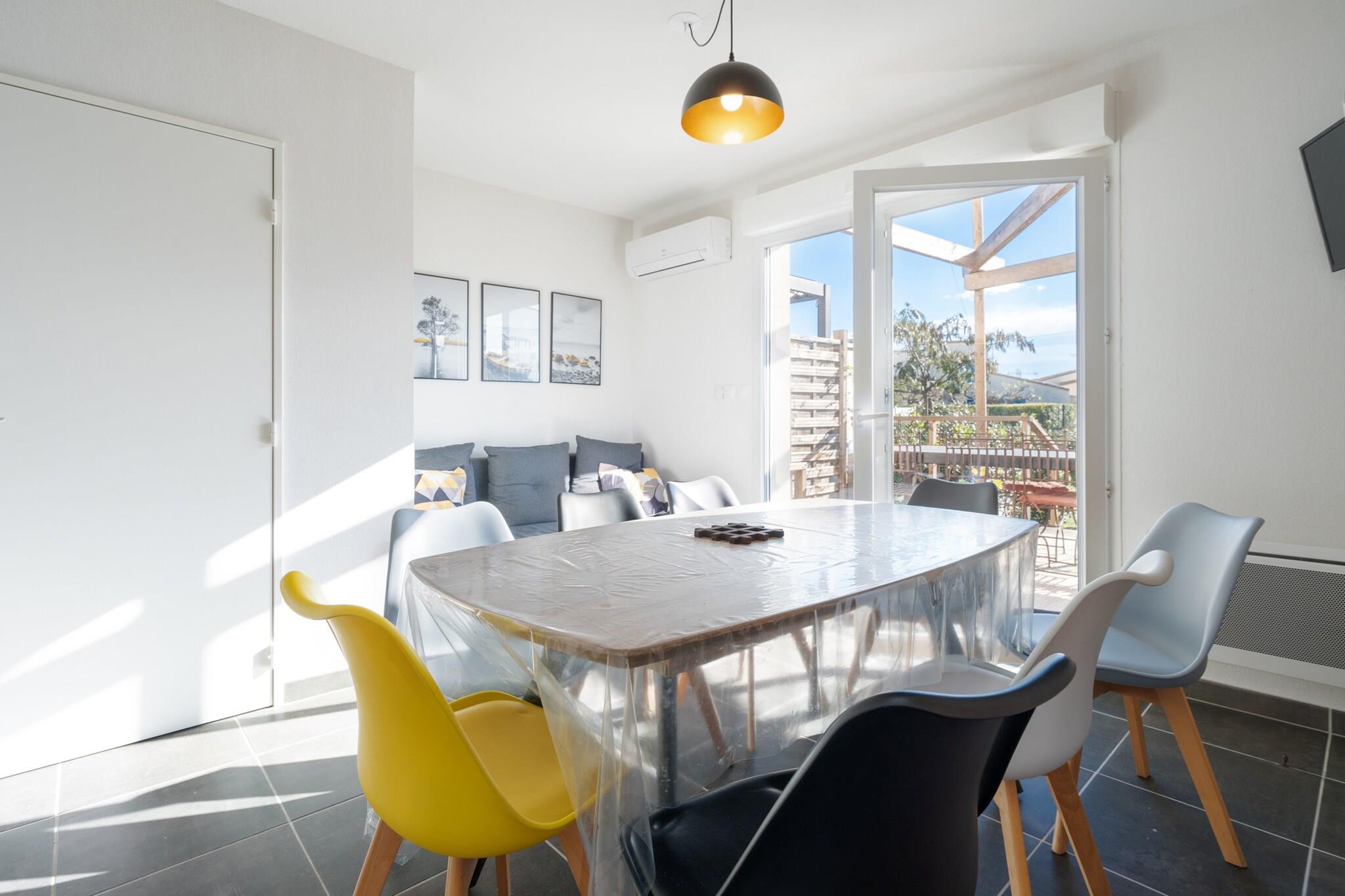 Denne hyggelige og rummelige villa på 70 m² i Sérignan er perfekt til familier eller grupper på op til 8 gæster, og tilbyder 3 komfortable soveværelser og en indbydende atmosfære kun 450 meter fra sandstranden. Med et supermarked og en restaurant kun 1 km væk, blander beliggenheden kystcharme med hverdagens bekvemmelighed i fredelige, familievenlige omgivelser. Villaen har en privat indhegnet have med udendørsmøbler, ideel til at slappe af eller spise i solen. Gæsterne kan nyde moderne bekvemmeligheder, herunder aircondition, elvarme, ventilator og tv. En fælles opvarmet swimmingpool og udendørs parkering inden for ejendommen bidrager til letheden og nydelsen af dit ophold. Indvendigt er det elektriske køkken i åbent plan fuldt udstyret med køleskab, mikroovn, opvaskemaskine, kaffemaskine, brødrister, kedel og alle nødvendige tallerkener og redskaber. Uanset om du forbereder en strandpicnic eller en hyggelig middag, er alt klar til en glat og mindeværdig ferie.
