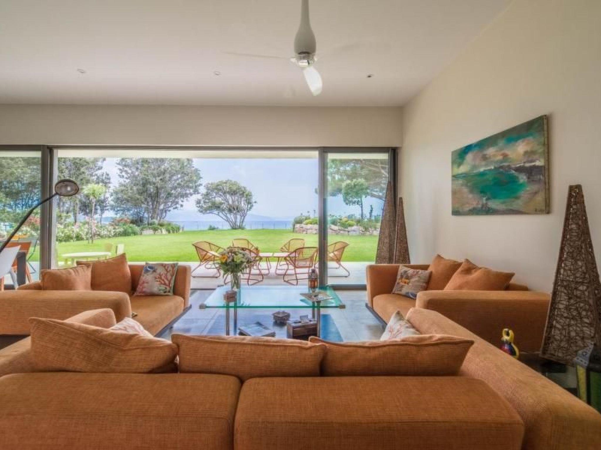 Recent contemporary house, at the edge of the water, window open on the nature, the sun, the sea, which offers space, light, simplicity.