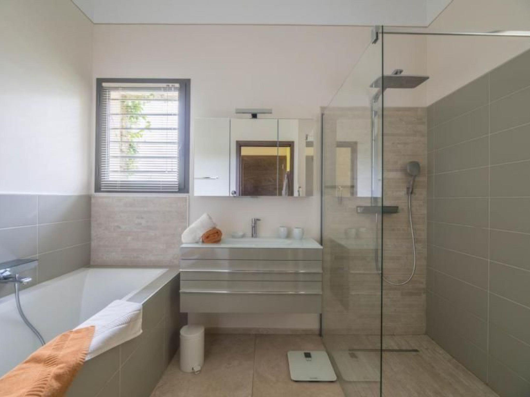 The whole house is equipped with ceiling fans and benefits from a cooling in the summer, in winter underfloor heating.