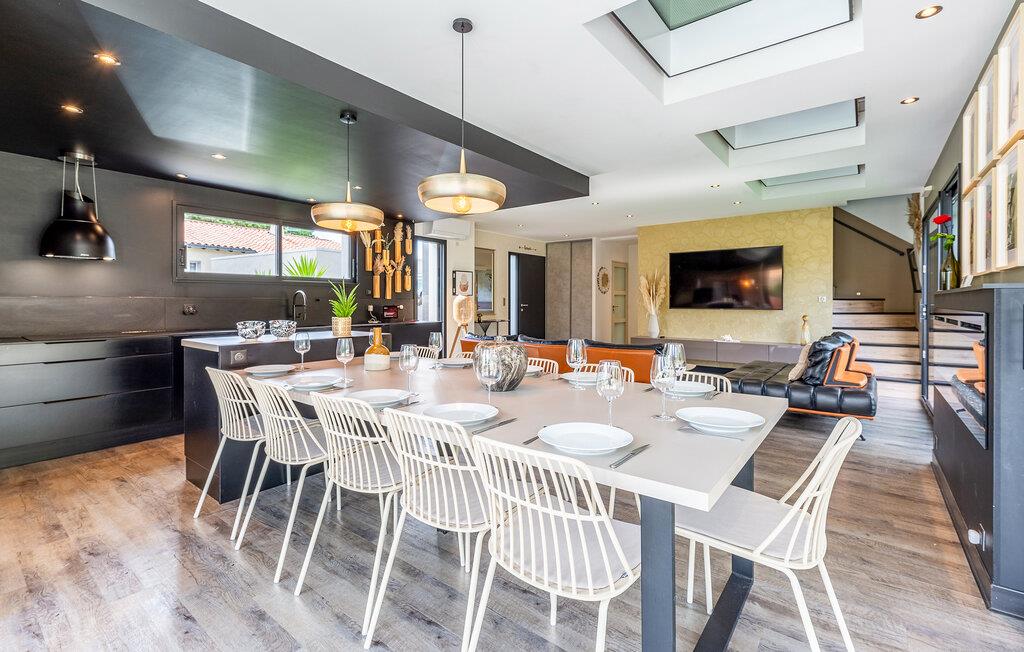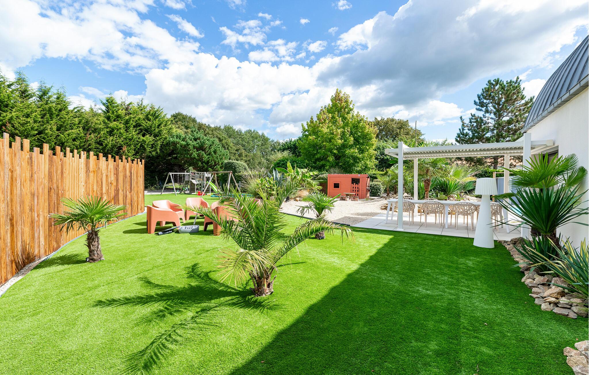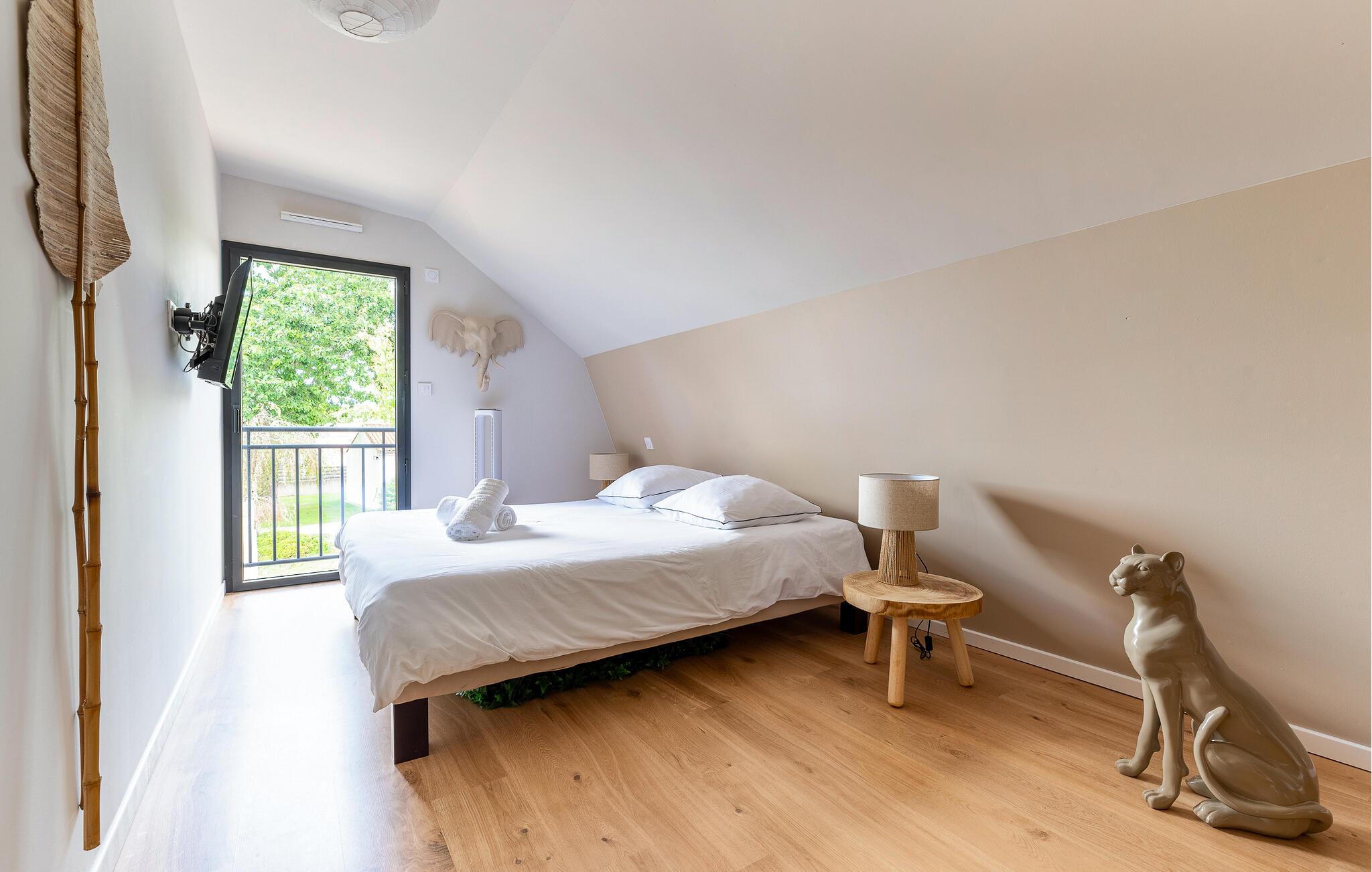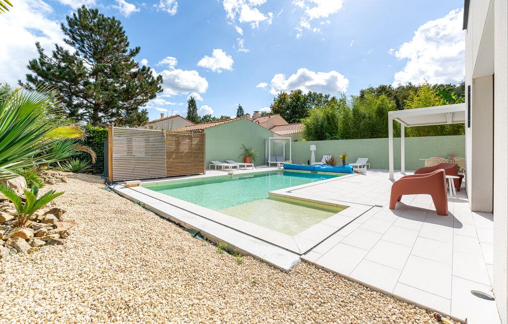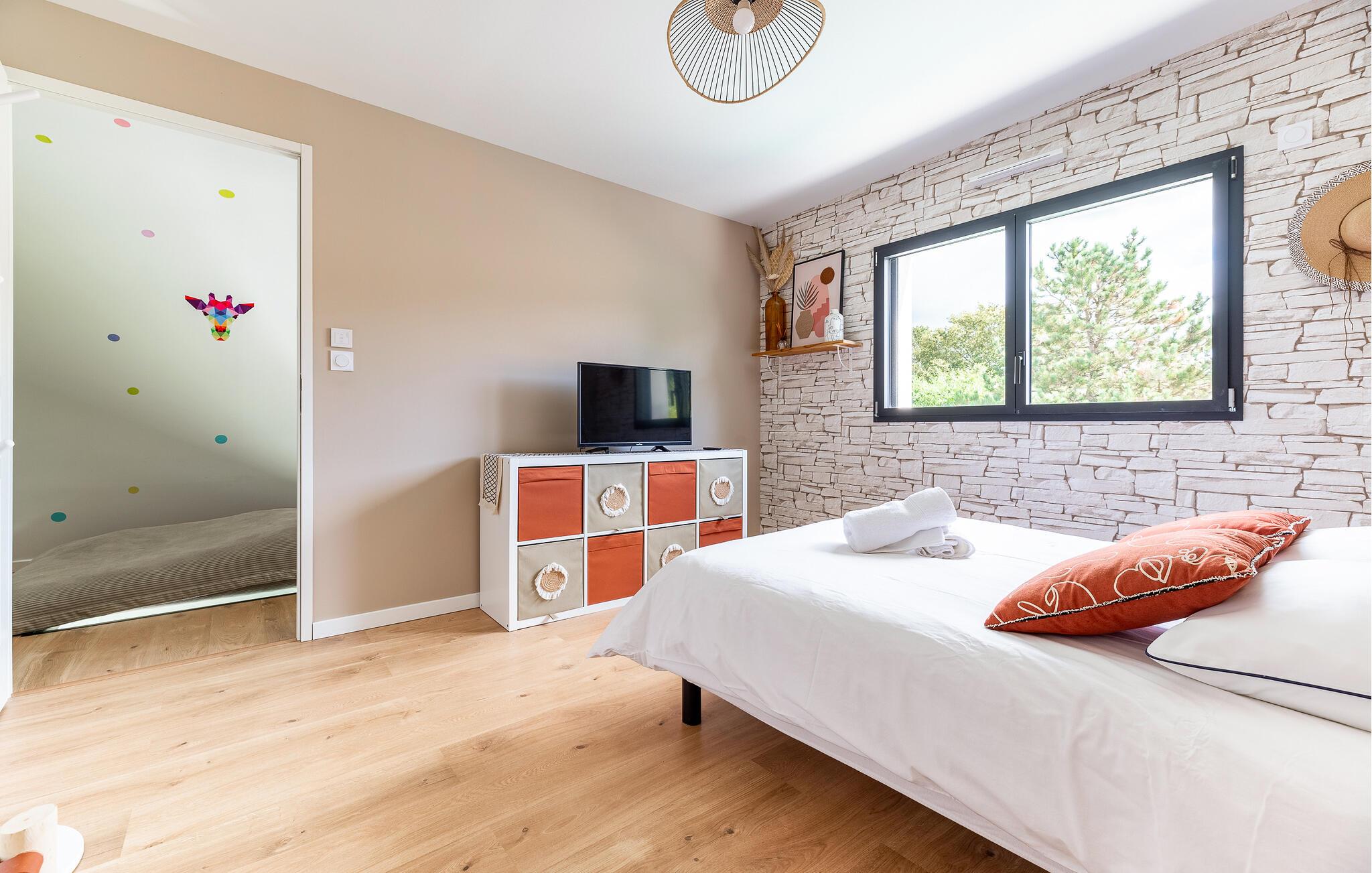 Dette store moderne hus har en dejlig beliggenhed nær Nantes og er særdeles velegnet til en ferie med børn. Der er gode rammer til at slappe af i de stilfulde rum med attraktive farver. Efter dagens aktiviteter kan I sætte jer med aftensmaden foran de store vinduesfronter og finde jer godt til rette i de indbydende sofaer.
