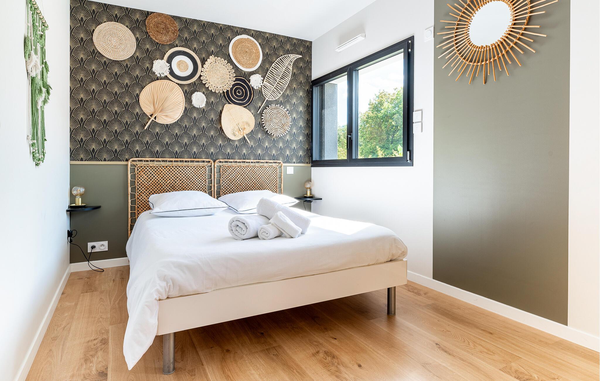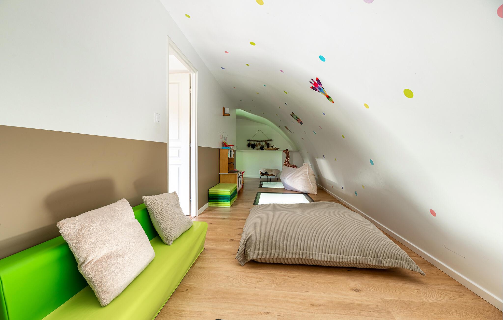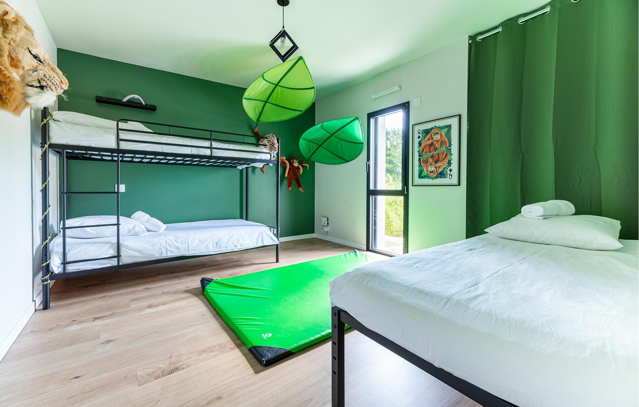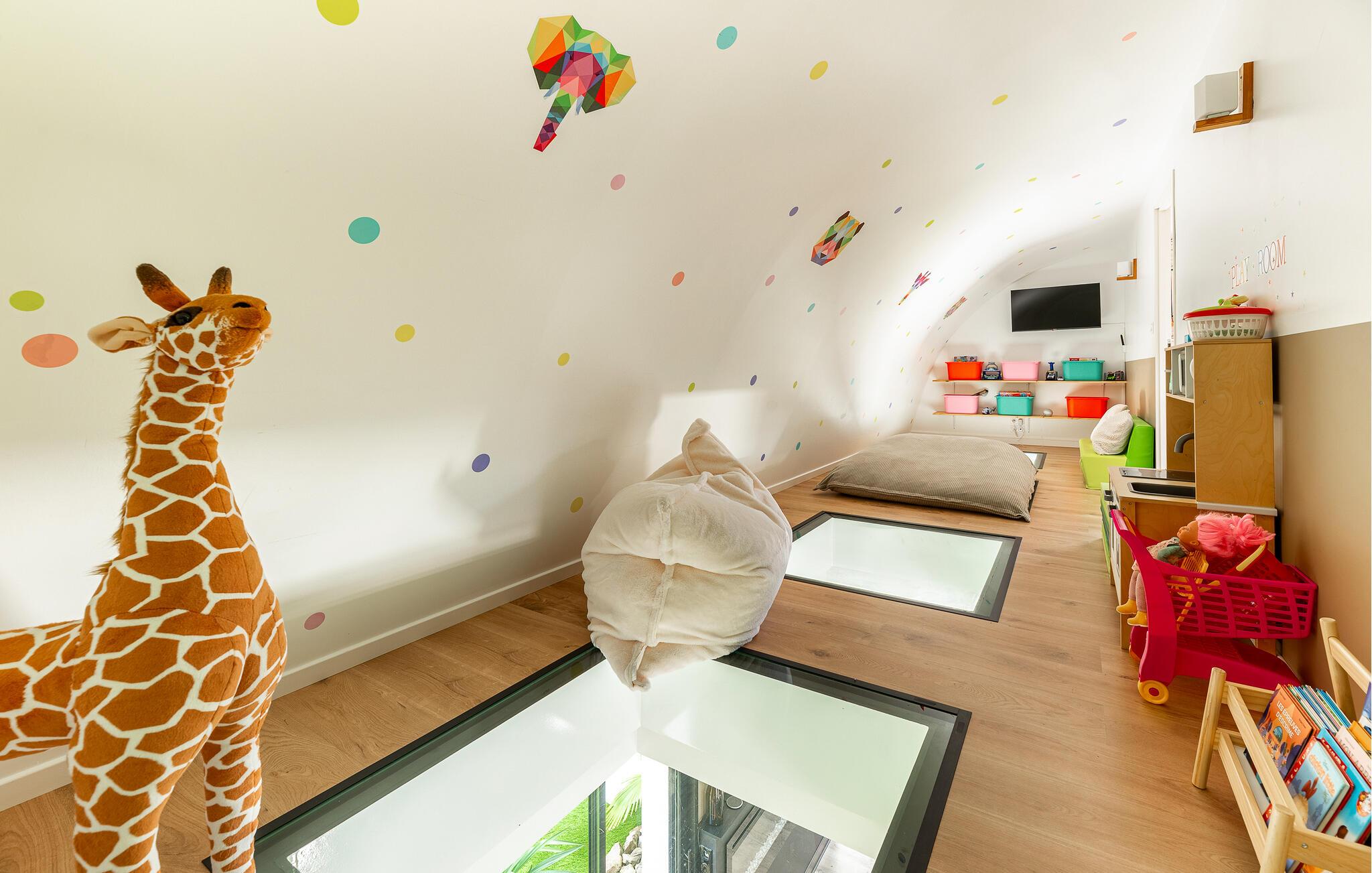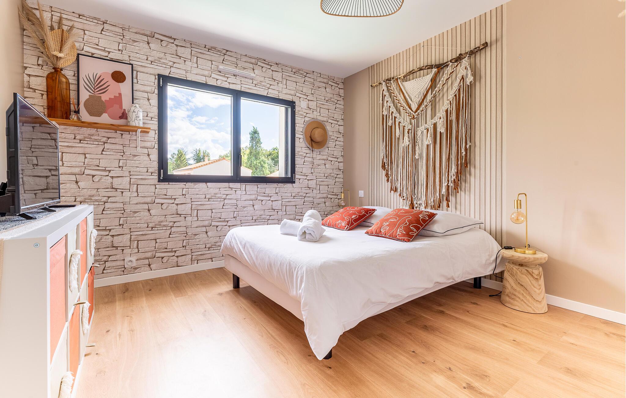 Dette store moderne hus har en dejlig beliggenhed nær Nantes og er særdeles velegnet til en ferie med børn. Der er gode rammer til at slappe af i de stilfulde rum med attraktive farver. Efter dagens aktiviteter kan I sætte jer med aftensmaden foran de store vinduesfronter og finde jer godt til rette i de indbydende sofaer.