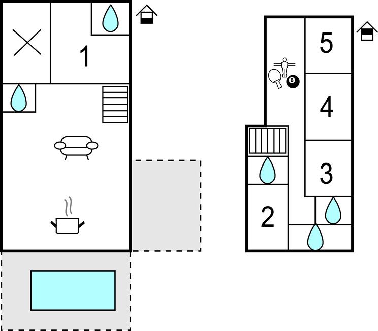 Badeværelse 8m2 (nr. 1) - WC. Varmt og koldt vand. Bruser