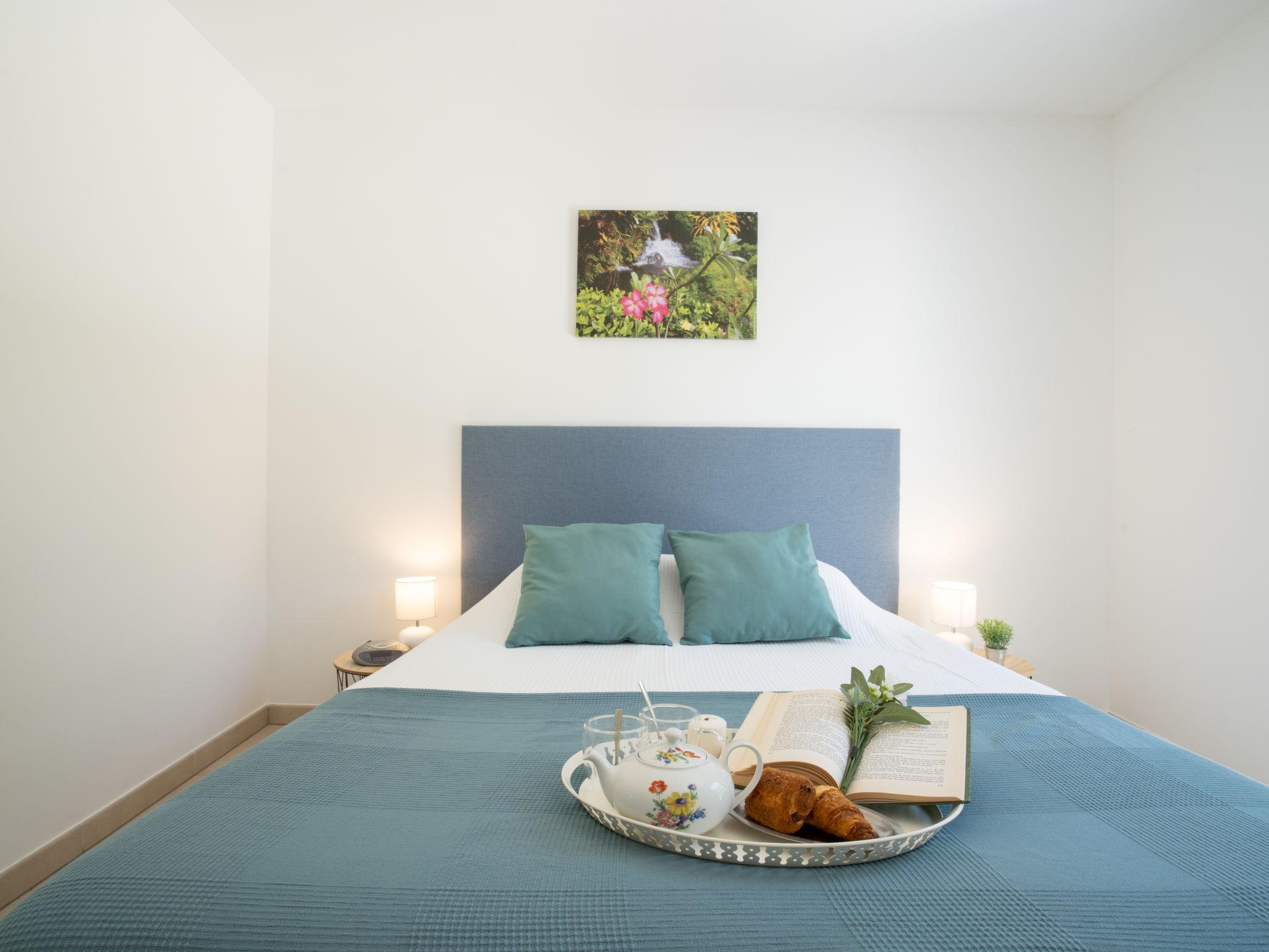 3-room apartment 61 m2 on 1st floor. Comfortable and modern furnishings: living/dining room with TV (flat screen), air conditioning and electric shutters. Exit to the terrace. 1 room with 1 french bed (1 x 160 cm, length 200 cm), TV (flat screen), air conditioning and electric shutters. 1 room with 1 french bed (1 x 140 cm, length 190 cm), air conditioning and electric shutters. Open kitchen (oven, dishwasher, 3 induction hot plates, toaster, kettle, microwave, freezer, electric coffee machine, Capsules for coffee machine (Senseo) extra). Shower, sep. WC, double hand-basin. Heating. Terrace 12 m2. Terrace furniture, deck chairs (2). Side view of the sea. Facilities: washing machine, iron, hair dryer. Internet (WiFi, free). Garage space n 15 (1 car), height 210 cm, width 218 cm. Please note: smoke alarm. 1CYX6X