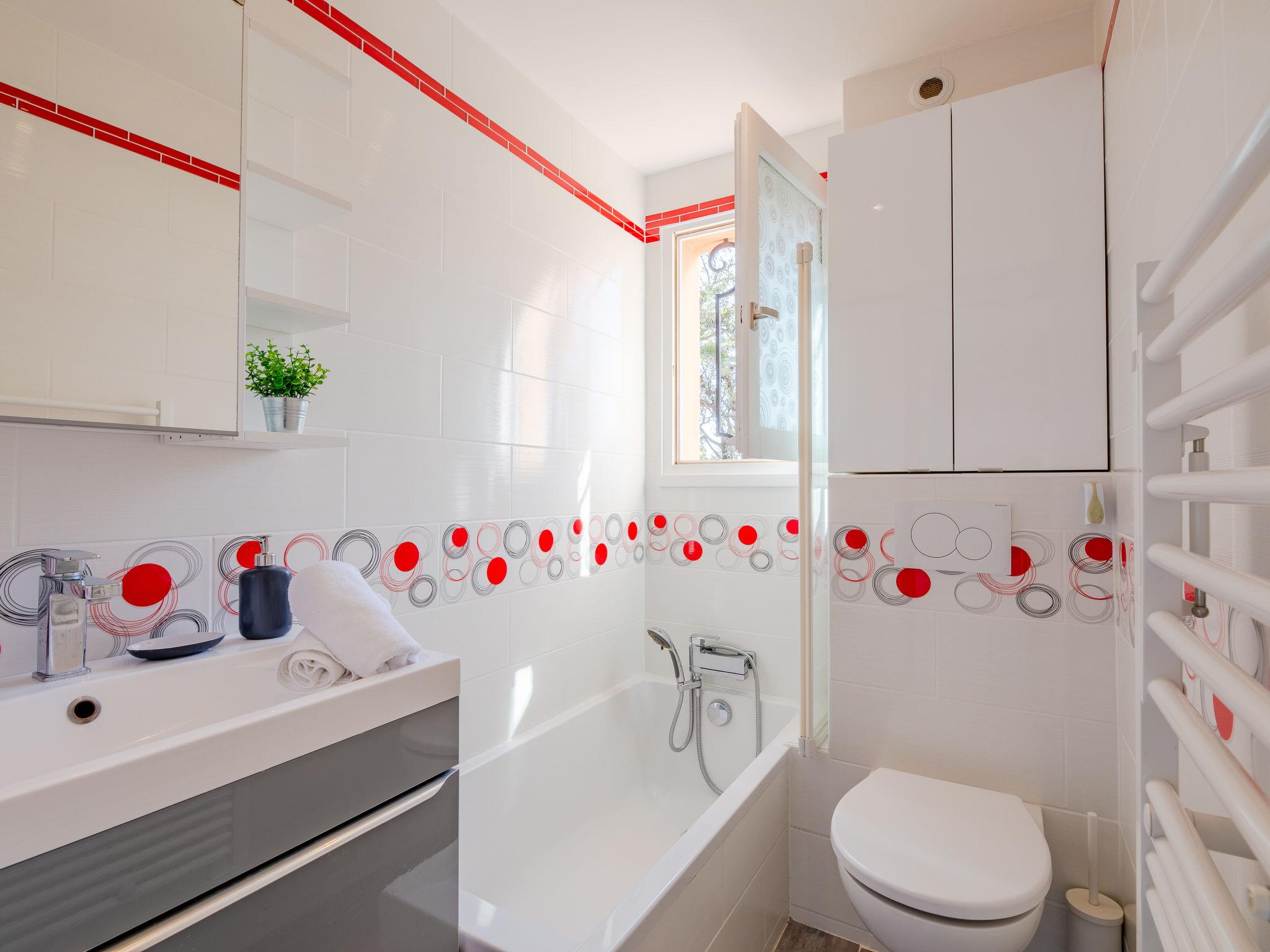 Residence "La Nuit de Mai", 3 storeys. In the centre of Saint Aygulf, excellent location: right in the centre but still quiet, 170 m from the sea, 170 m from the beach. Parking (limited number of spaces). Shop 250 m, shopping centre 5 km, 2 minute walk to the centre, bus stop "Saint-Aygulf La Poste" 350 m, railway station "Fréjus" 6 km, sandy beach "Grandes plages de Saint Aygulf" 1 km pebble beach "Calanque des Louvans" 290 m, park "ARECA" 400 m, diving center 1 km, thermal baths "Thalasso de Port Fréjus" 6 km. Sports harbour 1.2 km, golf course (18 hole) 7 km, sailing school 7 km, riding stable 2 km, sports centre 500 m. Nearby attractions: Lunapark, Aqualand 5 km, Fréjus 6 km, Saint Raphaël 8 km, Saint Tropez 30 km, Cannes 50 km, Nice 71 km. Well-known ski regions can easily be reached: Auron, Isola 2000 150 km. Well-known lakes can easily be reached: Lac de St Cassien 45 km, Lac du Du Verdon 90 km. Hiking paths: Estérel 16 km, Sentier du Littoral 200 m. Residence with electric gates. The keys‘ handover takes place by the agency Interhome in Saint Aygulf.