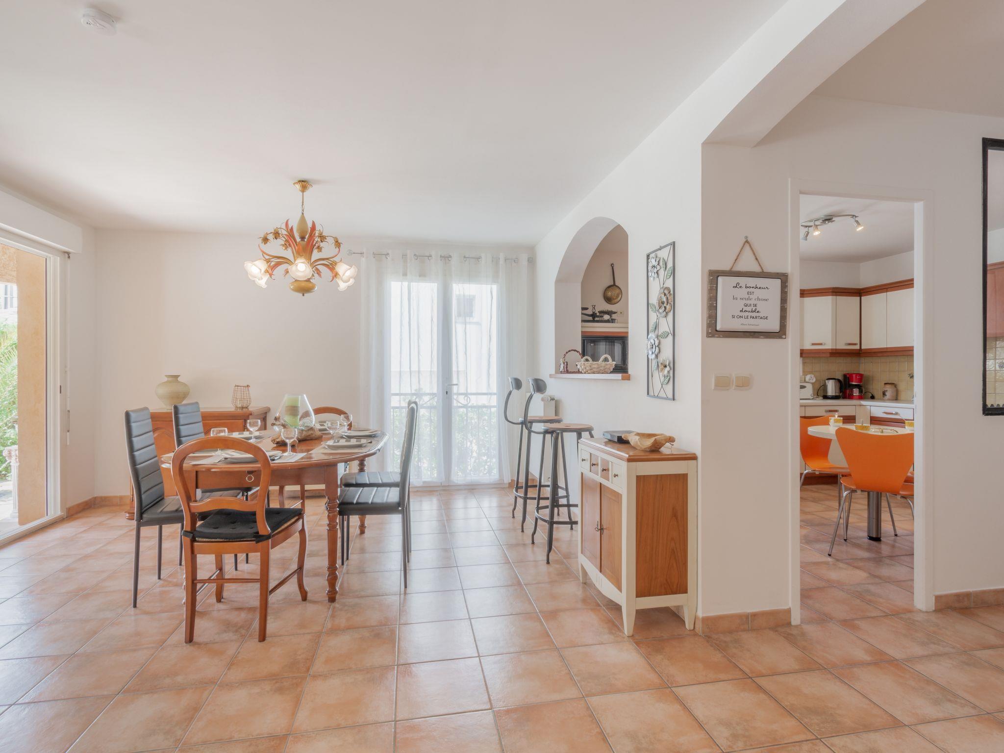 4-room villa 130 m2 on 2 levels. Spacious and bright, comfortable furnishings: living/dining room with TV (flat screen). Exit to the terrace, to the swimming pool. 1 room with 1 french bed (1 x 160 cm, length 200 cm), bathroom and TV (flat screen). Open kitchen (oven, dishwasher, 4 ceramic glass hob hotplates, toaster, kettle, microwave, freezer, electric coffee machine, Capsules for coffee machine (Nespresso L'OR) extra). Sep. WC. Heating, air-conditioning. Upper floor: 1 room with 1 french bed (1 x 160 cm, length 200 cm), TV (flat screen). 1 room with 2 beds (80 cm, length 190 cm), TV (flat screen). Bathroom, sep. WC, double hand-basin. Air-conditioning. Terrace 15 m2, roofed, south facing position. Terrace furniture, barbecue, deck chairs (2). View of the swimming pool. Facilities: washing machine, iron, hair dryer. Internet (WiFi, free). Parking (fenced 2 cars). Please note: non-smoking house. Smoke alarm. 6TH53E