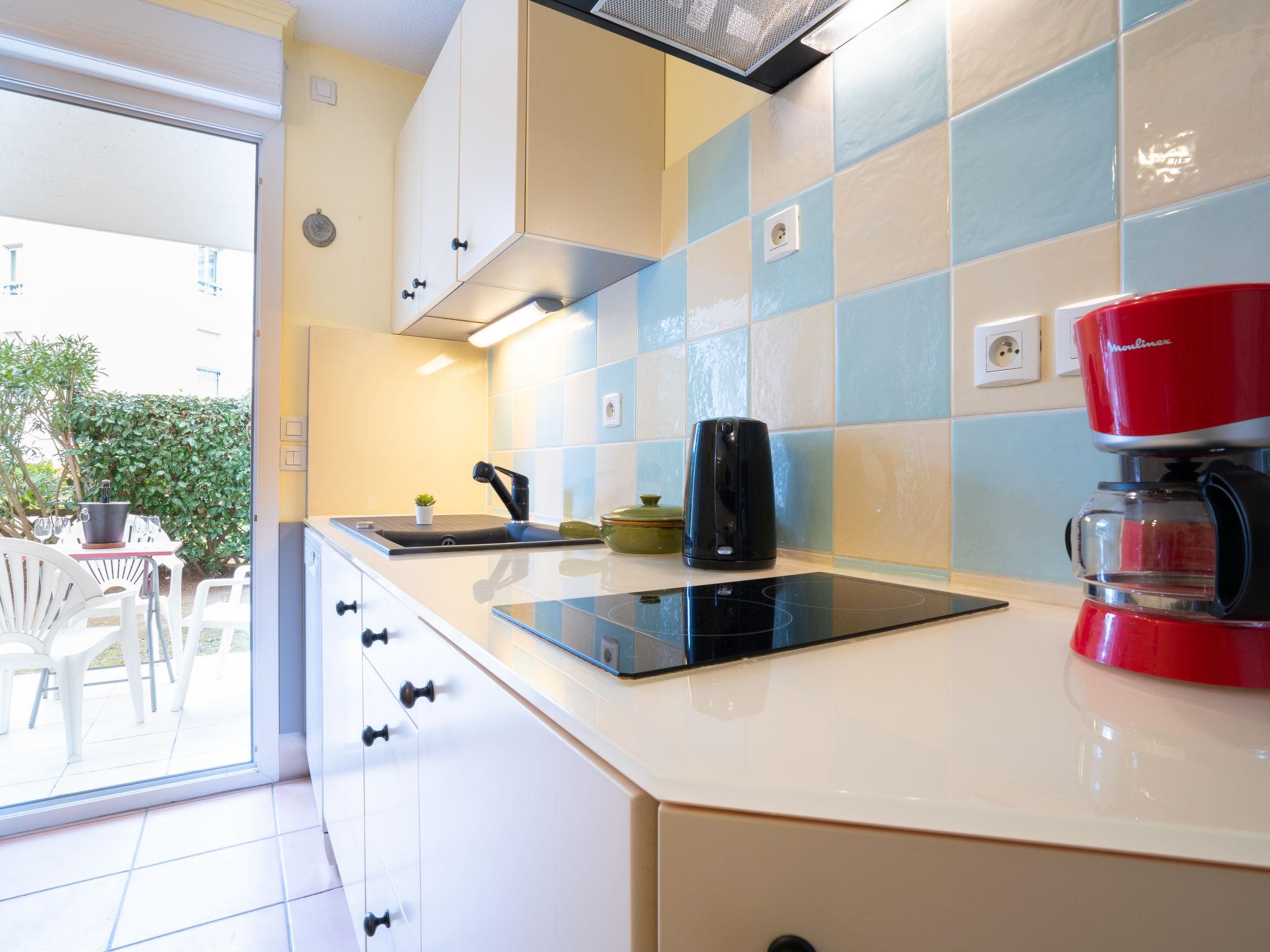 3-room apartment 80 m2, south facing position. Comfortable and beautiful furnishings: living/dining room 25 m2 with panoramic window with TV (flat screen), DVD. Exit to the terrace, to the patio. 1 room with 1 french bed (1 x 160 cm, length 200 cm), TV and fan. 1 room with 2 beds (90 cm, length 190 cm), fan. Exit to the terrace, to the patio. Kitchen (mini-oven, oven, dishwasher, 2 induction hot plates, toaster, kettle, microwave, freezer, electric coffee machine) with dining table. Exit to the terrace, to the patio. Bathroom, sep. WC. Heating. Terrace 9 m2, roofed terrace 11 m2, roofed, patio 23 m2, patio 23 m2. Terrace furniture, deck chairs (2). View of the garden. Facilities: washing machine, iron, hair dryer. Internet (WiFi, free). Garage space n 76 (1 car). Please note: suitable for families. 1 small pet/ dog allowed. TV only FR. Smoke alarm. Apartment on the ground floor but access by lift (1 floor). FJS1224HT
