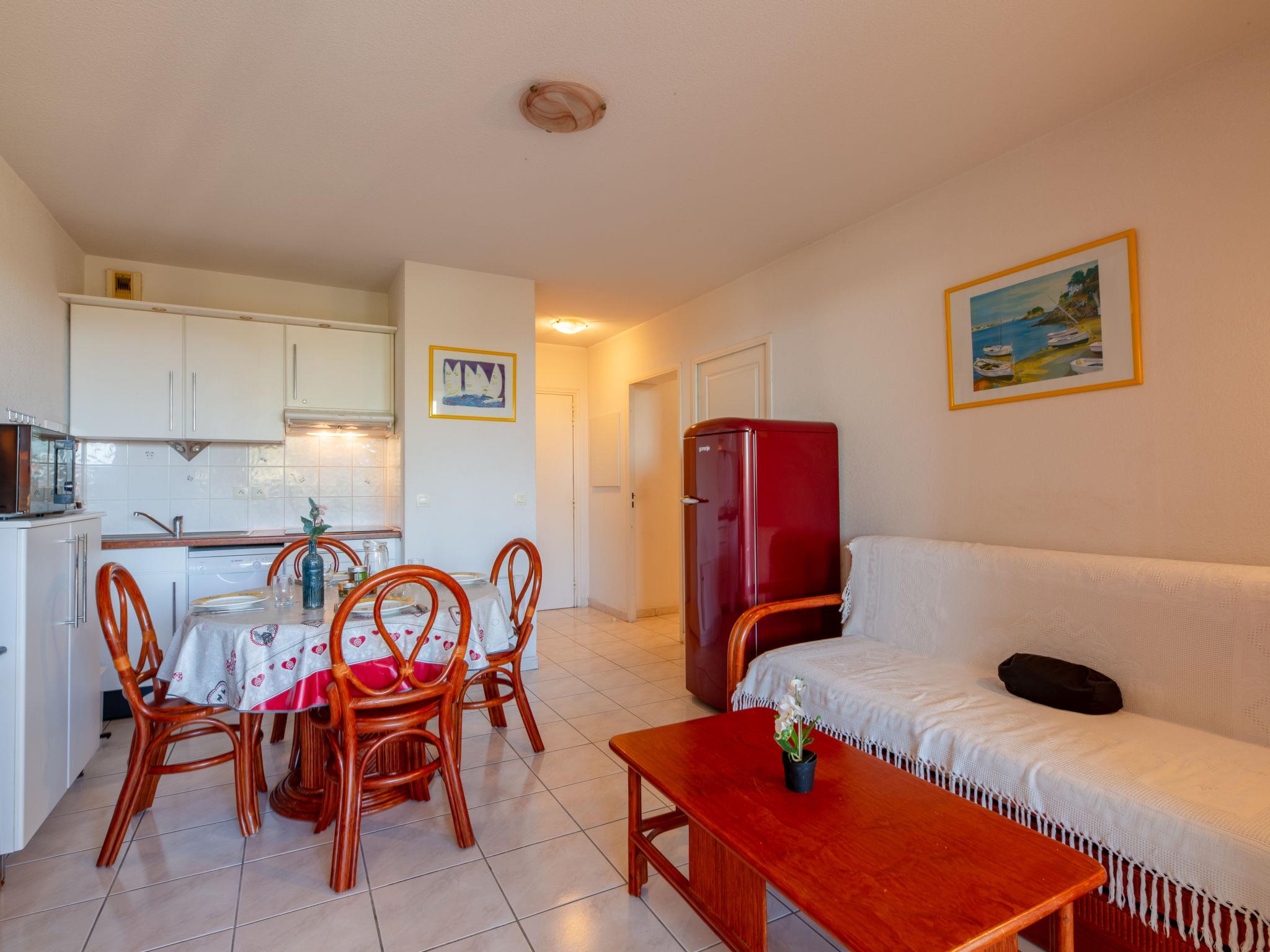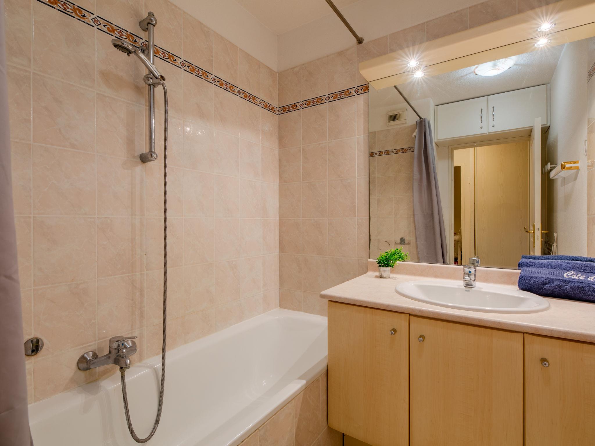 2-room apartment 34 m2 on 3rd floor. Living/dining room with 1 pull-out bed (2 pers. 2 x 80 cm, length 190 cm), TV (flat screen), air conditioning. Exit to the terrace. 1 room with 1 pull-out bed (2 pers. 2 x 80 cm, length 190 cm), air conditioning. Exit to the terrace. Open kitchen (mini-oven, dishwasher, 3 induction hot plates, toaster, kettle, microwave, electric coffee machine, Capsules for coffee machine (SENSEO) extra). Bathroom, sep. WC. Electric heating. Terrace 15 m2 partly roofed, east facing position. Terrace furniture. Side view of the sea. Facilities: washing machine, iron, hair dryer. Internet (WiFi, extra). Parking space n B34 (roofed). Please note: 1 small pet/ dog allowed. TV only FR. Smoke alarm. Offer by a private individual according to Art. 155, IV of CGI.