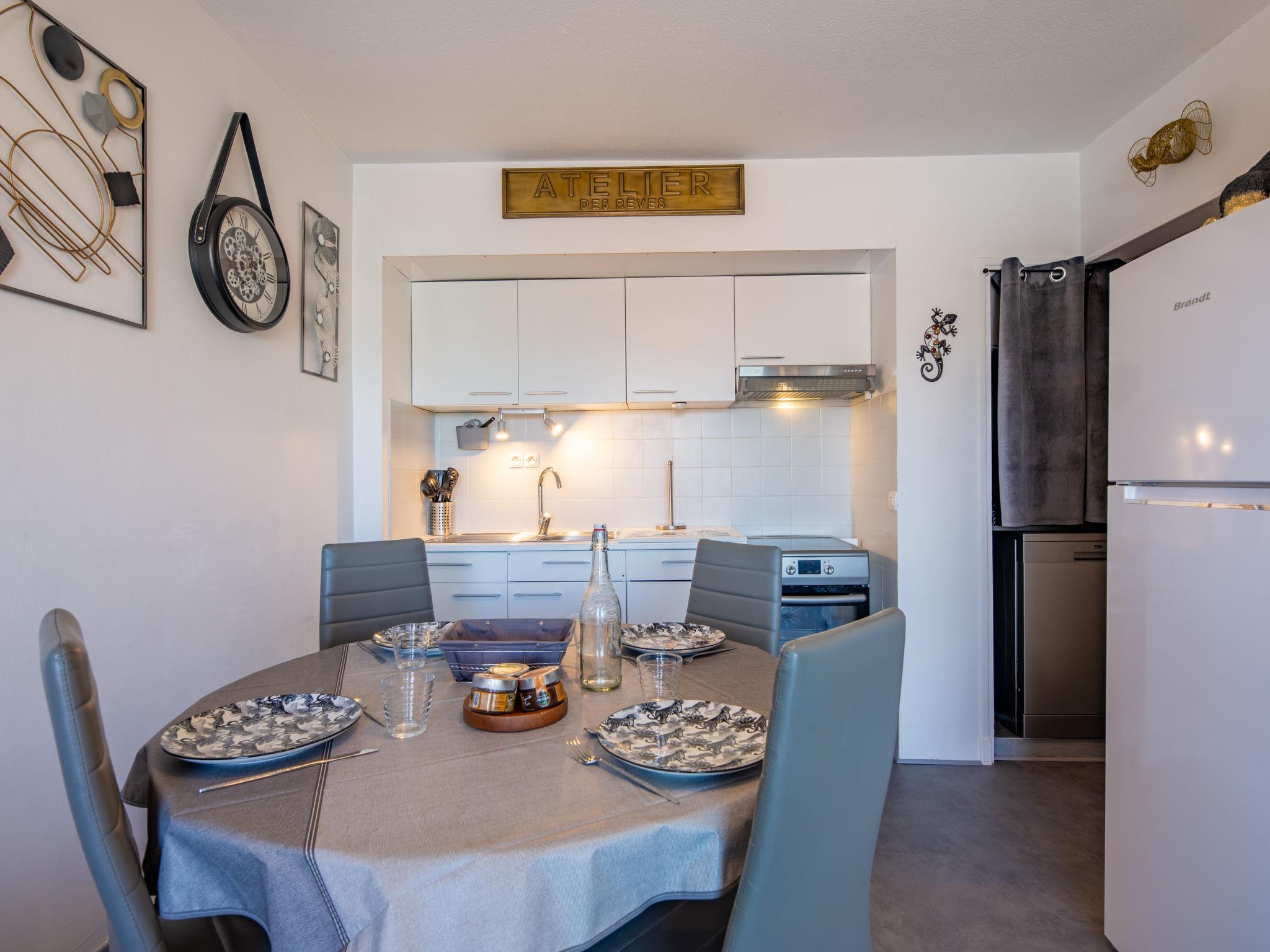 2-room apartment 35 m2 on 3rd floor, east facing position. Renovated in 2024, comfortable furnishings: living/dining room with 1 double sofabed (1 x 140 cm, length 190 cm), TV (flat screen), air conditioning. Exit to the balcony. 1 room with 1 french bed (1 x 140 cm, length 190 cm), air conditioning. Open kitchen (oven, dishwasher, 4 induction hot plates, toaster, kettle, microwave, electric coffee machine). Shower, sep. WC. Electric heating. Balcony, east facing position. Balcony furniture. View of the sea. Facilities: washing machine, iron. Internet (WiFi, extra). Please note: TV only FR. Smoke alarm. Offer by a private individual according to Art. 155, IV of CGI. FVK6B3