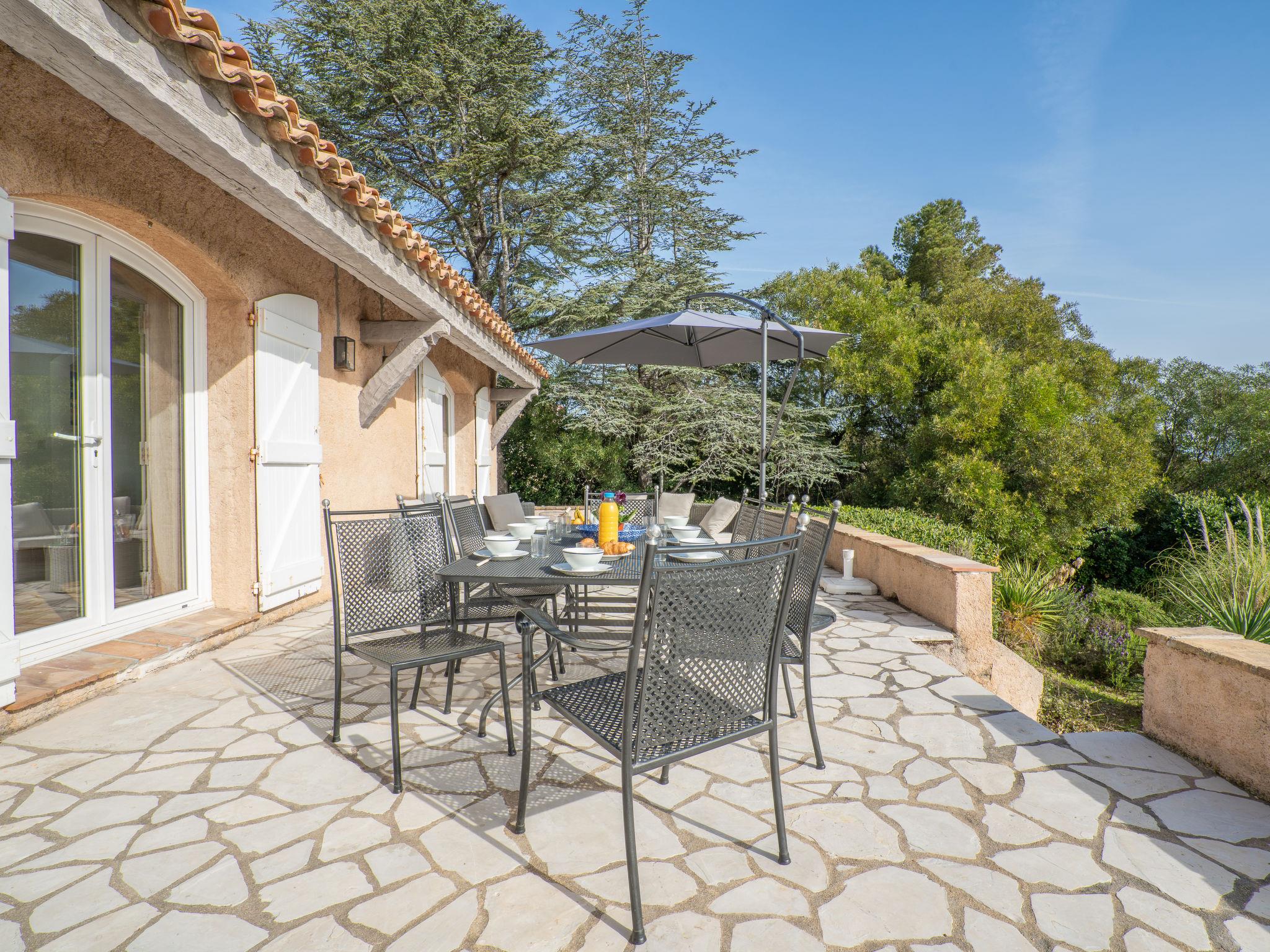 Beautiful, cosy, comfortable house "L'Escarpe des Arbousiers". 2 km from the centre of Saint Aygulf, 10 km from the centre of Saint Raphael, 30 km from the centre of Saint Tropez, residential area (villas), 300 m from the sea. Private: beautiful garden 1'800 m2 (fenced) with wildlife garden and trees, swimming pool (10 x 8 m, seasonal availability: 15.Mar. - 15.Nov.). Unconventional pool shape. Boules, terrace (25 m2), parking (for 3 cars) on the premises. Shop 2 km, bus stop 1 km, sandy beach 2 km, rocky beach 300 m. Golf course (18 hole) 8 km.