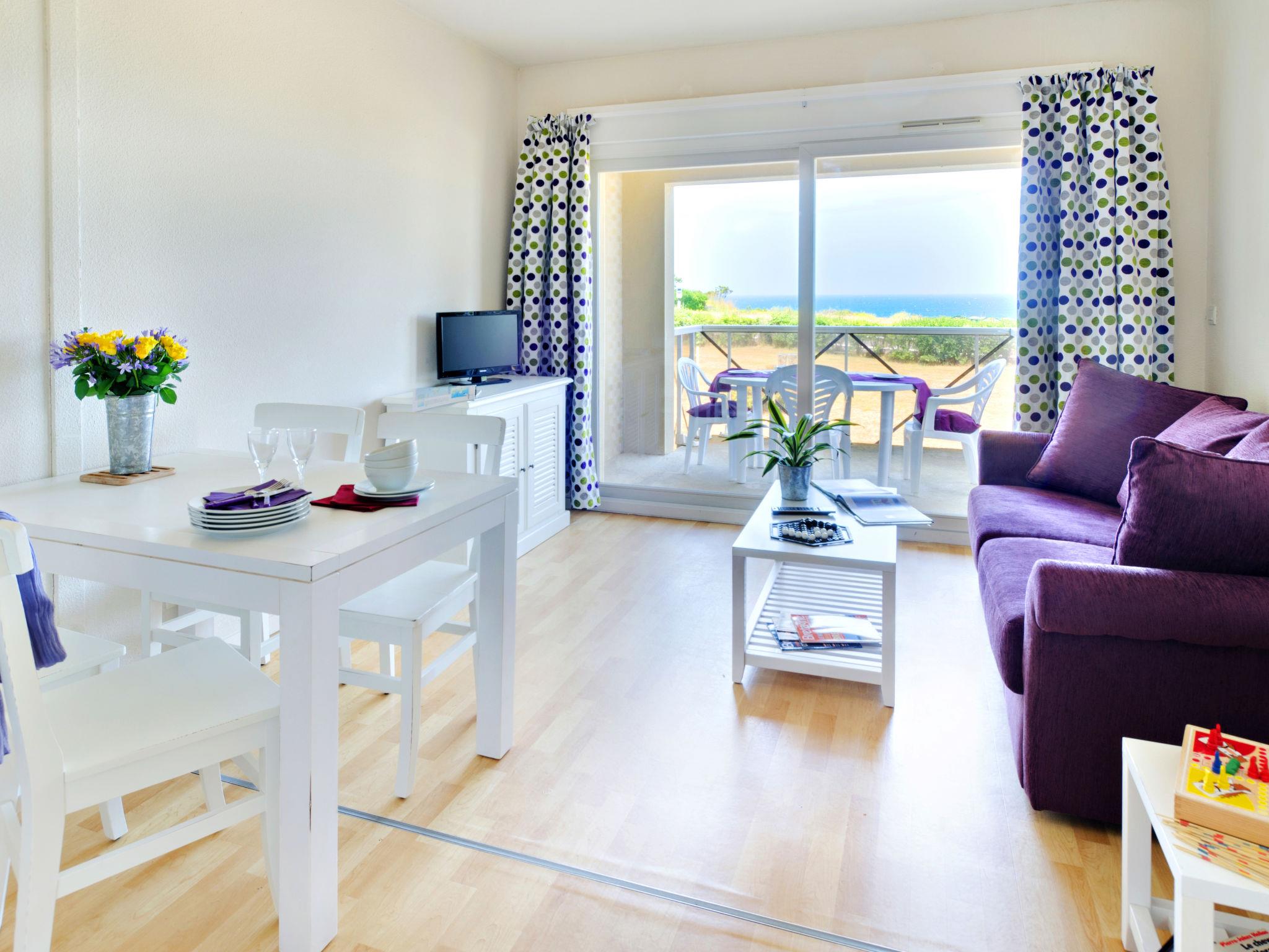 "Ker Mael", 2-room apartment 34 m2. Practical furnishings: living/sleeping room with 1 bed (80 cm, length 190 cm), 1 pull-out bed, dining table and TV can be hired. 1 room with 1 french bed (140 cm, length 190 cm). Kitchenette (2 hot plates, dishwasher, toaster, microwave, electric coffee machine). Bath/WC or shower/WC. Electric heating. Facilities: Internet (WiFi, extra). Please note: non-smokers only. Maximum 1 pet/ dog allowed. Smoke alarm, fire extinguisher.