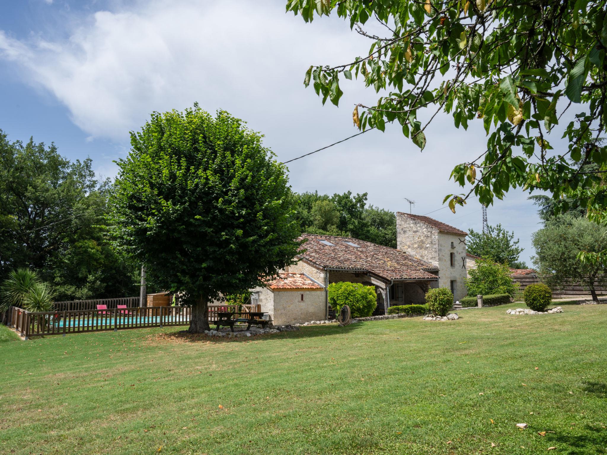 Saint Caprais de Lerm: Single-family house "Villa CAPPE". In a quiet position, in a cul-de-sac. Private: large garden 2'000 m2 (not fenced), swimming pool heated (8 x 4 m, depth 140 cm, seasonal availability: 01.Jul. - 31.Aug.) with alarm system. Boules, children's playground. Motor access to the house. (5 steps). Parking (for 2 cars) on the premises. Grocery 7.5 km, supermarket 7.5 km, restaurant 2.5 km, bakery 7.5 km, bus stop 7 km, railway station "Agen" 12 km, thermal baths "Aginum Thermae" 11 km. Golf course (9 hole) 8 km, tennis 6 km, riding stable 5.5 km. Nearby attractions: Agen 13 km, Happy Forest Parc 8 km, Parc attraction Walygator 15 km, Parc Naturel Passeligne 13 km. Well-known lakes can easily be reached: Lac Passeligne 13 km. Please note: car recommended.